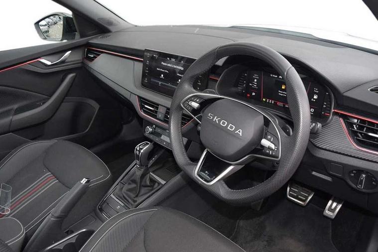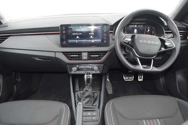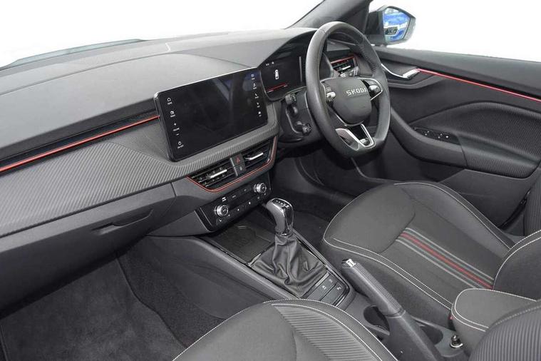 Advanced driver attention and drowsiness monitor, Bluetooth system, E-call, Front assist system, PAS, Rear parking sensors, Rear view camera, Service indicator, Speed limiter, Traffic sign recognition, Virtual cockpit with 10.25" display, Voice control system, Wireless smartlink, 4 USB C ports, 8 Speakers, 9.2" Skoda navigation display, DAB Digital radio, Auto dimming rear view mirror, Automatic headlight control with coming home and leaving home feature, Black door mirrors, Black radiator grille, Black rear diffuser, Black roof spoiler, Body colour bumpers, Body colour door handles, Boot lettering in black, Extended tailgate glass, Front and rear electric windows, Heated rear window, LED daytime running lights, LED high beam, LED low beam, LED third brake light, Light sensors, Monte carlo plaque, Panoramic sunroof with black roof rails, Privacy glass, Rear side wing doors, Rear wiper, Ticket holder inside windscreen, 12V socket in luggage compartment, 3 seat bench in 2nd row, Aluminium pedals, Ambient lighting in white/red, Art leather carbon decor inserts, Art leather carbon door inserts, Black roof lining, Cargo elements, Chrome inner door handles, Driver and passenger sun visors with vanity mirror, Dual zone climate control, Front and rear roof lights, Front centre armrest, Front head restraints, Glove compartment with illumination, Height adjustable driver seat, Height adjustable front passenger seat, Ice scraper, Inner circulation control with pollen filter, ISOFIX on front passenger seat, Isofix preparation for back seats, Leather gearknob and handbrake lever, Manual lumbar support for front seats, Monte Carlo cloth upholstery, Net package and top tether hooks in boot space, Net under rear shelf, Pocket on the back of both front seats include mobile phone pockets, Rake/reach adjustable steering wheel, Reading lights, Rear centre armrests, Red hotstamping, Single front passenger seat, Sports seats, Textile floor mats, Third rear headrest, Top tether for front passenger seat, Umbrella in driver's door, Light and view plus package - Kamiq, 3x3 point rear seatbelts, Airbags - driver and front passenger, Disc brakes, ESP, Extended and predictive pedestrian/cyclist protection, Front passenger airbag deactivation switch, Front side airbags with curtain airbags, Hill hold control, Manual leather parking brake, Manual rear child locks, One tone horn, Seatbelt reminder for driver an co-driver, Traction control, Tyre pressure monitor, Anti-theft alarm system with interior monitoring, backup horn, towing protection and remote central locking with SAFE system, Anti-theft wheel bolts, Electronic engine immobilizer, 18" Ursa black diamond cut alloy wheels,