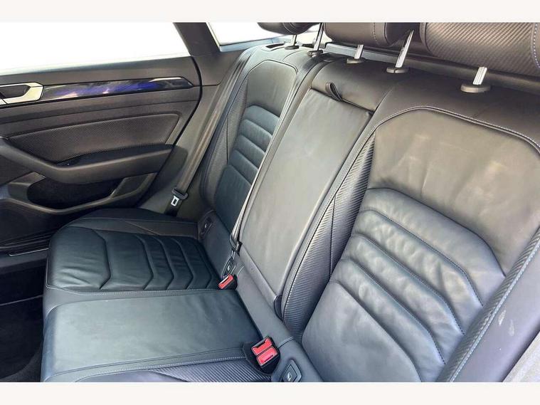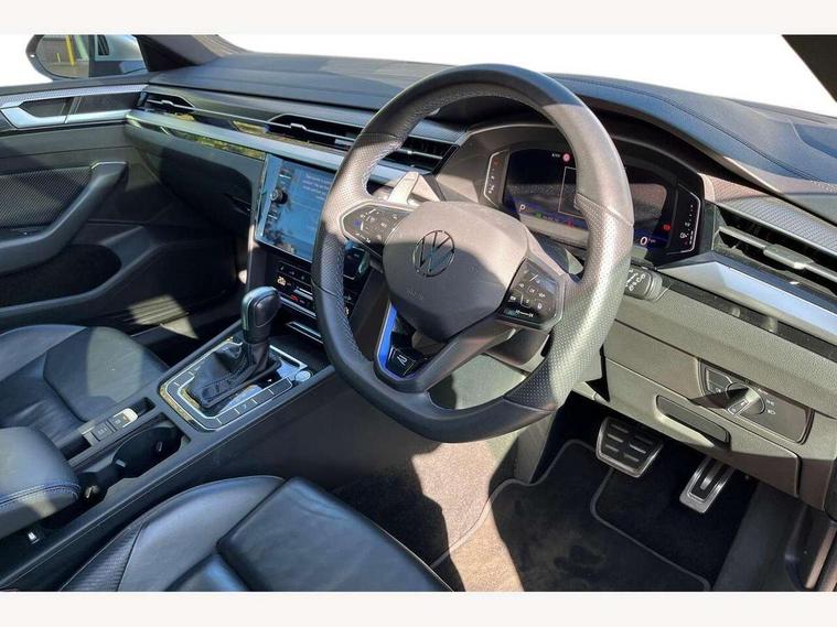 Adaptive cruise control (ACC) with speed limiter, front assist (reacting vehicles pedestrian and cyclists) and follow to stop, App connect including wireless Apple CarPlay, Camera for warning system, Digital cockpit with 10.25" high resolution TFT display screen with customisable menus and information, Driver alert system with fatigue detection, Driver profile selection including ECO function, Dynamic road sign display, eCall - Emergency call service for SOS calls to emergency response, Emergency assist, Hands free boot opening, Press and drive key, Progressive steering, R driving mode button on steering wheel, Side scan lane change assist including rear cross traffic alert, Speedo and rev counter, electronic odometer, trip, service interval display and exterior temperature gauge, Tailgate, Travel assist - Lane keeping assist and traffic jam assist, Voice activation for telephone and navigation, All wheel drive - 4Motion, Start/stop function with battery regeneration, XDS electronic differential lock, External, USB type C data sockets with increased charging performance front (45 Watt), Premium USB cable in choice of either Apple or Android smartphone compatibility, Auto dimming interior rear view mirror, Automatic headlights, Body colour door handles, Body colour side skirt, Body coloured top and matt black lower door mirrors with integrated indicators, Chrome side window surrounds, Dynamic headlight range control, Electric folding door mirror, adjustable, heated with front passenger exterior mirror lowering function, Front and rear electric windows, Front and rear stainless steel door sill protection, Front windscreen washers and wipers with 4x interval delay, Heat insulating side and rear windows, Heated rear windscreen, Heated windscreen washer jets, LED 3rd brake light, LED rear combination lamp with dynamic indicators, LED rear number plate lights, Left and right chrome effect twin trapezoid exhaust tailpipe surrounds, Panoramic sunroof with tilting and sliding including integrated roller blind, R Line design body coloured bumpers, R logo light projection, R logo on radiator grille, side panels and rear, R specific radiator grille, R specific rear bumper and R specific diffusor in black, Rain sensor, Rear fog lamp on one side and reversing lamp on both sides, Rear side wing doors, Rear tinted glass from B pillar backwards, approx 65% tinted, Rear windscreen washer and wiper with interval delay, Roof spoiler, 12V socket in front centre console, 12V socket on rear of front centre armrest, 14way electric adj front seats with lumbar + ergoComfort driver seat with memory/massage, comfort entry, integrated front headrest + door mirror memory, 3 rear head restraints, 3 seat bench in 2nd row, 30 colours interior ambient lighting, 60:40 split folding rear seat backrests with centre armrest, Air care climatronic 3 Zone electronic air conditioning with automatic air recirculation, Black roof lining, Chrome trim on upper and lower air vents extending across cockpit, Driver and front passenger sunvisor with vanity mirror, Front cupholders x 2, Front footwell illumination, Glovebox, Heated front seats, Height/reach adjust steering wheel, Isofix child seat preparation easy fit for two outer rear seats, Luggage compartment lighting, Nappa leather upholstery with side bolster and headrest, Pedals and footrest in stainless steel, Premium sports seats with R-logo, R performance leather wrapped heated multi-function sports steering wheel with touch controls and larger shifting paddles, blue stitching and R-logo, R specific floor mats with R-logo and stitching, Removable luggage compartment cover, Single front passenger seat, Split folding front seat backrest with front centre armrest, Two LED front reading light, 18" performance brakes, 3 rear three point seatbelts, ABS+EBD+Brake assist, Child locks on rear doors, Driver airbag and front passenger airbags with deactivation switch including driver knee airbags, Electronic parking brake, Electronic stability control (ESC) and Electromechanical brake booster, Front disc brakes, Front side airbags with curtain airbags, Hill start assist, Pro active occupant protection to detect critical situations with elevated accident potential from the front, R performance torque vectoring, R specific blue brake calipers, Rear disc brakes, Rear precrash preventive occupant protection, Three point height adjust front seatbelts + pretensioners, Two tone horn, Tyre pressure loss indicator, Tyre pressure monitor, Warning buzzer for seatbelts if unfastened, Warning triangle, Alarm with interior protection with deactivation via infotainment system, Electronic engine immobiliser, Keyless entry system including start/stop button on centre console, Remote central locking, Aluminium decorative inserts, Chrome trim on lower doors in front and rear, Leatherette insert on door and side trim panel in foam film, Piano black decorative inserts in centre console, R specific decor inlay aluminium black carbon,