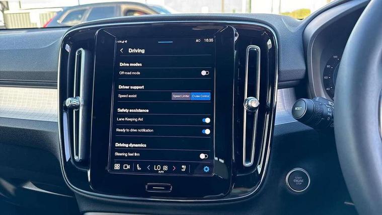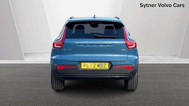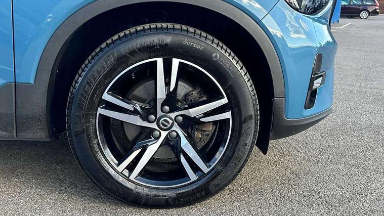 12.3" Progressive Driver Display, 9" centre console portrait touch screen, Adjustable steering wheel force, Bluetooth hands free telephone kit, Cruise control, Driver awareness - blind spot information system with steer assist, cross traffic alert with autobrake, rear collision warning and migitation, E-call, Front park assist, Google automatic services - Nav with google maps, apple carplay/android auto, voice recognition with google assistant, Hands free power tailgate, Lane keep assist with driver alert control, Oncoming Lane Mitigation, Rear park assist, Rear park assist camera, Speed limiter, Speed sensitive steering, Wireless/Inductive Mobile Phone Charging, Dynamic chassis, DAB Digital radio, High performance sound, 8 speakers/250W, front USB and 2 rear type C USB, Steering wheel mounted remote controls, Adaptive brake lights with high level LED brake lights, Auto dimming feature for exterior door mirrors, Auto dimming interior mirror, Automatic headlamp levelling, Automatic LED Headlights + Active high beam incorporating daytime running lights, Front aluminium tread plates, Front and rear electric windows, High gloss black front and rear skid plate, High gloss black mesh front grille with high gloss black surround, High gloss black window trim, Home safe and approach lighting, Integrated roof rails in high gloss black, LED front fog lights, Puddle lights, Rain sensor with automatic windscreen wiper activation, Rear side wing doors, Rear wiper, Roof antenna, Roof spoiler, Visible VIN plate, 12V socket in front tunnel console and luggage compartment, 2-Zone electronic climate control with CleanZone air quality system and pollen filter, 3 seat bench in 2nd row, 3 Spoke tailored steering wheel with chrome trim, 60/40 versatile split folding rear seat, A-pillar parking ticket holder, Ambient front door and instrumental panel lighting, Centre console cupholders and storage, Flexible load floor and grocery bag holder, Floor mats, Front door pocket and front cupholder illumination, Front footwell illumination, Front headrests, Front reading light and theatre lighting, Front seat cushion extensions, Front tunnel pocket, Glovebox bag hook, Heated front seats, Height adjustable passenger seat, Height/reach adjustable steering column, High gloss centre tunnel deco, Illuminated glovebox, Illuminated luggage compartment, Illuminated tailgate, Illuminated vanity mirrors, Integrated waste bin, Isofix attachments on outer rear seats, Load protection net, Multi directional lumbar support, Power driver seat with memory + exterior mirrors memory, Rear armrest / integral cup holders / storage tray, Rear headrests, Rear reading and courtesy lights, Single front passenger seat, Underfloor cargo storage, Climate pack without heated front seats - XC40, 3x3 point rear seatbelts, City safety with steering support with Pedestrian + cyclist + front collision warning with full auto brake and rear auto brake, Drivers knee airbag, Dual stage driver/passenger airbags, Electronic parking brake with auto hold, First aid kit, Front and outer rear seatbelt reminder and pretensioners, Front seats SIPS airbags, Hill descent control, Hill start assist, Inflatable curtain, Passenger airbag cut-off device, Power child locks on rear doors, Road sign information display, Run off Road Mitigation, Run off Road Protection, SIPS (Side Impact Protection System), Slippery road and hazard light alert, Stability and Traction Control with Spin control, Engine Drag Control and Corner Traction Control, Tyre pressure monitoring system, Vehicle deceleration control with Anti-lock Brake System, Electronic Brake Distribution and Emergency Brake Assist, Warning triangle, WHIPS whiplash protection system - front, Anti-theft alarm including immobiliser/volume sensor + level sensor, Key integrated remote control central locking + fuel flap with deadlocking system and auto open/close power windows, Keyless drive includes keyless entry and keyless start, Locking wheel nuts,