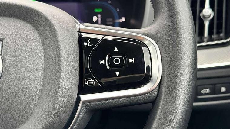 12.3" Progressive Driver Display, 360 degree surround view parking camera with side proximity sensors, 9" centre console touch screen, Adjustable steering wheel force, Apple carplay (wired), Bluetooth handsfree system, Drive mode settings, Driver alert control with lane keeping aid, Driver assistance (pilot assist and adaptive cruise control), Emergency services call system, Front and rear park assist, Google Automotive Services, Oncoming Lane Mitigation, PAS, Service interval indicator, Speed limiter, Speed sensitive steering, Trip computer, Volvo on call with App, Wireless/Inductive Mobile Phone Charging, 3.7 kW monophase on board charger, 7m 10amp charge cable with 3 pin plug and 6m 3 phase 16amp type 2/mode 3 charge cable, 8 speed automatic transmission with start/stop + manual change functions, Dynamic chassis, Electric rear axle drive, Recharging port located in nearside front wing, DAB Digital radio, Low speed exterior sound speaker, Premium Sound by Harman Kardon, dirac unison, dolby pro logic II surround sound, 13 speakers/600W output and fresh air subwoofer, Steering wheel remote infotainment controls, Adaptive brake lights with high level LED brake lights, Auto dimming interior + exterior mirrors, Automatic headlight levelling system, Automatic LED Headlights + Active high beam incorporating daytime running lights, Electric adjustable/heated/auto power folding door mirrors, Electric front+rear windows, Heated front windscreen, High gloss black door mirrors and window surround, High gloss black front and rear bumper decoratives, High gloss black mesh front grille with high gloss black surround, Home safe and approach lighting, Integrated roof rails in high gloss black, Power glass tilt and slide panoramic sunroof with sun curtain, Puddle lights, Rain sensor with automatic windscreen wiper activation, Rear side wing doors, Rear wiper, Roof antenna, Roof spoiler, Tinted windscreen, Visible VIN plate, 12V socket in front tunnel console and luggage compartment, 2 zone electronic climate control with Clean zone air quality system and pollen filter, 3 seat bench in 2nd row, A-pillar parking ticket holder, Air purifier particulate matter (PM) 2.5 filter, B Pillar ventilation, Bright metal luggage threshold, Centre console cupholders and storage, Charcoal floor mats, Front and rear courtesy lights, Front and rear door pocket illumination, Front cupholder illumination, Front footwell illumination, Front reading lights, Front seat cushion extensions, Glovebox compartment with illumination, Head restraints for all seats, Heated front seats, Heated steering wheel, Height/reach adjustable steering column, Illuminated luggage compartment, Illuminated vanity mirrors + ticket holder, ISOFIX attachment on outer rear seats, Load cover, Load protection net, Multi directional lumbar support, Power driver seat with memory + exterior mirrors memory, Power height adjustable passenger seat, Rear armrest with cupholder, Rear footwell and front and rear side step illumination, Rear seat concealed storage, Recharge aluminium tread plates, Single front passenger seat, Tailgate illumination and ambient door lighting, Underfloor stowage compartment, Versatile split folding rear seat - 60/40, 5 three point seatbelts, City safety with steering support with Pedestrian + cyclist + front collision warning with full auto brake and rear auto brake, Drivers knee airbag, Dual stage driver/passenger airbags, Electronic parking brake with auto hold, First aid kit, Front seats SIPS airbags, Hill descent control - Off-road drive mode, Hill start assist, IC (Inflatable Curtains) - Full Length, Passenger airbag cut-off device, Power child locks on rear doors, Road sign information display, Run off Road Mitigation, Run off Road Protection, Seatbelt reminder and pretensioners, SIPS (Side Impact Protection System), Slippery road and hazard light alert, Stability and Traction Control with Spin control, Engine Drag Control and Corner Traction Control, Tyre pressure monitoring system, Vehicle deceleration control with Anti-lock Brake System, Electronic Brake Distribution and Emergency Brake Assist, Warning triangle, WHIPS whiplash protection system - front, Anti-theft alarm including immobiliser/volume sensor + level sensor, Care key with user defined top speed, Key integrated remote control central locking + fuel flap with deadlocking system and auto open/close power windows, Keyless Drive (includes Keyless Entry and Keyless Start) with Handsfree Tailgate Opening/Closing, Locking wheel nuts, Private locking for tailgate, Tyre sealant kit + 12v compressor,