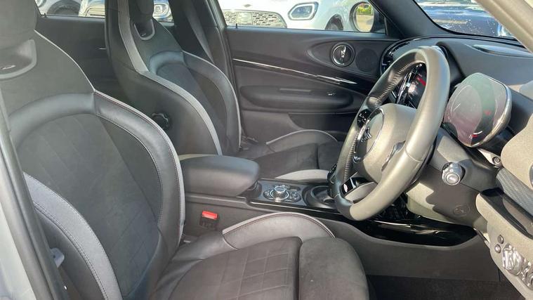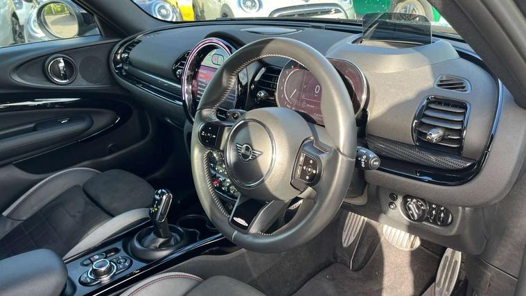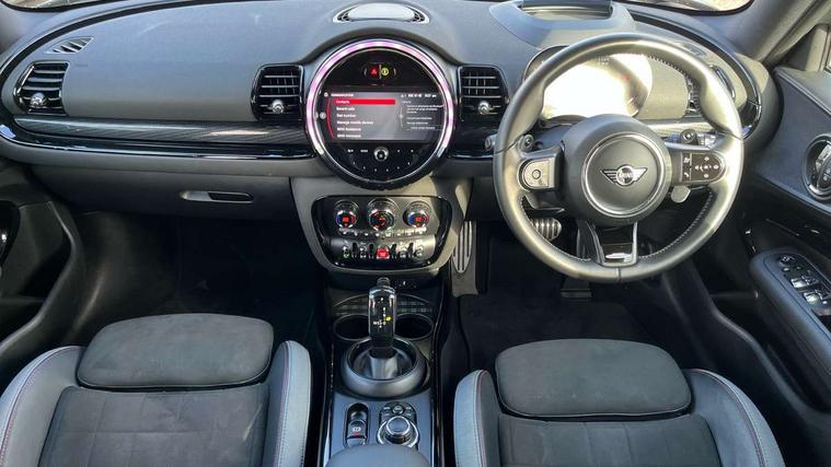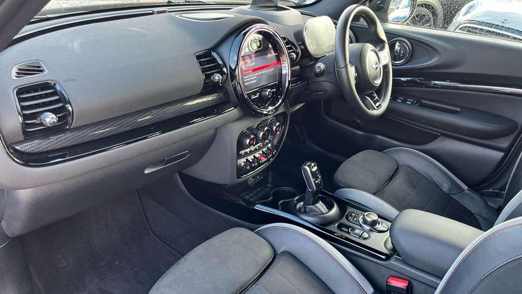 Active Guard incl speed limiting and lane departure functions with auto steering, and front collision warning with brake intervention, Automatic start/stop function with brake energy recuperation, Car sharing preparation, Compatible mobile phone bluetooth with audio streaming, Electro-mechanical speed dependant steering assistance, Instrument cluster, Mini E-call, MINI TeleServices, On board computer, 8 Speed steptronic sport transmission including electronic gear shifter and steering wheel paddles, All Wheel Drive (AWD), Double Vanos system, Fully variable valve control, High precision injection, Performance Control, FM tuner and DAB digital radio, Bonnet scoop, Chrome fuel filler cap, Dynamic brake lights, Electric windows, Heated rear window, Heated windscreen washer jets, John Cooper Works - aerodynamic kit (front and rear apron, spoiler), front and rear sport bumpers and part-painted side sills with door sill finishers, John Cooper Works entry sills, John Cooper Works rear spoiler, LED rear light with union jack design, Metal door sill strips with Cooper S imprint, Model logo on rear doors, Piano black exterior, Radiator grille piano black border with honeycomb structure in matt black with John Cooper Works logo above an individual grille struct in chilli red, Rain sensor with auto headlights, Rear fog lights, Rear side wing doors, Rear window wiper, Rear wing door, Side scuttle with MINI John Cooper Works logo in high gloss black with red border, Split rear doors, Sun/heat protection glass, Third brake light, Twin exhaust tailpipe, Variable front intermittent wipers, White indicator lenses, 12V Accessory socket in centre console, 3 seat bench in 2nd row, 360L luggage compartment capacity, 4 lashing eyes in luggage compartment, 60/40 split folding rear seat, Anthracite headlining with grab handles and clothes hooks, Chrome interior highlights, Cupholders, English handbook, Floor mats, Glove compartment, Height and length steering column adjustment, Interior lighting with 12 basic colours selectable via toggle switch in roof, Isofix rear child seat preparation, John Cooper Works leather gearshift lever and handbrake gaiter, John Cooper Works sports seat with integrated headrest, adjustable thigh support and John Cooper Works logo, LED reading lights, vanity mirror lights, front foot well light and spotlight on front seats, Multifunction steering wheel, Nappa leather steering wheel with JCW badge, Paddle shifts, Rubberised stainless steel pedals, Single front passenger seat, Storage compartments in doors, Sunvisors with vanity mirrors, Toolkit, Comfort plus pack with Park assist - Mini Clubman, Excitement pack - Clubman, Extended interior lighting pack - Mini Clubman, Navigation pack - Clubman, 17" front sport brake with 4 piston fixed calliper, 2 tone horn, 3 point seatbelts on all seats, 6 Airbags - front, side, head and seat belt tensioners, Anti-lock braking system (ABS), Child locks on rear doors, DSC - Dynamic Stability Control, Electronic handbrake, Front and rear disc brakes, Red brake callipers with John Cooper Works logo, Torsen mechanical limited slip differential, Tyre pressure monitoring system, Alarm system with tilt sensor, monitoring doors, bonnet interior and tailgate, Auto drive away locking, Comfort access system, Deadlocking function, Electronic vehicle immobiliser, Locking wheel bolts, Remote central locking, Start/stop toggle with keyless go,