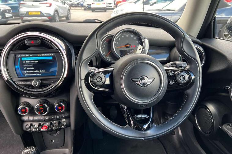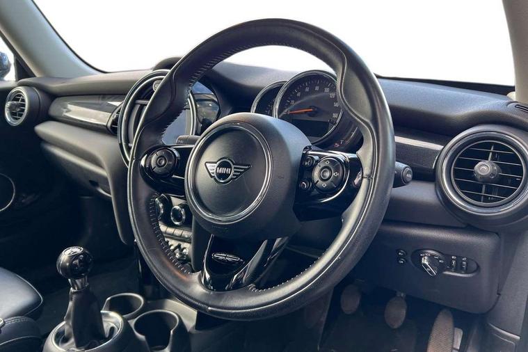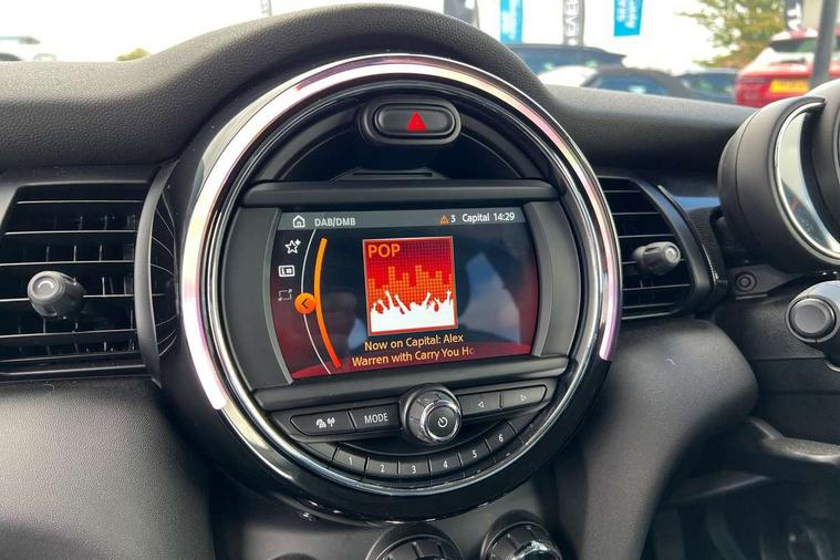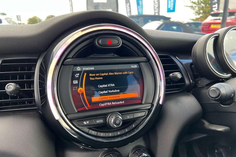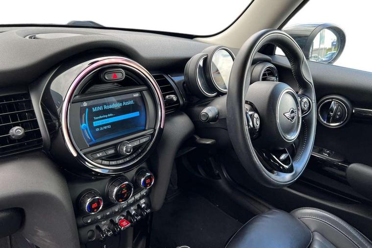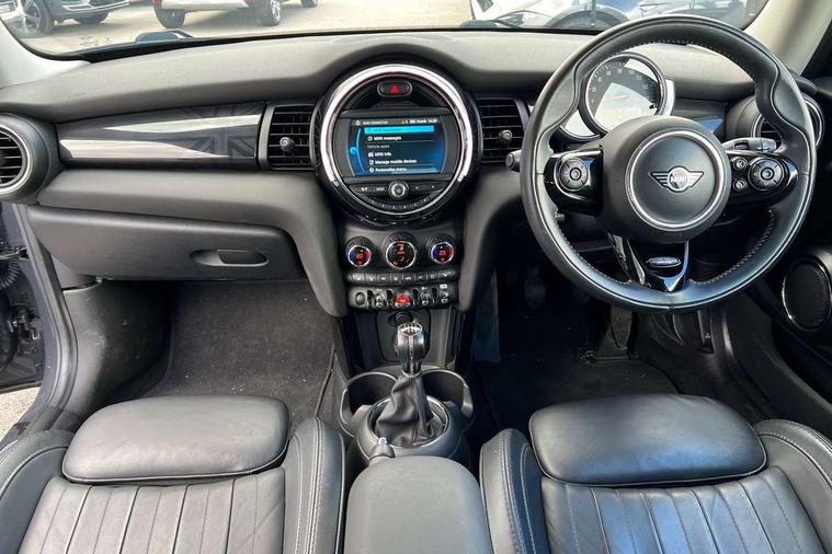 Automatic start/stop function with brake energy recuperation, Compatible mobile phone bluetooth with audio streaming, Electro-mechanical speed dependant steering assistance, Instrument cluster, Mini E-call, MINI TeleServices, On board computer, Service interval indicator, Double Vanos system, Fully variable valve control, High precision injection, Performance Control, 6.5" touchscreen with LED ring, FM tuner and DAB digital radio, Automatic headlight activation switch, Bonnet scoop, Chrome border honeycomb structure radiator grille with S badge, Chrome plated fuel cap, Dynamic brake lights, Electric front+rear windows, Heated rear window, Heated windscreen washer jets, LED headlight with closed ring and daytime driving lights, Metal door sill strips with Cooper S imprint, Model logo Cooper S on right of tailgate, Radiator grille bars, tailgate handle, lower front grille grating, rear central fog light in chrome, Rain sensor window wipers, Rear fog lights, Rear LED lights with union jack design, Rear window wiper, Side scuttle panel with integrated indicator, Sun/heat protection glass, Two central exhaust tailpipes with chrome finisher, White indicator lenses, 12V Accessory socket in centre console, 4 lashing eyes in luggage compartment, 60/40 split folding rear seat, Air vents, gear lever base, speakers in doors, door handles in chrome, Chrome interior highlights, Cupholders, Front and rear head restraints, Front and rear isofix with front passenger airbag deactivation, Glove compartment, Height and length steering column adjustment, Interior lighting with 12 basic colours selectable via toggle switch in roof, Leather gearshift lever and handbrake gaiters, LED reading lights, vanity mirror lights, front foot well light and spotlight on front seats, Manual air conditioning, Mechanical seat adjustment, driver seat height adjust, forward/back and front seats backrest, Mini logo projection on floor from drivers exterior mirror, MINI Yours leather steering wheel with silver contrasting stitching with MINI Yours badge, Multifunction steering wheel, Storage compartments in doors, Storage pocket on back of front seats, Sunvisors with vanity mirrors, 3 point seatbelts on all four seats, 6 Airbags - front, side, head and seat belt tensioners, Anti-lock braking system (ABS), DSC - Dynamic Stability Control, Front and rear disc brakes, Hill start assist, Two tone horn, Tyre pressure monitoring system, Alarm system with tilt sensor, monitoring doors, bonnet interior and tailgate, Electronic vehicle immobiliser, Start/stop toggle with keyless go, Chrome line interior, Tool kit,