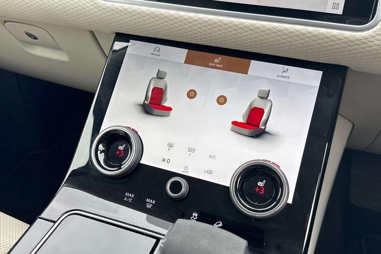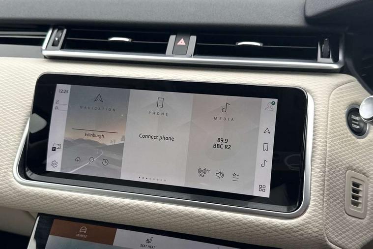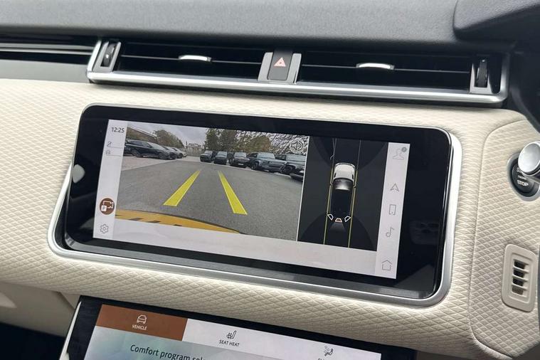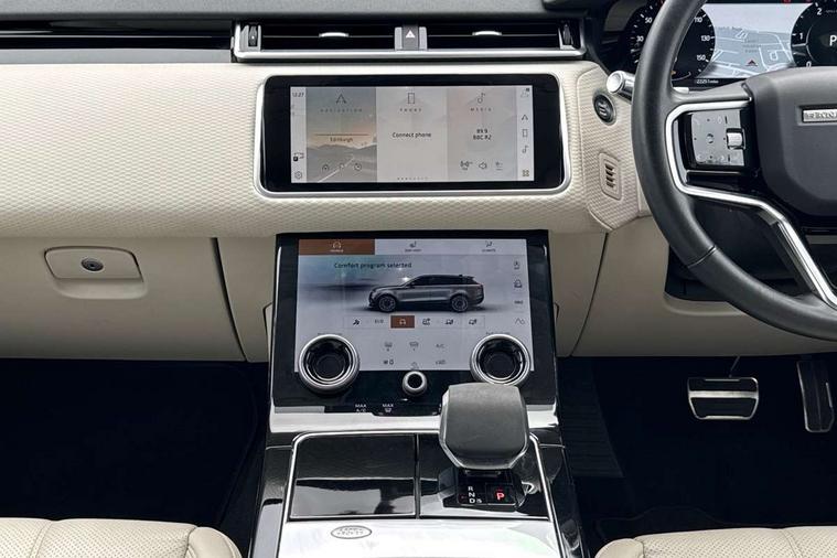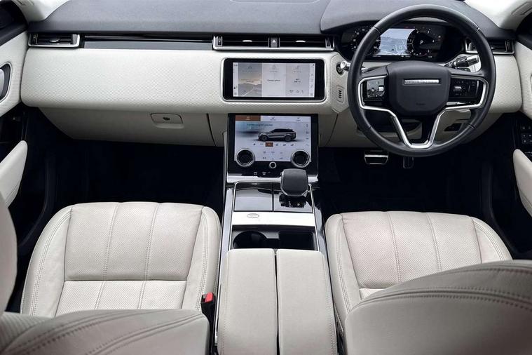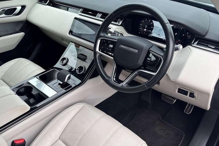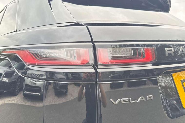 10" deployable touchscreen, Android Auto, Apple car play, Blind spot assist, Bluetooth connectivity, Brake pad wear indicator warning light, Driver condition monitor, eCall emergency call system, InControl remote, Land Rover InControl apps, Lane keep assist, Pivi pro with connected navigation, Push button start, Rear traffic monitor, Service indicator, Speed proportional electronic power assisted steering (EPAS), Traffic sign recognition with adaptive speed limiter, Trip computer, Voice control system, 8 speed automatic transmission, All terrain progress control, Open differential with torque vectoring by braking, Single speed transfer box, Digital Audio Broadcast radio-DAB, Steering wheel mounted controls, Acoustic laminated windscreen, Adaptive front lighting system, Auto dimming interior rear view mirror, Automatic headlamp levelling, Automatic headlights, Body coloured bumpers, Boot protection plate, Electric heated/power fold door mirrors with approach lights and auto dimming driver side, Electric windows with one touch open/close and anti trap, Flush deployable exterior door handles, Follow me home headlights, Heated rear window with timer, Heated washer jets, Heated windscreen, LED 3rd brake light, Metal load space scuff plates, No badge - Removes engine badge, Rain sensor windscreen wipers, Rear animated directional indicators, Rear fog lights, Rear side wing doors, Rear wash/wipe, Tailgate/boot lid spoiler, Trailer stability assist, Velar and R-dynamic badge, 3 seat bench in 2nd row, Ambient lighting, Bright metal pedals, Driver/passenger sunvisors with illuminated vanity mirrors, Isofix system on outer rear seats, Loadspace cover, Overhead lighting console, Overhead stowage for sunglasses, Passive front headrests, Rear air vents, Rear centre headrest, Satin chrome gearshift paddles, Single front passenger seat, Standard interior, Twin front cupholders, Twin sliding front centre armrest, Online pack with data plan - Velar, 355mm front brakes and 325mm rear brakes, 3x3 point rear seatbelts, Anti-lock braking system (ABS), Cornering brake control, Curtain airbags, Customer configurable autolock, Door side intrusion beams, Driver airbag, DSC - Dynamic Stability Control, Electronic brake force distribution, Electronic parking brake, Electronic traction control, Emergency brake assist, Emergency braking, Front and rear seatbelt reminder, Hill descent control, Hill launch assist, Low traction launch, Passenger airbag, Power operated child locks, Rear airbags, Roll stability control, Side airbags, Tyre pressure monitoring system, Unpainted brake calipers, Global lock and unlock switch on driver door, Immobiliser, Intrusion sensor, Keyless entry, Lock only switch on front passenger door, Locking wheel nuts, Perimetric alarm, Remote central locking,