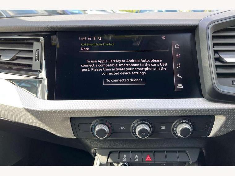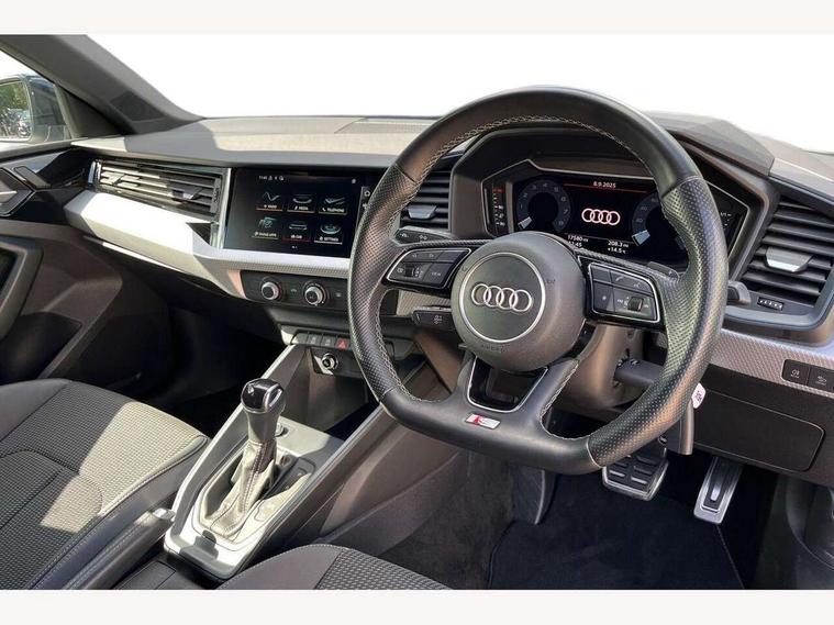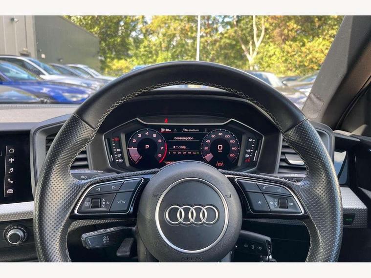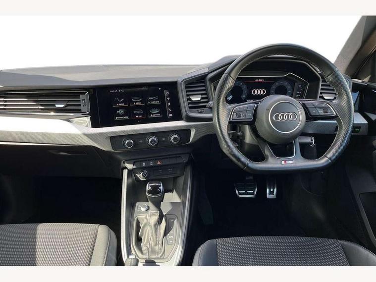 10.25" Digital instrument cluster display classis style instrument dials + speed, odometer, time, outside temperature, telephone menu + fuel level warning, Audi connect safety emergency and service including E-call, Audi smartphone interface with connect compatible smartphone via USB directly MMI display + Nav, music, third party apps controlled via MMI controller, Automatic start/stop system, Bluetooth interface, Cruise control, Driver's information system, Electromechanical power steering, Emergency services call system, Lane departure warning system, Service interval indicator, Speed limiter, Voice control system, Washer fluid level indicator, Sports suspension, 1 x SDXC card reader, 2 x USB type C connection points, DAB Digital radio, MMI radio plus with 8.8" colour MMI display screen and MMI touch, Auto dimming rear view mirror, Black door mirrors, Black side skirts, Body coloured bumpers, Contrast roof - Mythos black, Door sill trims with aluminium inlays and logo, Electric front and rear windows, Electrically adjustable, heated, folding door mirrors with integrated LED side indicator, Front side air inlets in grained matt black and C frame in titanium black, Front wing badges, Heat insulating glass windscreen and side windows, Heated rear windscreen, High level LED brake light, LED headlights with LED rear lights + dynamic rear indicators + headlight adjustment and high beam, turning light + LED daytime running lights, Radiator protective grille frame in matt aluminium silver, Rain and light sensors, Rear diffuser strip in matt titanium black, Rear fog lights, Rear side wing doors, Rear wing door, Rear wiper, Side front spoiler lips in grained matt black, 12V socket in centre console with two cup holders, 3 rear seats with headrests, 3 seat bench in 2nd row, 3 spoke flat bottomed multi-function plus leather steering wheel with S badging, grips in preforated leather, contrast stitching and paddle shift, 40:60 Split folding rear seat or folded fully, Black cloth headlining, Driver and passenger seat with manual height adjust with forward and backwards adjustment, Front and rear black floor mats with contrast stitching in fine silver, Front head restraints, Front passenger seat, Height and reach adjustable steering wheel, ISOFIX child seat mounting for front passenger and outer rear seats including top tether attachment point of outer rear seats, Leather gear knob with aluminium trim, Luggage compartment light with front and rear reading lights, Manually adjustable lumbar support in front seats, Stainless steel pedals, Black styling pack - A1 Sportback Black Edition, LED interior lighting pack - A1, Luggage compartment pack - A1, 3x3 point rear seatbelts, Audi pre-sense front with pedestrain and cyclist recognition, Brake assist function, Driver and front passenger airbag with front side and head airbags, Electronic Stability Control including ABS, EBD, ASR and EDL, Front passenger airbag deactivation switch, Hill hold assist, Manual rear child locks, Seatbelt height adjustment for front seats, Seatbelt monitoring, Tyre pressure warning light, Warning triangle and first aid kit, Anti theft alarm, Anti theft wheel bolts and loose wheel warning, Immobiliser, Remote central locking with 2 foldaway keys, Aluminium trim for control switches, air vents and digital instrument cluster, Silver grey inlays polygon structure in diamond paint finish, Structured grey accent areas including air vents, door handle recesses and centre console in quartz paint finish, 18" 7 spoke rotor design alloy wheels in gloss anthracite black, diamond cut finish,