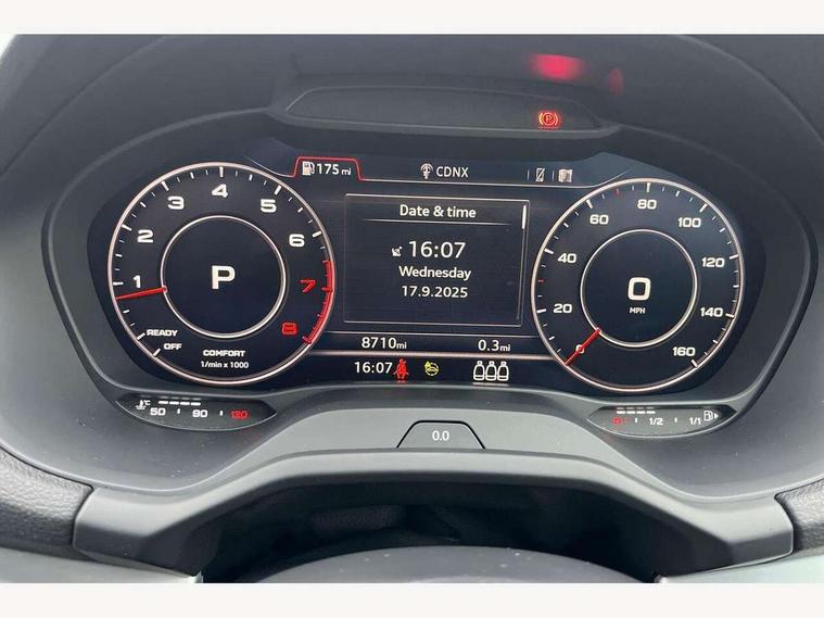 3D map display, Audi connect navigation and infotainment includes innovative services, Audi connect remote and control connects your vehicle to your smartphone, Audi drive select: S tronic - power steering assistance + engine + gearshift (modes: comfort, auto, dynamic, efficiency, individual), Audi smartphone interface - Apple carplay/Android Auto, USB connect, 2xSDXC card readers, voice control for navi, telephone, music and 3rd party apps, Audi virtual cockpit, Automatic start/stop system with recuperation, Bluetooth interface includes bluetooth audio streaming, Cruise control, E-call, Jukebox hard drive memory for music (10GB), MMI navigation plus with 8.3" colour MMI screen and MMI touch, Natural voice recognition, Power operated tailgate, Progressive steering, Rear parking sensors, Sport suspension, 6 passive loudspeakers, DAB Digital radio, Auto dimming rear view mirror, Black window trims, Body colour door mirrors, Electrically adjustable, folding, auto dimming and heated door mirrors with integrated LED side indicators, Front windscreen with grey tinted sunband, LED daytime running lights, LED headlights with dipped beam, high beam, position lights, indicators, LED rear lights, LED third brake light, Privacy glass - dark tinted rear and rear side windows from B-pillar backwards, Rear side wing doors, Rear wiper, S Line badges on the front wings, S Line body styling - front and rear bumpers, side skirts, radiator grille, rear diffuser insert and front air intakes, Variable front intermittent wipers, Wheel arch trims in manhattan grey, 12v socket in front, 3 seat bench in 2nd row, 3 spoke multi-function leather steering wheel with S badging, 4-way electric lumbar support for front seats including manual seat height adjustment for both front seats, 60/40 split folding rear seat bench, Black carpets, Black cloth headlining, Front and rear head restraints, Front centre armrest, Front sport seats, Front/rear floor mats, Height/reach adjust steering wheel, Illuminated door sill trims with S logo, ISOFIX child seat mounting in front passenger and rear outer seats, Manual air conditioning, Single front passenger seat, Stainless steel pedals, 3x3 point rear seatbelts, 6 airbags - Front, curtain and front side airbags, Electromechanical parking brake, Electronic stabilisation control including ABS, ASR and EDL, Front passenger airbag deactivation, Hill hold assist, Pre-sense front with pedestrian recognition, Seatbelt monitoring, Tyre pressure warning light with visual and acoustic warning, Warning triangle and first aid kit, Anti theft alarm, Anti theft wheel bolts, Electronically operated child locks, Remote central door locking, Aluminium interior element, Black dashboard, Matt brushed aluminium trim inlays, Tool kit,