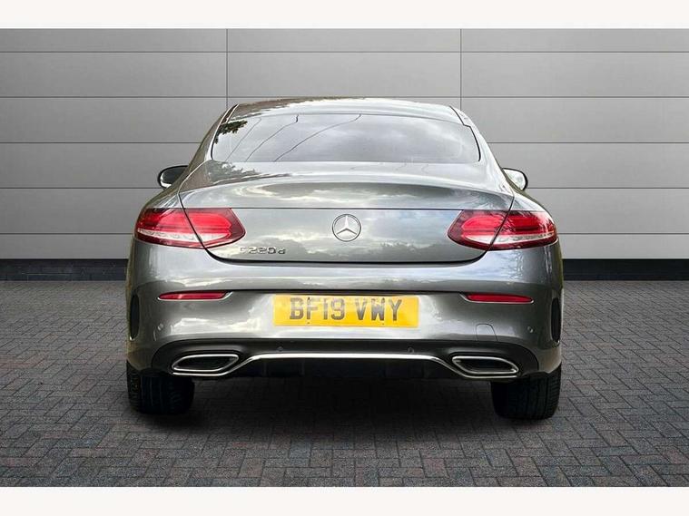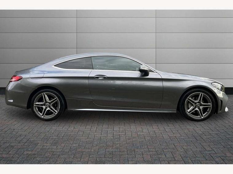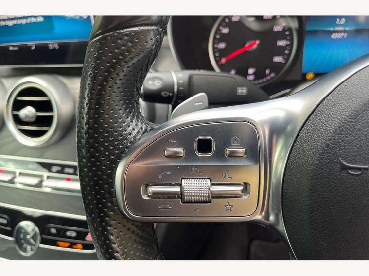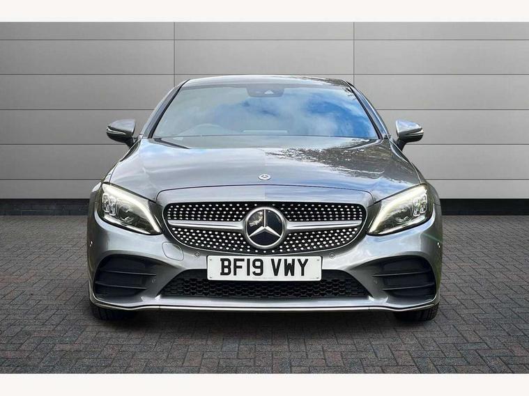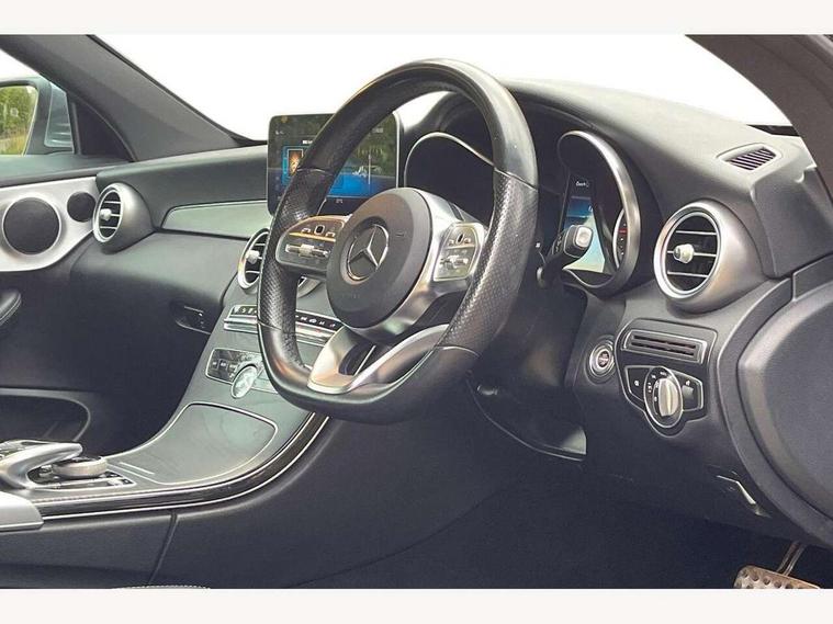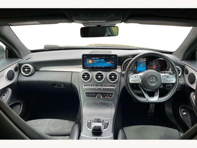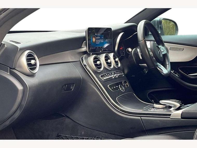Active park assist with parktronic system, Attention assist, Bluetooth interface for hands free telephone, Collision prevention assist plus, Comand Online HDD Nav with media interface, radio/CD/DVD/MP3, 10.25 screen, linguatronic voice control, DYNAMIC SELECT with a choice of driving modes (ECO, Comfort, Sport, Sport+ and Individual), Mercedes connect me with remote online, Multi function trip computer, Outside temperature gauge, Remote boot release, Reversing camera, Service indicator (ASSYST), Smartphone integration with Apple CarPlay and Android auto, Speed sensitive steering, Stop/start system, Wireless charging, Diesel particulate filter, 2 USB ports, Burmester surround sound system, DAB digital radio module, Mercedes Audio 20 radio/single CD, SD card slot, Adaptive brake lights, AMG front, rear apron and side skirts, Auto dimming driver's door mirror, Auto dimming rear view mirror, Body coloured bumpers, Body coloured door mirrors, Chrome grille surround, Chrome pins diamond radiator grille with integrated stars, Door sill plates with "Mercedes-Benz" lettering, Electric adjustable/heated/folding door mirrors, Electric windows one touch open/close, Green tinted glass, LED daytime running lights, LED Indicators, LED tail lights, LED third brake light, Multi beam LED headlights, Radio aerial in side window, Rain sensor windscreen wipers, Side windows surround in polished aluminium, Twin exhaust tailpipes x2, 2 cupholders in front centre console, 2 rear head restraints, 3 spoke flat bottom multi-function leather AMG steering wheel, 40:20:40 split folding rear seats, Ambient lighting, AMG floormats, Artico man-made leather upper dashboard and beltlines with contrast stitching, Auto dual-zone climate control system, Auto Mercedes-Benz child seat recognition sensor, Door courtesy lamps, Electrically adjustable front seats, Front centre armrest with storage compartment, Front footwell illumination, Heated front seats, Height adjustable front seats, Illuminated front/rear door handle recesses, Illuminated glovebox, Isofix rear child seat fastenings, LED reading lights, LED rear reading lights, Sports pedals with stainless steel surfaces and rubber studs, Sports seats with integrated headrests, Steering wheel audio controls, Steering wheel gearshift paddles, Sunvisors with illuminated vanity mirrors, Seat comfort pack - C Class, Stowage space pack - C Class, 2 rear seatbelts, 3 point automatic seatbelts, ABS, Active bonnet, Adaptive brake system, Black seat belts, Brake calipers with Mercedes-Benz lettering + perforated brake discs, Crash sensor, Drivers knee airbag, Drivers pelvis airbag, Dual stage driver/passenger airbags, Electronic parking brake, Electronic stability control, Front and rear window airbags, Front seatbelt pretensioners, Front side airbags, Hill hold control, Hill start assist, Tyre pressure monitoring system, Warning triangle and first aid kit, Alarm system/interior protection/immobiliser, Automatic door locking, Chrome surround electric key, Remote central locking, Tow away protection,