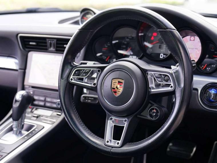 Mobile telephone preparation, On board computer, PCM voice control, Porsche communication management including navigation, Telephone module for PCM, Porsche Active Suspension Management (PASM), Porsche stability management (PSM), 2 USB ports, Auxiliary input socket, Connect Plus with Apple CarPlay, wireless internet access, Carfinder, Remote Vehicle Status and Remote Services, DAB Digital radio, SD card slot, Automatic headlamp levelling, Automatic headlights, Automatically extending rear boot spoiler, Body coloured bumpers, Electric front windows, Electrically adjustable and heated door mirrors, Green tinted heat insulating glass, Headlight washers, Heated rear window, Heated windscreen washers, Outer door sill guards in chrome-plated stainless, Welcome home function, Windscreen with grey top tint, 2 in-dash cupholders above glove compartment, 3 x 12V power sockets, Alcantara roof lining, Centre console storage, Clothes hooks on front seat backrests, Continuously variable dimming interior light, Dual zone automatic climate control, Extended headrests intergrated in front seats, Footwell illumination, Front centre armrest, Ignition Lock illumination, Interior orientation lighting, LED reading lights, Lockable glovebox, Manual height/reach adjust steering wheel, Pollen/active carbon filters, Rear centre armrest, Split folding rear seats, Sports seats, Storage compartments in doors, ABS, ASR + ABD, Driver/Front Passenger airbags, Electronic parking brake, Front head airbags, Front passenger airbag deactivation, Front seat thorax airbags, Front seatbelt pretensioners with force limiters, Height adjustable front seatbelts, Isofix location points on rear seats, Tyre pressure monitoring system, Alarm system with interior radar surveillance, Anti-theft wheel bolts, Porsche vehicle tracking system (VTS), Remote control central locking, Transponder engine immobiliser, Two stage locking, Sealing compound and compressor kit,