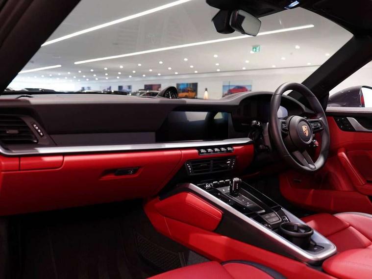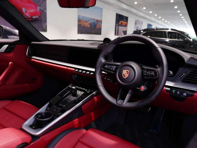 Apple CarPlay, Automatic start/stop system, Driver awareness detection, Emergency call systems eCall and bCall, Gear indicator in rev counter, Navigation High, Smartphone compartment with wireless charging up to 15 W, Sports and WET Mode, Stationary management with HOLD function, Voice control, Warn and brake assist including pedestrian protection, 3.0 liters 6-cylinder boxer engine with twin-turbo, 63 litre fuel tank, 8 Speed Porsche Doppelkupplung (PDK), Porsche Active Suspension Management (PASM), Porsche Torque Vectoring Plus (PTV Plus), Rear wheel drive, Two gasoline particulate filter, DAB Digital radio, 3rd brake light, Automatic headlight activation including welcome home lighting, Automatically dimming interior and exterior mirrors with integrated rain sensor, Door handles painted in exterior colour, Electric folding door mirrors, Fuel/charging cover, Heated rear windscreen, LED daytime running lights, Model designation on rear trim in Light silver, Rear boot, Rear diffusor in louvered design, Rear lid grille with vertical slats in high gloss black, Trim on side skirts in black, Windscreen washer system with aero wiper blades and washer jets, 2 seat bench in 2nd row, Delete quilting, Deletion of model logo embossed on headrests, Driver and front passenger illuminated vanity mirrors, Front and rear head restraints, Heated front seats, Hood lining in black fabric, ISOFIX fastening system, Leather door panel and central armrests, LED footwell lights, LED glove compartment lighting, LED ignition light, LED luggage compartment lighting, LED orientation light, LED reading lights, Lockable glove compartment, Particle/pollen filter with active carbon filter, Single front passenger seat, Steering wheel with manual fore/aft and height adjustment, Two zone auto climate control, USB-C fast charging, Light design package - 911, Sound pack plus - 911, Airbags, Brake system with brake calipers in black, Electric parking brake, Passenger airbag deactivation, Pedestrian safety, Seatbelt pretensioners, Tyre pressure monitoring system, Alarm system with interior surveillance, Alcohol interlock preparation, Anti-theft wheel bolts, Comfort access system, Keyless drive, Porsche vehicle tracking system (PVTS Plus), Preparation for Porsche Dashcam, TPM valve in silver, Tyre sealing compound and electric air compressor kit,