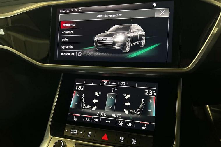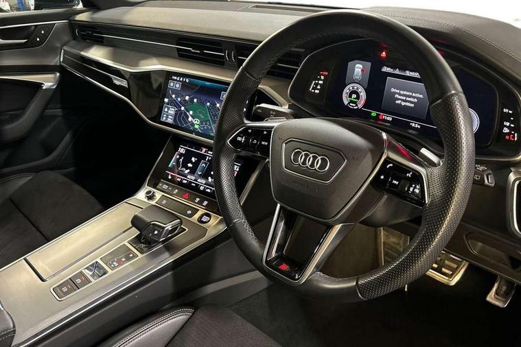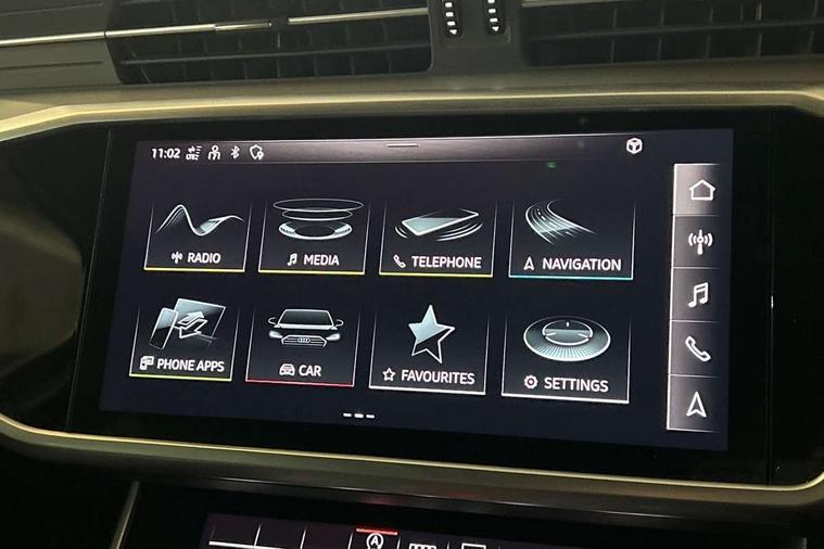 7" high resolution colour driver information display system, Audi connect safety and service (e-call), Audi connect with Amazon Alexa Integration, Audi drive select, Audi parking system plus - acoustic and visual park assist system for front and rear, Automatic start/stop system with coasting functionality, Bluetooth interface, Lane departure warning system, Power operated tailgate, Progressive steering, Rear view camera, Service interval indicator, Smartphone interface includes wireless Apple carplay/Android Auto, Voice control system, Sports suspension, Audi front music interface, Audi sound system, Auxiliary input socket, DAB Digital radio, USB connection, Aluminium roof rails, Body coloured door mirrors, Electric front/rear windows, Frameless auto dimming interior rear view mirror, Front intermittent wipers, Headlight washers, Heat insulating darkened glass in side and rear windows, Heat insulating glass in windshield, LED signature front daytime running light, LED third brake light, Matrix LED headlights, Matt black side air intake grille with inlay in matt aluminium, Privacy glass, Radiator grille in anthracite black matt, single frame in chrome and horizontal struts in matt aluminium silver, Rain and light sensors, Rear side wing doors, Rear wiper, S line air inlet design with inlay in matt aluminium, S Line badge on front fender, S Line front and rear bumpers, S line rear diffuser and grille in matt black with matt aluminium tailpipes, S Line roof edge spoiler, S Line side skirts, Signature rear LED light design, 2 zone deluxe electronic climate control, 4 way electric lumbar support for driver and front passenger, 40/20/40 split folding 3 rear seat bench in 3 parts with rear centre armrest, Black cloth headlining, Black steering wheel insert, Electrically adjustable front seats with driver memory, Front centre armrest, Front head restraints, Heated front seats, Height/reach adjust steering wheel, Illuminated door sill trims with S logo, Illuminated sun visors with vanity mirrors, ISOFIX child seat mounting and Top Tether with front passenger airbag deactivation, Leather gear knob, Luggage compartment system, Perforated leather steering wheel with contrast stitching, Rear headrests, S line front and rear black carpet floor mats with contrast stitching, Single front passenger seat, Stainless steel pedals and foot rest, LED Interior Ambient Lighting Pack - A6, Non smoking pack - A6, Technology pack - A6, 3 point seatbelts on all seats, Airbags - Front side, front and rear including head, Audi pre-sense front, Black seatbelts, EBD - Electronic brakeforce distribution, Electromechanical parking brake, Electronic Stability Control (ESC) including ABS, ASR and EDL, Extended pedestrian protection measures, Manual child proof rear door locks, Seatbelt monitoring, Tyre pressure warning light, Warning triangle and first aid kit, Anti theft alarm with tow away protection, Anti-theft wheel bolts and wheel loosening detection, Immobiliser, Keyless Go, Remote central locking, Matt brushed aluminium dark inlays,