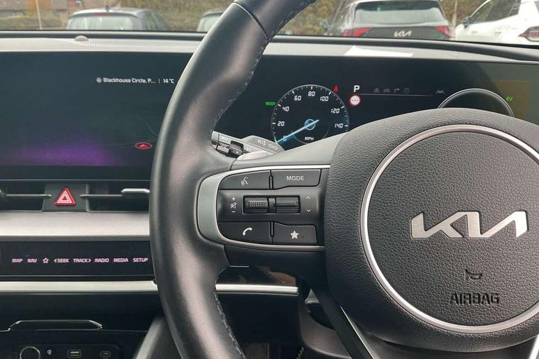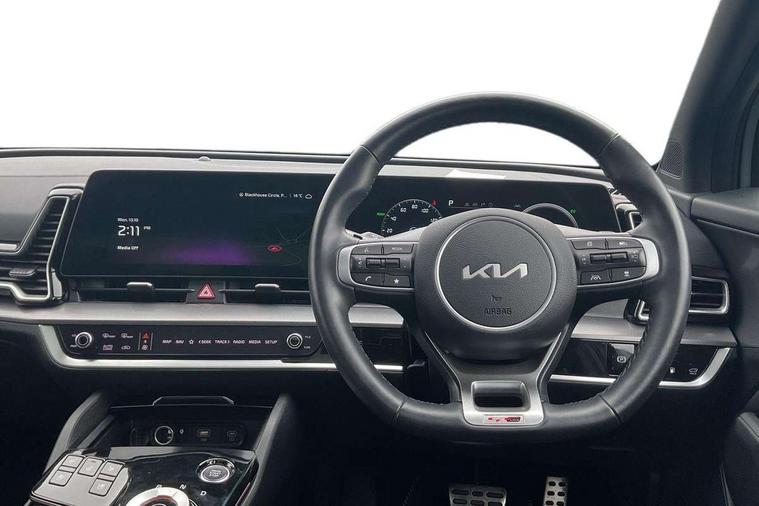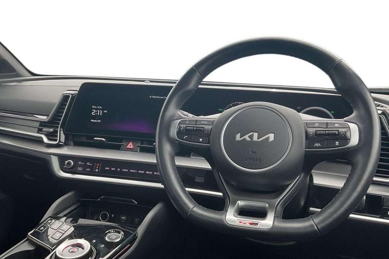 12.3" Display with navigation, 12.3" supervision colour cluster display, 360 degree around view monitor, Apple car play/Android Auto with voice control, Blind spot collision avoidance assist, Blind spot view monitor, Drive mode selector, E-call, Forward collision avoidance assist (FCA) - city/pedestrian/cyclist/junction covering, Front and rear parking sensors, Highway Driving Assist (HDA), Intelligent speed limit assist, Kia Connect (UVO), Lane Following Assist (LFA), Lane keep assist, Low washer fluid warning, Parking collision avoidance assist (PCA), Remote smart parking assist, Reversing camera system integrated into centre fascia screen, Smart cruise control with stop and go functionality, Smart power tailgate, Speed sensitive power steering, Trip computer, Windscreen washer level indicator, Wireless Smartphone charger, Intelligent Stop and Go, Terrain mode select (Mud, Snow, Sand), Bluetooth audio streaming, DAB Radio with MP3, Harman Kardon premium sound system, Rear USB port, Steering wheel mounted audio controls, USB C type charging ports on centre console, USB C type charging ports on side of front seats, USB port for connection of a media device, All round electric windows with drivers and front passenger auto up/down function, Automatic headlight control system, Automatic window defogger, Backlite glass heated with timer, Body colour and black bumper with silver accents, Body colour exterior door handles, Body colour radiator upper garnish and door garnish, Dual LED adaptive headlamps, Electric panoramic glass sunroof (Electric one touch with safety function), Electrically adjustable/heated/folding door mirrors with LED indicators, Front and rear chrome skid plates, Gloss black door mirrors, Gloss black radiator grille, Gloss black side sill and wheel arch body mouldings, Glossy black roof rack, High beam assist, Interior electrochromic mirror, LED daytime running lights, LED front fog lamps, LED High mounted stop light, LED rear combination lamp, Rain sensing wipers with aero blades, Rear fog lamp, Rear privacy glass, Rear side wing doors, Rear spoiler, Rear wiper, Satin finished beltline, Trailer stability assist, 10 way driver/8 way passenger electrically power adjustable seats, 12V power socket in front centre fascia and luggage compartment, 3 seat bench in 2nd row, 3 x passenger assist grips, 40/20/40 split folding rear seat, All-round height adjustable headrests, Ambient lighting, Black headlining, Centre console storage box, Cupholders in rear armrest, D-Shaped sports leather steering wheel and perforated inserts with GT-Line logo, Door courtesy lamps, Drink holder at centre armrest, Driver and front passenger side sunvisors with illuminated vanity mirrors, Driver seat memory function, Drivers seat power lumbar support, Front and rear door storage, Front seat and rear pockets, Front/rear centre armrests, Gear shift indicator, Glovebox illumination, Heated front and outer rear seats, Heated steering wheel, Interior door lock/unlock function, ISOFIX Child seat top tethers and anchor fixings outer rear seats, LED interior personal lamp, LED lighting in overhead console, Luggage area LED light, Luggage area load cover, Luggage net with hooks, Metal paint interior door handles, Paddle shift controls, Rear coat hooks, Single front passenger seat, Sports pedals, Suede leather upholstery, Three zone climate control, Tilt/telescopic adjustable steering wheel, Ventilated front seats, Ventilation ducts to rear compartment, Active front headrests, All round 3-point seatbelts, Anti-lock braking system (ABS), Dual front side airbags, Dual horn, Electronic parking brake, Electronic stability control with downhill brake control, Front passenger airbag cut-off switch, Front seatbelt pretensioners + load limiters, Height adjustable front seatbelts, Hill start assist control (HAC), Impact sensing auto door unlocking, Multi collision brake assist, Rear door child safety locks, Rear seat alert system, Traction control, Twin curtain airbags, Twin front airbags, Tyre pressure monitoring system, Advanced anti-theft system including immobiliser and alarm, Door deadlocks, Engine Start/Stop Button with Smart Entry System, Locking wheel nuts, Speed sensitive auto door locking, Visible vehicle identification number, Aluminium pattern finish centre fascia and door garnish, 19" Alloy wheels, Michelin tyres, Tyre mobility kit,