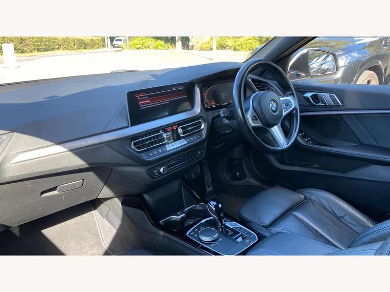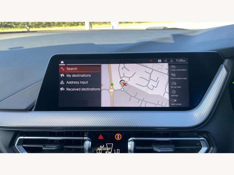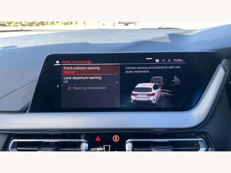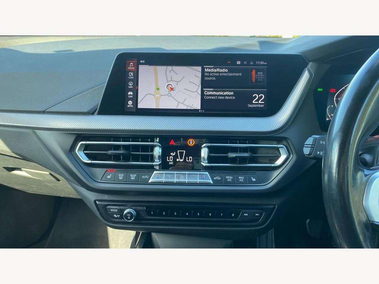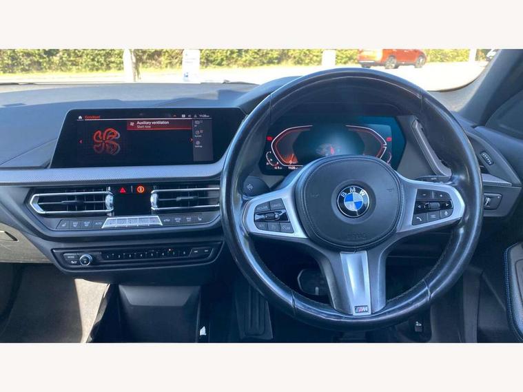 Active guard plus, Attentiveness assist, BMW Online services, BMW Teleservices, Check Control warning system for monitoring of lights and door/luggage compartment open warning, Connected eDrive Services, Eco pro mode, Integrated owners handbook, Oil sensor for level and grade, On board computer, Optimum shift indicator, Personal Profile, Pull away assistant, Speed limiter, Aluminium lightweight construction, Anti roll bar front and rear, Balancer shaft, Double VANOS, Drive Performance Control, Electronic differential lock, High precision injection, M sport suspension, Petrol Particulate Filter, VALVETRONIC engine management, Bluetooth audio streaming, DAB Digital radio, Auto dimming rear view mirror, Automatic headlight beam throw control, Automatic windscreen wipers and automatic headlight, Body colour door handles, Body colour mirror caps, Chrome 'M' logo side designation, Chrome exhaust tailpipe in single, round (Exhaust tailpipe, stainless steel - single, round), Chrome kidney grille frame with Satin Aluminium struts, Direction indicator side lights in exterior mirrors, Electric folding and anti dazzle exterior mirrors, Fading support, Follow me home headlights, Front and rear bumper system with replaceable deformation elements, Front and rear electric windows with open and close fingertip control, anti trap facility and comfort closing, Front door sill finishers in black plastic with M designation in metallic look, Green tinted heat protection glazing, Heated, electrically adjustable exterior mirror aspheric on driver side, convex on passenger side, High gloss shadowline window frame, Recess cover mirror frames and B/C pillar embelisher trim, High level third brake light, LED daytime running lights, LED eyebrow turn indicators, LED front fog lights, Lightweight engineering, Matt black air guide grilles, Model designation on right side of tailgate, Nearside reverse light in rear light cluster, Preparation for high beam assistant, Rain sensor including auto headlights activation, Rear fog lights, Rear window wiper, Shark fin antenna, Visible VIN plate, Welcome lighting, 12V power socket in centre console, 3 rear seat head restraints, 3 spoke M sports design leather steering wheel finished in nappa leather with specific M badge, Anthracite headlining, Anthracite Velour floor mats, Child seat ISOFIX attachment for two outer rear seats and front passenger seat with anchorage points, Conditioned based service, Dakota leather upholstery with perforation and contrast stitching, Driver and front passenger seat heating, Folding rear clothes hook, Four grab handles integrated in roof lining, Front and rear door pockets, Front and rear door pockets with bottle holders, Front and rear side armrest integrated into door trim, Front armrest foldable with integrated storage compartment, Front sports seats with electric side bolster adjustment, Glove compartment, Height adjustable front head restraints, Manual adjust steering wheel, Multi-function controls for steering wheel, Storage compartment in centre console, Sun visors with vanity mirrors and insert tab, Two zone automatic air conditioning, Additional interior lighting pack - 1 Series, Connected pack professional - 1 Series, Extended storage pack - 1 Series, Interior lights pack - 1 Series, Luggage compartment pack - 1 Series, M Sport exterior styling aerodynamics pack - 1 Series, 2 tone horn, 3 point seatbelts on all seats, front pyrotechnic belt tensioners, stopper and belt force limiters, rear coded belt buckles, Airbags - front driver/passenger, front & rear curtain, front side, Anti lock braking system (ABS) with brake assist, BMW emergency call, Brake drying, Braking readiness, Crash sensor activating central locking release, hazard warning lights, fuel cut off, interior lighting + activation of safety battery terminal clamp, Driver and front passenger seat belt security check, Dynamic stability control + (DSC+), Dynamic Traction Control - DTC, Electrically operated hand brake, Front and rear disc brakes, Front passenger manual airbag deactivation, Seatbelt warning, Side impact protection, Tyre pressure monitoring system, Warning triangle and first aid kit, Automatic drive away locking facility, Central locking switch for all doors, fuel filler cap and luggage compartment, Deadlocking function system to all doors, Locking wheel bolts, Remote control with integrated key with High-gloss Black inlay and M designation and 1 button for open/ close lock, window, open luggage compartment, Start/stop button with comfort go keyless engine start and auto start stop deactivation button, Thatcham Cat.1 alarm and immobiliser, Contrast stitching on instrument panel, Reduced rolling resistance tyres,