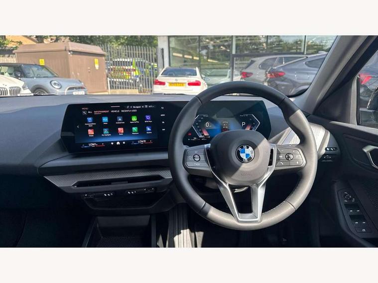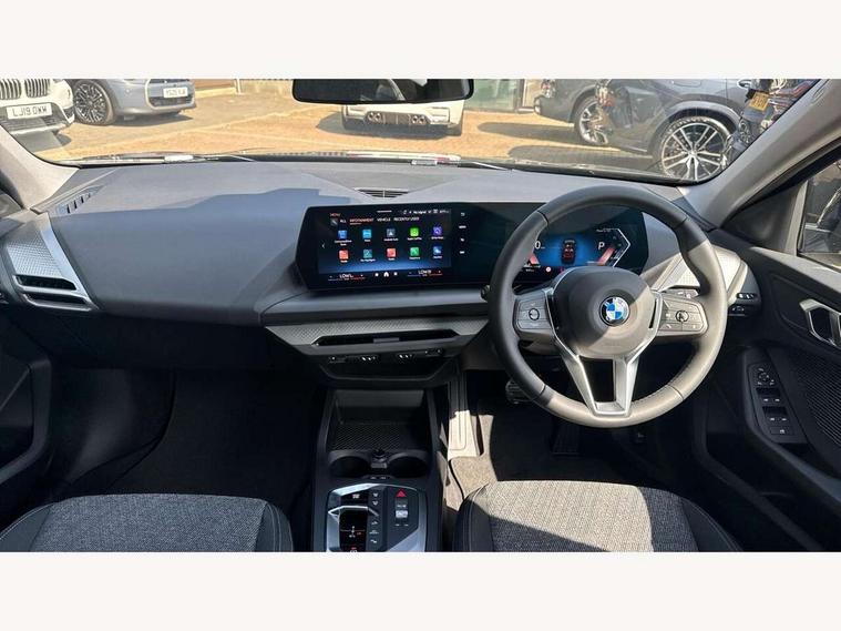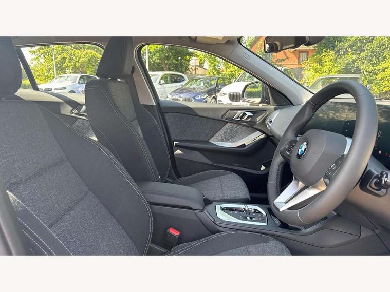 Active guard plus, Attentiveness assist, Bluetooth / WiFi interface for wireless connection of mobile terminal devices and audio streaming, BMW ConnectedDrive online services, BMW Live cockpit plus, BMW Teleservices, Check Control warning system for monitoring of lights and door/luggage compartment open warning, Eco pro mode, Electric power steering with Servotronic steering optimised at all speed ranges, Evasion assistant, Flat airvents in instrument panel with adjustable slats, Front and rear parking sensors, Front axle single joint with specific axle kinematics to minimise drive influences on steering + provide increased rigidity agile driving behaviour, Integrated owners handbook, Left turn warning with brake function, My modes (Personal / Efficient / Sport), Oil sensor for level and grade, On board computer, Optimum shift indicator, Park assist including reversing assistant, lateral parking aid and reversing assist camera, Personal e-SIM, Personal Profile, Pull away assistant, Rigidly mounted rear subframe - Multi link construction with separate spring / damper configuration and excellent driving characteristics, Speed limit Info including no-overtaking indicator, Speed limiter, 49 litre fuel tank, 7 speed automatic transmission with double clutch technology, Aluminium lightweight construction, Anti roll bar front and rear, Balancer shaft, Double VANOS twin scroll turbocharging system, Drive Performance Control, Electronic differential lock, Electronic selector lever, High precision injection, Petrol Particulate Filter, Suspension with twin tube gas filled shock absorbers with degressive characteristic curve, VALVETRONIC engine management, DAB Digital radio, Auto dimming rear view mirror, Automatic windscreen wipers and automatic headlight, Body colour door handles, Chrome exhaust twin tailpipes round 90mm in left, Direction indicator side lights in exterior mirrors, Electrically adjustable exterior mirror with mirror adjustment switch on drivers armrest and aspheric on driver side, convex on passenger side, Fading support, Follow me home headlights, Front and rear bumper system with replaceable deformation elements, Front and rear electric windows with open and close fingertip control, anti trap facility and comfort closing, Front bumper in Body colour with exclusive Sport air inlets finished in High gloss Black, Front door sill finishers in black plastic with BMW designation in metallic look, Grained matt black roof strip, Green tinted heat protection glazing, Heated rear window, High gloss black exterior mirrors, High gloss shadowline window frame, Recess cover mirror frames and B/C pillar embelisher trim, High level third brake light, Integrated front windscreen with washer jets, Kidney grille in chrome frame with highgloss black struts, LED daytime running lights, LED eyebrow turn indicators, LED front fog lights, LED Headlights, Lightweight engineering, Manual headlight beam throw control, Manual headlight levelling, Matt black air guide grilles, Matt black wheel arch trim, Model badge on tailgate right, Nearside reverse light in rear light cluster, Power folding and heated door mirrors, Preparation for high beam assistant, Rain sensor, Rear bumper in Body colour with exclusive Sport design elements finished in High gloss Black, Rear fog lights, Rear side wing doors, Rear window wiper, Shark fin antenna, Trailer stabilisation logic, Visible VIN plate, Welcome lighting, 12V power socket in front centre console with blanking plug, 3 rear seat head restraints, 3 seat bench in 2nd row, 3 spoke sports leather steering wheel in black leather with black stitching and decorative finisher in pearl chrome, Anthracite front and rear floor mats, Black boot net with lashing eyes, Cargo function on 2nd seat row, Child seat ISOFIX attachment for two outer rear seats and front passenger seat with anchorage points, Conditioned based service, Driver and front passenger backrest net on rear, Driver and front passenger seat heating, Driver side folding compartment in instrument panel, Folding rear clothes hook, Footrest and pedals in black plastic, Four grab handles integrated in roof lining, Front and rear door pockets with bottle holders, Front and rear side armrest integrated into door trim, Front armrest with storage compartment, Glove compartment, Height adjustable front head restraints, Luggage compartment for bag hooks on left and right, foldable luggage compartment liner and four lashing eyelets, Manual adjust steering wheel, Multi-function controls for steering wheel, Rear seat backrest with manual 60:40 split folding with 3 top tether clips integrated on rear of seat panels, Single front passenger seat, Storage compartment in centre console, Storage compartment in luggage compartment, Stowage of the parcel shelf in luggage compartment trim, Sun visors with vanity mirrors and insert tab, Two front centre console cupholders, Type C two USB ports in rear centre console, Upper retaining strap integrated into backrest rear panels, Connected pack professional - 1 Series, Interior lights pack - 1 Series, 2 tone horn, 3 point seatbelts on all seats, front pyrotechnic belt tensioners, stopper and belt force limiters, rear coded belt buckles, Airbags - Front driver/passenger, front and rear curtain head protection, front side, manual deactivation of front passenger airbag, Anti lock braking system (ABS) with brake assist, BMW emergency call, Brake drying, Braking readiness, Child proof locking system in rear door, Comfort modes, Cornering brake control, Crash sensor activating of airbags, Unlocking doors, hazard warning lights, fuel cut off, interior lighting+activation of safety battery terminal clamp, Driver and front passenger seat belt security check, Dynamic stability control + (DSC+), Dynamic Traction Control - DTC, Electrically operated hand brake including automatic hold function, Front and rear disc brakes, Seatbelt warning, Side impact protection, Tyre pressure monitoring system, Warnin