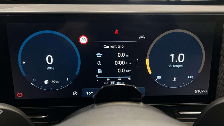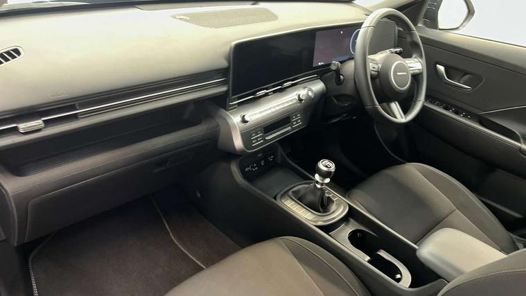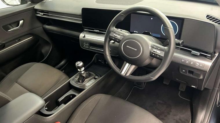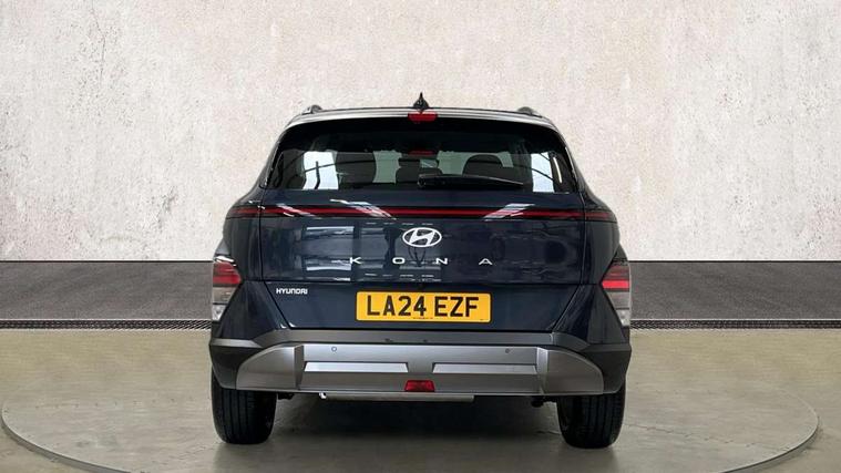 12.3" touchscreen centre console display satellite navigation with bluelink, live services and mapcare, Bluetooth connectivity with voice recognition, Cruise control, Digital clock, Driver status monitor (DSM), Driver supervision instrument cluster with 12.3" LCD display, eCall emergency call system, Feature on demand - Enabled, Forward collision avoidance assist (FCA 1.5) - Car, pededstrian, cycle and junction turning, Front parking sensor, Intelligent speed limit assist, Lane follow assist, Lane keep assist, Leading vehicle departure alert (LVDA), Parking system with rear camera and guidance system, PAS, Rear parking sensor, Roadside assistance, Windscreen washer fluid sensor and warning indicator, Wireless Smartphone Integration includes Apple CarPlay and Android auto, 2 front USB C and 2 rear USB C charging points, DAB Digital radio, Speakers - Front, rear and tweeters, Steering wheel audio, phone and cruise controls, Auto dimming rear view mirror, Automatic headlights with dusk sensor, Automatic windscreen wipers with rain sensor, Black painted wheel arch inserts, Body colour bumpers, Body colour exterior door handles, Body coloured door mirrors, Door mirror LED indicator lights, Electric front windows with anti-trap mechanism and one touch control, Electric rear windows, Electrically adjustable and heated door mirrors, Full LED MFR headlights, LED daytime running lights, LED upper and lower rear lights, Power folding door mirrors, Rear roof spoiler with integrated LED brake light, Rear side wing doors, Rear skid plate - silver, Rear wiper, Roof rails, Tinted glass in front and rear doors, Windscreen auto defog function, 12V power outlet in front console, 2 zone climate control, 3 seat bench in 2nd row, 60/40 split folding rear seat, Adjustable head restraints, Cloth upholstery, Driver and passenger front seat pockets, Driver's seat lumbar support, Driver/passenger manual seat height adjustment, Driver/passenger sunvisors and illuminated vanity mirrors, Floor mats, Height/reach adjustable steering column, Isofix rear child seat fastenings, Leather wrapped steering wheel and gear knob, LED centre interior light, LED front interior light, Luggage compartment LED lighting, Luggage shelf, Metal paint effect interior door handles, Parcel shelf, Rear centre armrest with cupholders, Rear centre console with air vents, Single front passenger seat, Vertical adjustment rear head restraints, Trailer wiring package - Kona, Airbag - front, front side, curtain and centre front airbag, Anti-lock brake system (ABS), Childproof rear door locks, Downhill brake control, EBD + Brake Assist, Electric parking brake, Electronic stability control, Fasten seatbelt reminder, Fixed 3 point for second row centre passenger seatbelt, Front seatbelt pretensioners, Height adjustable front seatbelts, Hill start assist control (HAC), Passenger airbag deactivate switch, Rear seat alert, Traction control, Tyre pressure monitoring system, Alarm/immobiliser, Deadlocks, Folding key, Locking wheel nuts, Rear occupant alert, Remote central locking, Smart key with keyless entry and start/stop button, Five year annual vehicle health checks, 17" Alloy wheels, Temporary mobility kit (TMK),