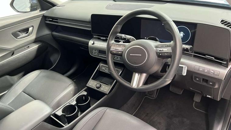 12.3" touchscreen centre console display satellite navigation with bluelink, live services and mapcare, Blind spot collision avoidance assist, Blind spot view monitor, Bluetooth connectivity with voice recognition, Digital clock, Driver status monitor (DSM), Driver supervision instrument cluster with 12.3" LCD display, eCall emergency call system, Feature on demand - Enabled, Forward collision avoidance assist (FCA 1.5) - Car, pededstrian, cycle and junction turning, Front parking sensor, HDA - Highway Drive Assist Level 1.5, Height adjustable power tailgate, Intelligent speed limit assist, Lane follow assist, Lane keep assist, Leading vehicle departure alert (LVDA), Parking Collision Avoidance Assist-Reverse (PCA-R), Parking distance warning - side, Parking system with rear camera and guidance system, PAS, Rear cross traffic collision avoidance (RCCA), Rear parking sensor, Roadside assistance, Safe exit warning (SEW), Smart cruise control with stop and go functionality, Surround view monitor, Windscreen washer fluid sensor and warning indicator, Wireless phone charging pad, Wireless Smartphone Integration includes Apple CarPlay and Android auto, 2 front USB C and 2 rear USB C charging points, Bose Premium Audio system with 7 premium speakers + subwoofer, DAB Digital radio, Steering wheel audio, phone and cruise controls, Auto dimming rear view mirror, Automatic headlights with dusk sensor, Automatic windscreen wipers with rain sensor, Black painted wheel arch inserts, Body colour bumpers, Body colour exterior door handles, Body coloured door mirrors, Door mirror LED indicator lights, Electric front windows with anti-trap mechanism and one touch control, Electric rear windows, Electric sunroof, Electrically adjustable and heated door mirrors, Horizon centre LED DRL, LED projector headlights, LED upper and lower rear lights, Power folding door mirrors, Privacy glass - Rear windows and tailgate, Rear roof spoiler with integrated LED brake light, Rear side wing doors, Rear skid plate - silver, Rear wiper, Roof rails, Solar glass with front door glass and windscreen, Tinted glass in front and rear doors, Windscreen auto defog function, 12V power outlet in front console, 2 zone climate control, 3 seat bench in 2nd row, 40/20/40 split folding rear seat, Adjustable head restraints, Ambient lighting, Driver and passenger front seat pockets, Driver's seat electric adjustments, Driver's seat lumbar support, Driver/passenger sunvisors and illuminated vanity mirrors, Floor mats, Front passenger's seat electric adjustments, Heated front seats, Heated rear seats, Heated steering wheel, Height/reach adjustable steering column, Isofix rear child seat fastenings, Leather upholstery, Leather wrapped steering wheel, LED centre interior light, LED front interior light, Luggage compartment LED lighting, Luggage net, Luggage shelf, Metal paint effect interior door handles, Parcel shelf, Rear centre armrest with cupholders, Rear centre console with air vents, Shift by wire SBW, Single front passenger seat, Ventilated front seats, Vertical adjustment rear head restraints, Trailer wiring package - Kona, Airbag - front, front side, curtain and centre front airbag, Anti-lock brake system (ABS), Childproof rear door locks, Downhill brake control, EBD + Brake Assist, Electric parking brake, Electronic stability control, Fasten seatbelt reminder, Fixed 3 point for second row centre passenger seatbelt, Front seatbelt pretensioners, Height adjustable front seatbelts, Hill start assist control (HAC), Passenger airbag deactivate switch, Rear seat alert, Traction control, Tyre pressure monitoring system, Alarm/immobiliser, Deadlocks, Folding key, Locking wheel nuts, Rear occupant alert, Remote central locking, Smart key with keyless entry and start/stop button, Five year annual vehicle health checks, 18" Alloy wheels, Temporary mobility kit (TMK),