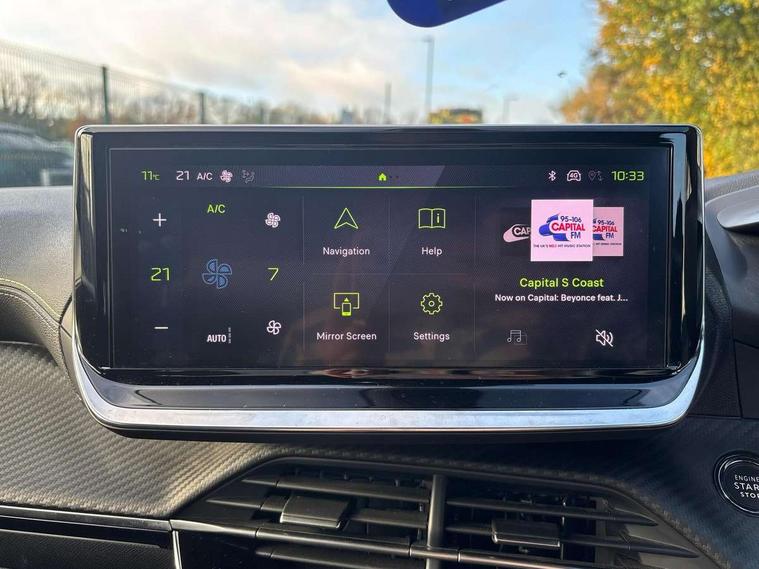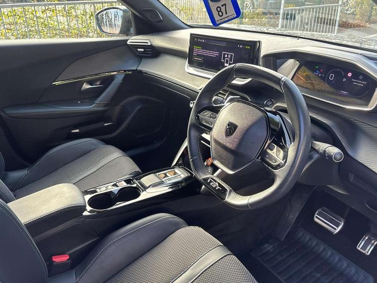 Bluetooth telephone facility, Driver attention warning, E-call, Exterior temperature indicator with ice warning, Multi function trip computer, PEUGEOT i-Cockpit with compact steering wheel, PEUGEOT i-Cockpit with configurable 3D headup instrument panel, PEUGEOT SOS and assistance, Smartphone charging plate, Speed limit recognition and recommendation, Wireless mirror screen with mirror link, apple carplay and android auto, Petrol Particulate Filter, 1x USB-C socket in rear and 1x USB-A socket in rear, 2 USB-C ports in the front, 6 speakers radio with mp3 compatible, DAB Radio (Digital Audio Broadcasting), Voice recognition for radio, navigation and telephony features, 2 X Rear number plate lights, Aluminium door sill scuff plates with peugeot lettering, Automatic hazard light activation upon heavy brake application, Black diamond roof, Black front wing trim with gloss black detail and GT badging, Body coloured exterior door handles, Dark tinted rear side and tailgate windows, Diamond black mirror shells, Diamond black rear roof spoiler, Electric, heated, and power folding door mirrors, Frameless electrochrome interior rear view mirror, Front bumper - Meteor grey lower trim, Full LED headlights with smartbeam assist with auto height adjustment, Gloss black finish on B pillar, Gloss black rear cluster connecting strip, Gloss black roof bars, Gloss black window surround, GT model designation badging on tailgate, Headlights left on audible warning, LED daytime running lights with distinctive 3 claw signature, LED side indicator lights integrated into door mirrors, LED third brake light, Model designation badges front and rear, One touch electric front/rear windows with pinch protection, Radiator grille - body coloured vertical chequered grille, Radiator grille - gloss black top edge trim, Rear full LED 3D peugeot signature claw effect lights with daylight function, Rear reversing lights, Rear side wing doors, Rear windscreen wiper triggered automatically in reverse gear, Tailgate with heated rear windscreen and wiper blade, Twin chromed exhaust pipes, Wheel arch extensions, 1/3 to 2/3 split folding rear seats, 12V socket, 3 seat bench in 2nd row, 8 Colour personalisable ambient lighting, Automatic air conditioning with pollen and active carbon filter, Central front armrest with storage compartment, Driver and front passenger sport seats, Electric power steering with reach and rake adjustable steering column, Front and rear carpet mats in black, Front LED interior light with 2 reading spotlights and rear interior light with timer, Front passenger seat manual adjustment - height, longitudinal and back rest angle, High centre console, ISOFIX child seat mounting points on passenger seat, Mistral full-grain perforated leather steering wheel with Lime Green stitch detail and satin chrome 'GT' emblem, Multifunction steering wheel, Piano keys: Gloss black and chrome toggle switches to access main functions of the vehicle and touchscreen functions, Roof lining - Mistral black, Seatbelt unfastened on the move audible and visual alert for front and rear seats, Single front passenger seat, Two position modular boot floor, Visibility pack - 2008, 2x 2nd row ISOFIX child seat mountings, ABS (Anti-lock Braking System) with EBD (Electronic Brakeforce Distribution) and EBA (Emergency Braking Assistance), Active safety brake with night function/cyclists/pedestrians, Adaptive driver and front passenger airbags with passenger airbag deactivation function, Child locking functionality on rear doors, Driver/front passenger side airbags, Electric parking brake, ESP (Electronic Stability Program) + Hill Start Assist, Front and rear curtain airbags, Front and rear disc brakes, Front and rear three-point retractable seatbelts, with force limiters, Front optimised safety headrests and rear retractable headrests (x3), height adjustable, Tyre pressure sensor, Automatic door locking when moving off, Deadlocks, Electronic code immobiliser, Peugeot Open and Go (keyless entry and push button start), Thatcham category 1 alarm, Carbon effect Dashboard, front and rear door panel finish,