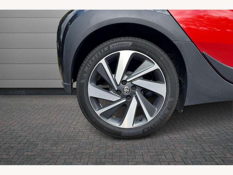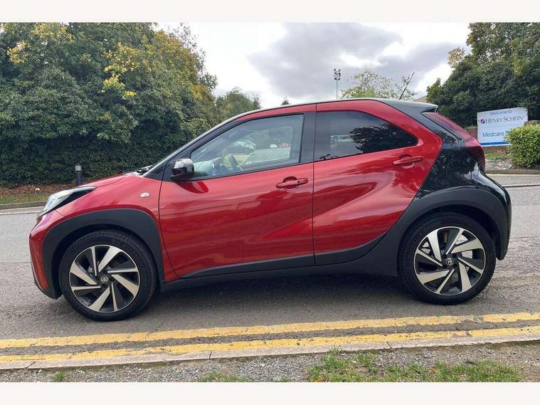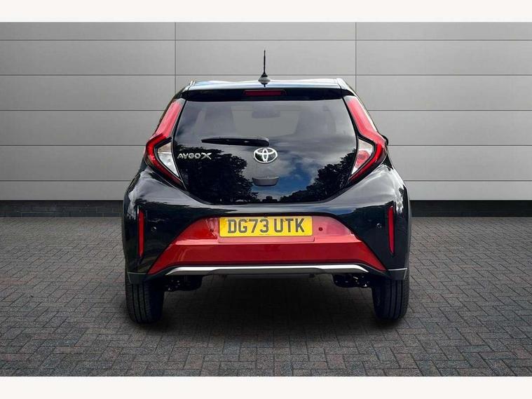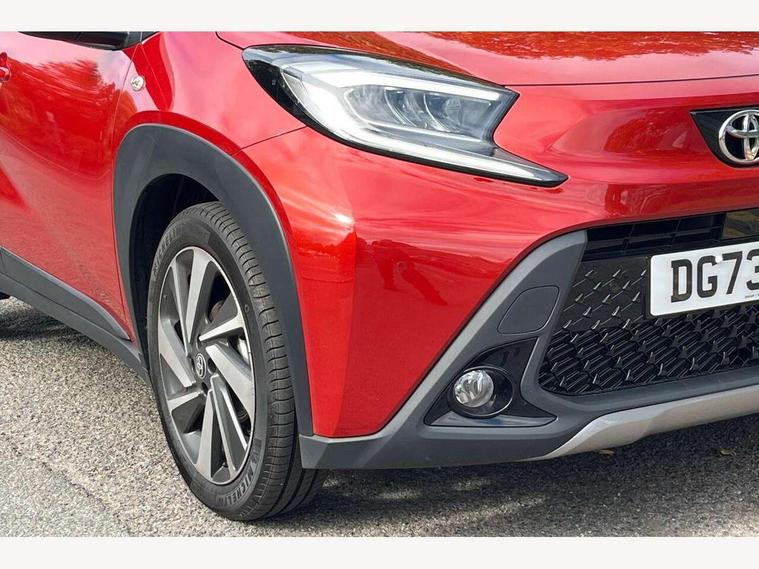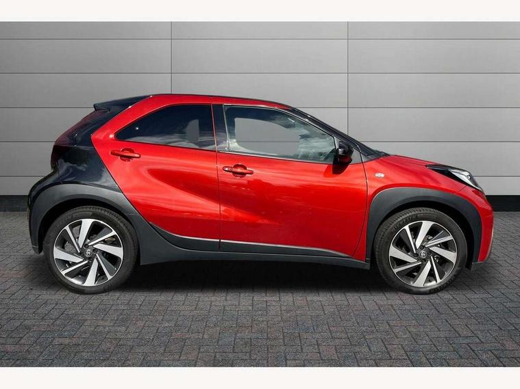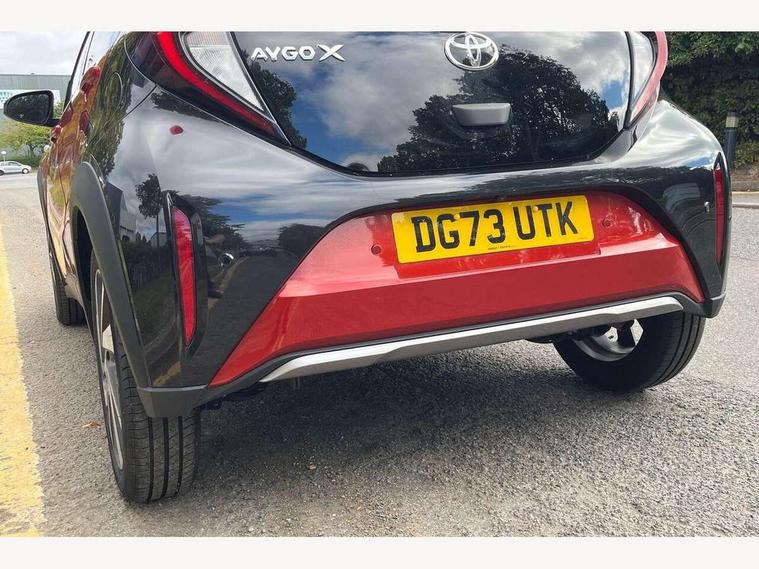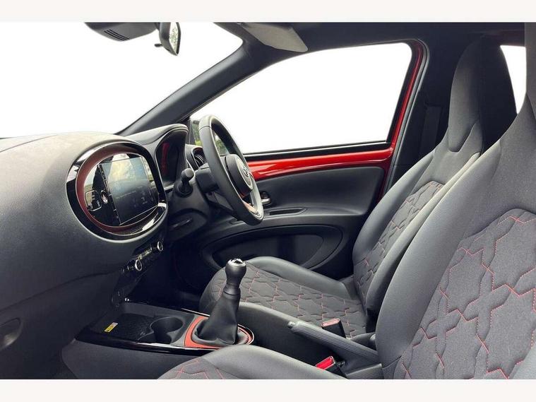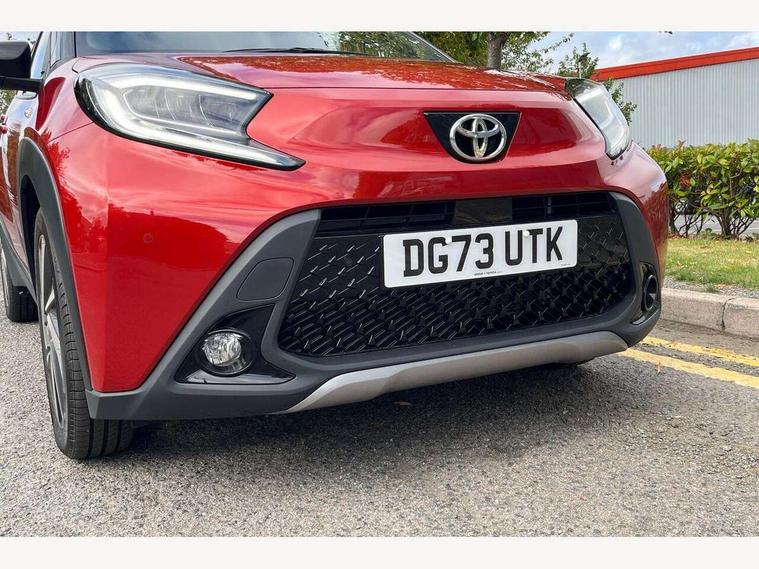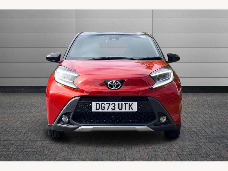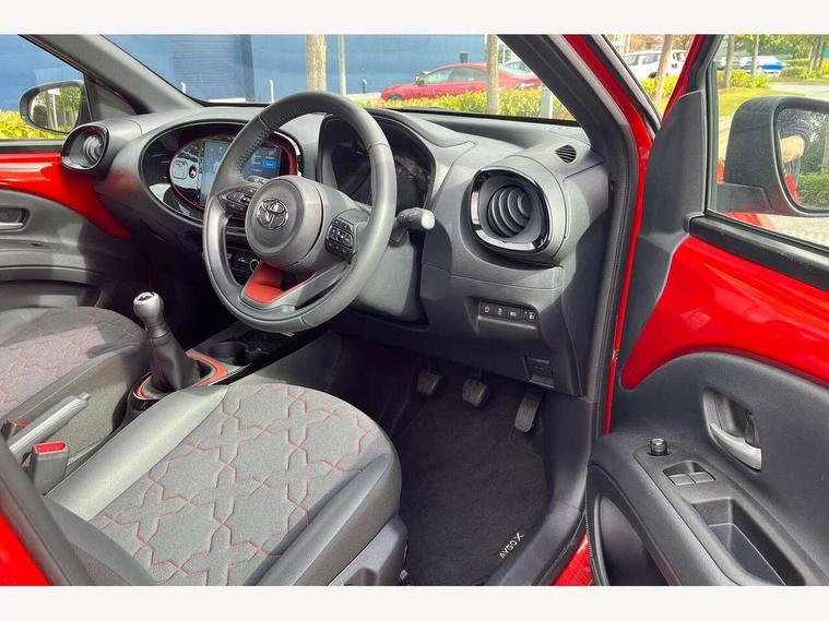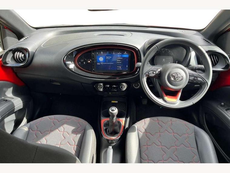 4.2" TFT colour screen, Adjustable speed limiter, Analogue speedometer, Bluetooth connectivity, Digital tachograph, Driver attention alert system, eCall emergency call system, Electric power steering, Front and rear parking sensors with auto brake, Intersection turn assist, Key reminder warning, Noise reduction kit, Pre collision system with emergency steering assist, Remote boot door release on key, Reversing camera with static guide lines, Smart entry and push button start, Smart phone integration with Apple car play/Android Auto, Speed limit display, Start and stop, Wireless charger, Vehicle Stability Control (VSC), 10.5" HD multimedia display touch screen with Toyota smart connect, 4 speakers, DAB digital audio broadcast, USB connector, Auto headlights, Auto wipers, Automatic headlights cut-off, Automatic high beam On/Off switch, Bicycle towing hook, Black contrast roof, Black fog light surrounds, Black side protection mouldings, Black wheel arch mouldings, Body colour door handles, Body coloured front bumper, Boot door scuff plate, Eclipse black rear bumper, Electric heated door mirrors, Follow me home headlights, Front and rear underruns in silver, Front fog lights, Front power windows, Gloss black door mirrors, Gloss black upper front grille, Headlight cut-off reminder, LED daytime running lights guide, LED front light guide, LED High mounted stop lamp, LED projector headlights, Manual day/night rear view mirror, Manual headlight levelling, Pagoda roof, Power adjustable door mirrors, Power back door, Privacy glass, Rain sensor, Rear combination lights LED bulb type, Rear side wing doors, Rear windscreen defogger, Rear windscreen wiper, Remote hazard lights system, Short antenna, Variable intermittent windscreen wipers, 12v power outlet - front, 2 seat bench in 2nd row, 3 spoke leather steering wheel, 50/50 split folding rear seat, Adhesive roof headlining, Adjustable speed limiter switch on steering wheel, Audio and telephone switches on steering wheel, Auto air conditioning, Black roof lining, Body colour satin anodised insert on steering wheel, Boot light, Centre room light, Chrome interior door handles, Chrome surround on air conditioning buttons, Clean air filter, Console box storage, Floor mats, Front and rear cup holders, Front head rest deco art, Front head restraints, Height adjustable driver seat, Intelligent adaptive cruise control switch on steering wheel, ISOFIX child restraint system on rear seats, Lane departure alert switch on steering wheel, Leather gearshift knob, Light blue ambient lighting in centre console, Manual tilt steering wheel, Manually reclining and sliding driver seat, Manually reclining and sliding front passenger seat, Multimedia switches on steering wheel, Partial synthetic leather upholstery, Pollen filter, Rear door pockets, Rear head restraints, Satin silver insert on gear shift knob, Single compartment glovebox with lights, Single front passenger seat, Soft tonneau cover, Sun visors with mirror on driver and passenger side, Voice recognition switch on steering wheel, Toyota safety sense pack - Aygo X, Anti lock braking system + Electronic brake force distribution, Child safety door lock, Emergency brake light signal (EBS), Hill start assist control (HAC), Passenger airbag on/off switch, Seat belt reminder for front and rear seats, Supplement restraints system (SRS) - 6 airbags, Traction control, Tyre pressure warning system, Immobiliser, Remote power door locks, Black wheel centre caps, Tyre repair kit,