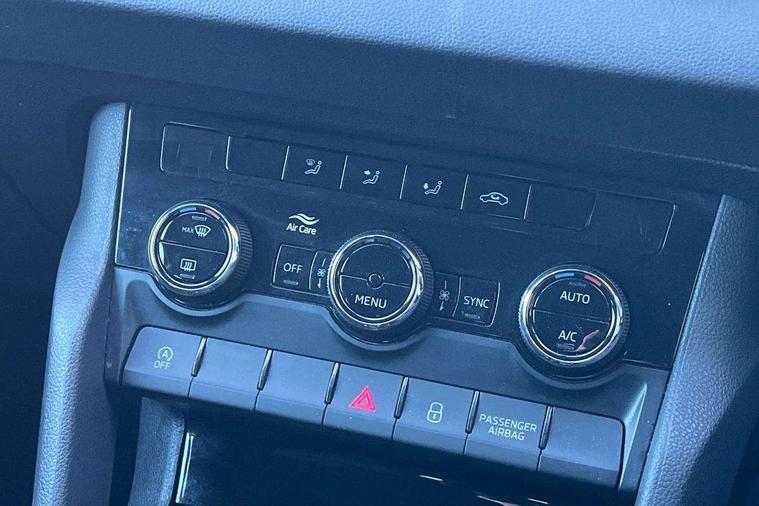 Care connect, Driver alert system, Driver fatigue sensor, Driver profile selection, Electro-mechanical PAS, Outside temperature gauge, Service interval indicator, SmartLink + wireless for Apple and wired for Android, Start/stop system with regenerative braking, USB C Port x 2 in front centre console, WLAN, DAB radio with Bluetooth, USB connection, Acoustic glass, Aero front windscreen wipers with intermittent function, Automatic headlight control system, Black electric window control buttons, Body colour door mirrors and handles, Body coloured bumpers, Electric front and rear windows with child proof lock, Electrically adjustable heated folding and auto dimming door mirrors, Heated rear windscreen, LED rear lights with high functionality, Light assistant (coming/leaving home/tunnel light), Privacy glass, Safety reflectors on front doors, Third brake light, 1.5 litre bottle holders in driver and front passenger door panels, 12V socket in boot, 12v socket in front centre armrest with storage compartment and rear air vents, 2 Folding hooks and nets in boot, 2 Front readings lights for driver and passenger, 3 rear height adjustable headrests, 4 foldable roof handles with rear coat hooks, 4 lashing points on luggage floor, Backrest release, Cargo elements in boot, Chrome inner door handles, Driver and passenger seats height adjust, Folding tables on the front seat backrests, Front head restraints, Front seat and rear pockets, Height adjustable front three point seats belts with tensioners, Height/reach adjust steering wheel, Ice scraper, Illuminated and cooled glovebox, Illuminated luggage compartment, Isofix child seat preparation outer rear, Manual lumbar support for front seats, Net programme in boot, Pen holder, Pollen filter, Rear boot cover, Rear reading lights, Rear seats fixed folding and divided 60:40, Safety vest holder, Storage box in upper central dashboard closed, Sunvisors with illuminated vanity mirrors, Umbrella under passenger seat, Airbags - Front side, head, knee and curtain, Automatic door unlocking in case of crash, Automatic fuel cut off in case of crash, Driver airbag, Electronic parking brake with auto hold function, Emergency rear braking signal, ESC including ABS, MSR, ASR, EDS, HBA, DSR, RBS, MKB and traction control, Front assist radar scanning of the space in front of the car with automatic braking, Hill hold control, Passenger airbag with switch-off function, Pedestrian monitor, Seatbelt reminder signalisation and pretensioner for all seats, Three point seatbelts rear, Two tone horn, Tyre pressure display, Tyre pressure monitor, Alarm with interior monitoring, back up horn and tilt sensor with safe function, Electronic engine immobiliser, Remote central locking with 2 remote folding keys, Chrome framed air vents, Storage on wheel cover,