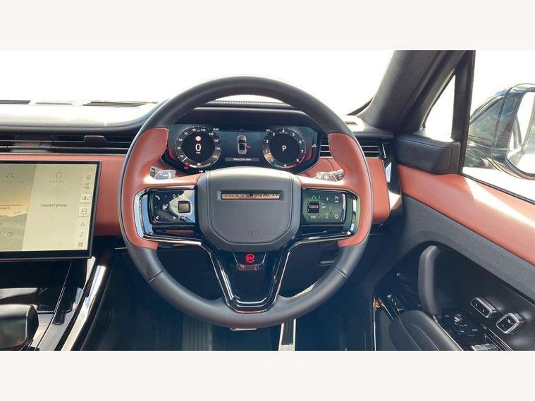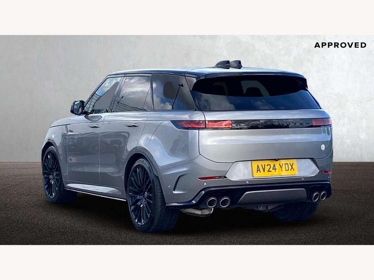 13.1" Touchscreen, 3D 360 degree surround camera with wade sensing, Adaptive cruise control with steering assist, All wheel steering, Android Auto, Apple car play, Blind spot assist, Bluetooth connectivity streaming, Configurable programs, Driver condition response, Eco mode, Electric power assisted steering (EPAS), Front and rear parking aid, Head up Display, Interactive Driver display instrument cluster, Lane departure warning system, Lane keep assist, Park assist, Powered gesture tailgate, Push button start, Rear collision monitor, Rear traffic monitor, Remote, Traffic sign recognition with adaptive speed limiter, Trip computer, Wireless device charging with phone signal booster, 6D Dynamics, 8 speed automatic transmission, Adaptive dynamics, Adaptive off-road cruise control, All wheel drive system, Automatic access height, Electronic active differential with brake torque vectoring, Single speed transfer box, Terrain Response 2, DAB Radio (Digital Audio Broadcasting), Incontrol protect - SOS emergency call with automatic collision detection, optimised assistance call and Incontrol remote app essential, Meridian Signature Sound system, Pivi pro connected, USB/aux input socket, Adaptive brake lights, Automatic headlight levelling, Automatic headlights, Centre high mounted stop light, ClearSight interior rear view mirror, Digital LED headlights with signature DRL and image projection, Electric heated/power fold memory door mirrors with approach lights and auto dimming driver side, Electric windows with one touch open/close and anti trap, Flush deployable exterior door handles, Follow me home lighting, Front and rear recovery eyes, Headlight power wash, Heated rear window, Heated washer jets, Heated windscreen, Illuminated metal treadplates with SV script, Integrated twin tailpipes, Laminated front and rear side glass, LED tail lights, Metal load space scuff plates, Privacy glass, Rain sensing windscreen wipers, Rear animated directional indicators, Rear fog lights, Rear side wing doors, Rear wash/wipe, Remote window closing, Side repeater indicators in mirror, SV bespoke ultra metallic gloss finish paint, SV exterior badge, Trailer stability assist, Winter wiper park position, 16 way electric heated and cooled performance front seats with massage and heated and ventilated power recline rear seats, 3 seat bench in 2nd row, 60:40 seats with power recline and loadthrough, Air quality sensor, Auto air recirculation, Body and soul seat, Bright metal foot pedals, Centre console with armrest, Customer configurable single point entry, Driver's footrest, Easy boot loading, Ebony console door armrests and seatbelts, Edge illuminated paddle shifters, Electric adjustable steering column, Front and rear cupholders, Front door storage space, Front head restraints, Front map lights, Front seat back map pockets, Front stowage pocket, Front/rear passenger grab handles, Gearshift paddles, Heated steering wheel, Isofix child seat preparation, Loadspace cover, Loadspace Hook, Loadspace light, Loadspace mounting provisions, Lockable glovebox, Luggage tie-downs in loadspace, Multifunction steering wheel, Pollen filter, Power socket, Premium cabin lighting, Rear centre armrest, Rear head restraints, Rear ISOFIX, Single front passenger seat, Soft close doors, SV carpet mats, Three 12V accessory power outlets, Upper secondary glovebox, Online pack with data plan - Range Rover Sport, SV Twill Carbon Gloss Fibre Exterior pack - Range Rover Sport, 3 point seatbelts on all seats, Anti-lock braking system (ABS), Brake pre-fill technology, Configurable autolock, Cornering brake control (CBC), DSC - Dynamic Stability Control, EBD - Electronic brakeforce distribution, Electric parking brake, Electronic traction control, Emergency braking, Front seatbelt pretensioners, Front side airbags, Height adjustable front seatbelts, Hill descent control, Hill launch assist, Illuminated seat belt buckles, Low traction launch, Occupant protection assist, Passenger seat occupant detector with front airbags, Power operated child locks, Roll stability control, Seatbelt warning, TPMS (Tyre pressure monitoring system), Immobiliser, Intrusion sensor, Keyless entry, Locking wheel nuts, Perimetric and volumetric anti theft alarm, Remote locking, Satin black ceramic controls, SV Carbon fibre finisher,