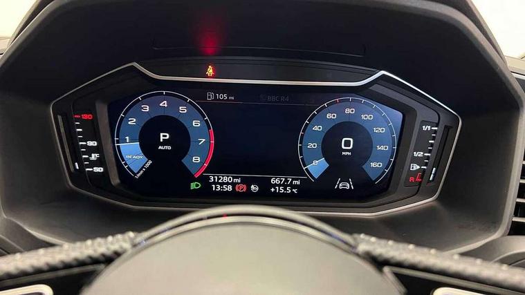 10.25" Digital instrument cluster display classis style instrument dials + speed, odometer, time, outside temperature, telephone menu + fuel level warning, Audi connect safety emergency and service including E-call, Audi drive select - power steering assistance + engine + gear shift 3 preset modes (auto, dynamic, efficiency and an Individual mode), Audi smartphone interface with connect compatible smartphone via USB directly MMI display + Nav, music, third party apps controlled via MMI controller, Automatic start/stop system, Bluetooth interface, Cruise control, Driver's information system, Electromechanical power steering, Lane departure warning system, Rear parking sensor, Service interval indicator, Speed limiter, Voice control system, Washer fluid level indicator, Sports suspension, 1 x SDXC card reader, 1 x USB type C and 1 USB type A charging points, DAB Digital radio, MMI radio plus with 8.8" colour MMI display screen and MMI touch, Auto dimming rear view mirror, Body coloured door mirrors, Door sills with aluminium inlays and S Line logo, Electric front and rear windows, Electrically adjustable, heated, folding door mirrors with integrated LED side indicator, Front side air inlets in grained matt black and C frame in titanium black, Heat insulating glass windscreen and side windows, Heated rear windscreen, LED headlights with LED rear lights + dynamic rear indicators + headlight adjustment and high beam, turning light + LED daytime running lights, Radiator grille and rear diffuser in matt titanium black, Radiator protective grille frame in matt aluminium silver, Rain and light sensors, Rear fog lights, Rear wiper, S line badges on front wings, Side front spoiler lips in grained matt black, 12V socket in centre console with two cup holders, 3 rear seats with headrests, 40:60 Split folding rear seat or folded fully, Black cloth headlining, Driver and passenger seat with manual height adjust with forward and backwards adjustment, Front and rear black floor mats with contrast stitching in fine silver, Front head restraints, Height and reach adjustable steering wheel, ISOFIX child seat mounting for front passenger and outer rear seats including top tether attachment point of outer rear seats, Leather gear knob with aluminium trim, Luggage compartment light with front and rear reading lights, Manually adjustable lumbar support in front seats, Stainless steel pedals, LED interior lighting pack - A1, Luggage compartment pack - A1, S line exterior styling pack - A1 Sportback, 3x3 point rear seatbelts, Audi pre-sense front with pedestrain and cyclist recognition, Brake assist function, Driver and front passenger airbag with front side and head airbags, Electronic Stability Control including ABS, EBD, ASR and EDL, Front and rear seatbelt reminder, Front passenger airbag deactivation switch, Hill hold assist, Seatbelt height adjustment for front seats, Seatbelt monitoring, Tyre pressure warning light, Warning triangle and first aid kit, Anti theft alarm, Anti theft wheel bolts and loose wheel warning, Immobiliser, Remote central locking with 2 foldaway keys, Aluminium trim for control switches, air vents and digital instrument cluster, Silver grey inlays polygon structure in diamond paint finish, Structured grey accent areas including air vents, door handle recesses and centre console in quartz paint finish,