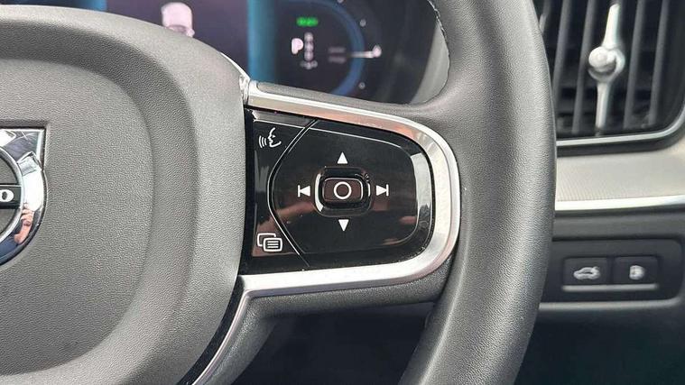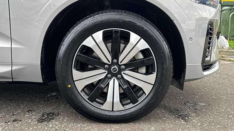 12.3" Progressive Driver Display, 360 degree surround view parking camera with side proximity sensors, 9" centre console touch screen, Adjustable steering wheel force, Apple carplay (wired), Bluetooth handsfree system, Drive mode settings, Driver alert control with lane keeping aid, Driver assistance (pilot assist and adaptive cruise control), Emergency services call system, Front and rear park assist, Google Automotive Services, Oncoming Lane Mitigation, PAS, Service interval indicator, Speed limiter, Speed sensitive steering, Trip computer, Volvo on call with App, Wireless/Inductive Mobile Phone Charging, 3.7 kW monophase on board charger, 7m 10amp charge cable with 3 pin plug and 6m 3 phase 16amp type 2/mode 3 charge cable, 8 speed automatic transmission with start/stop + manual change functions, Dynamic chassis, Electric rear axle drive, Recharging port located in nearside front wing, DAB Digital radio, Low speed exterior sound speaker, Premium Sound by Harman Kardon, dirac unison, dolby pro logic II surround sound, 13 speakers/600W output and fresh air subwoofer, Steering wheel remote infotainment controls, Adaptive brake lights with high level LED brake lights, Auto dimming interior + exterior mirrors, Automatic headlight levelling system, Automatic LED Headlights + Active high beam incorporating daytime running lights, Electric adjustable/heated/auto power folding door mirrors, Electric front+rear windows, Heated front windscreen, High gloss black door mirrors and window surround, High gloss black front and rear bumper decoratives, High gloss black mesh front grille with high gloss black surround, Home safe and approach lighting, Integrated roof rails in high gloss black, Power glass tilt and slide panoramic sunroof with sun curtain, Puddle lights, Rain sensor with automatic windscreen wiper activation, Rear side wing doors, Rear wiper, Roof antenna, Roof spoiler, Tinted windscreen, Visible VIN plate, 12V socket in front tunnel console and luggage compartment, 2 zone electronic climate control with Clean zone air quality system and pollen filter, 3 seat bench in 2nd row, A-pillar parking ticket holder, Air purifier particulate matter (PM) 2.5 filter, B Pillar ventilation, Bright metal luggage threshold, Centre console cupholders and storage, Charcoal floor mats, Front and rear courtesy lights, Front and rear door pocket illumination, Front cupholder illumination, Front footwell illumination, Front reading lights, Front seat cushion extensions, Glovebox compartment with illumination, Head restraints for all seats, Heated front seats, Heated steering wheel, Height/reach adjustable steering column, Illuminated luggage compartment, Illuminated vanity mirrors + ticket holder, ISOFIX attachment on outer rear seats, Load cover, Load protection net, Multi directional lumbar support, Power driver seat with memory + exterior mirrors memory, Power height adjustable passenger seat, Rear armrest with cupholder, Rear footwell and front and rear side step illumination, Rear seat concealed storage, Recharge aluminium tread plates, Single front passenger seat, Tailgate illumination and ambient door lighting, Underfloor stowage compartment, Versatile split folding rear seat - 60/40, 5 three point seatbelts, City safety with steering support with Pedestrian + cyclist + front collision warning with full auto brake and rear auto brake, Drivers knee airbag, Dual stage driver/passenger airbags, Electronic parking brake with auto hold, First aid kit, Front seats SIPS airbags, Hill descent control - Off-road drive mode, Hill start assist, IC (Inflatable Curtains) - Full Length, Passenger airbag cut-off device, Power child locks on rear doors, Road sign information display, Run off Road Mitigation, Run off Road Protection, Seatbelt reminder and pretensioners, SIPS (Side Impact Protection System), Slippery road and hazard light alert, Stability and Traction Control with Spin control, Engine Drag Control and Corner Traction Control, Tyre pressure monitoring system, Vehicle deceleration control with Anti-lock Brake System, Electronic Brake Distribution and Emergency Brake Assist, Warning triangle, WHIPS whiplash protection system - front, Anti-theft alarm including immobiliser/volume sensor + level sensor, Care key with user defined top speed, Key integrated remote control central locking + fuel flap with deadlocking system and auto open/close power windows, Keyless Drive (includes Keyless Entry and Keyless Start) with Handsfree Tailgate Opening/Closing, Locking wheel nuts, Private locking for tailgate, Tyre sealant kit + 12v compressor,