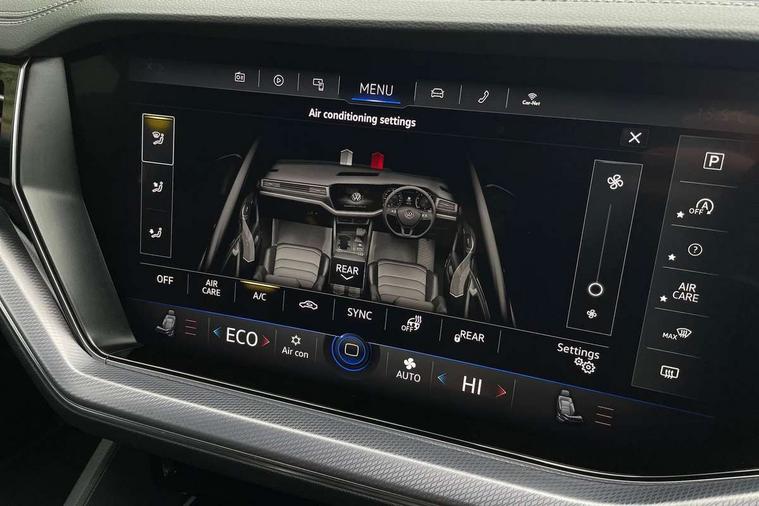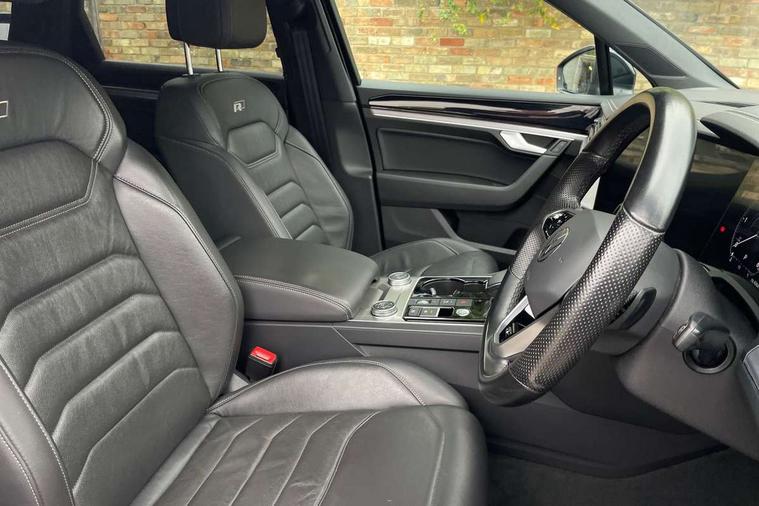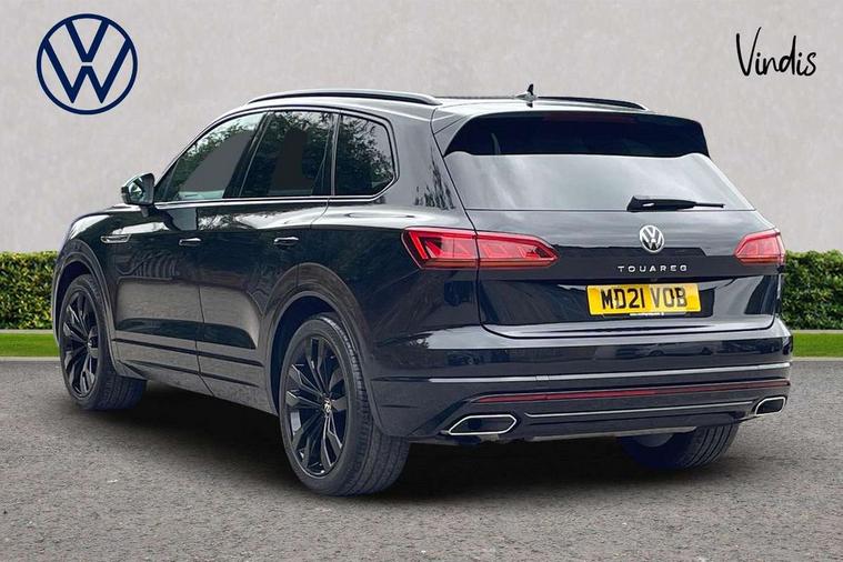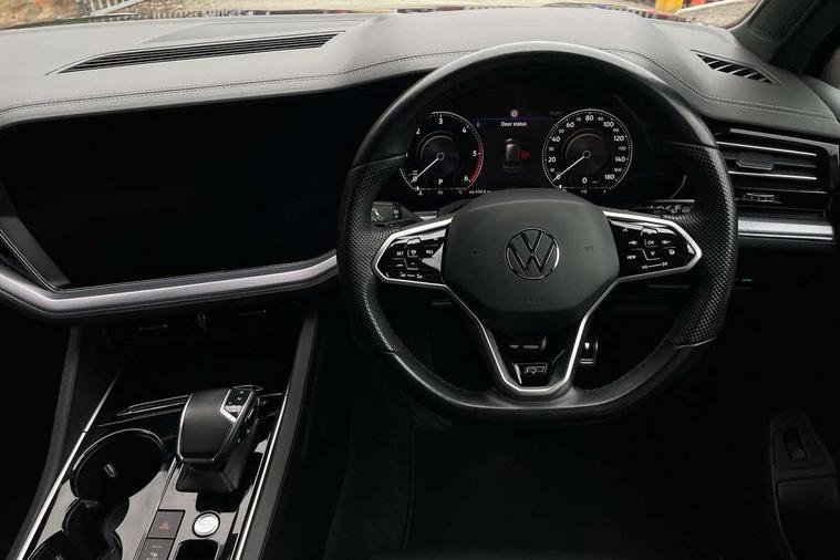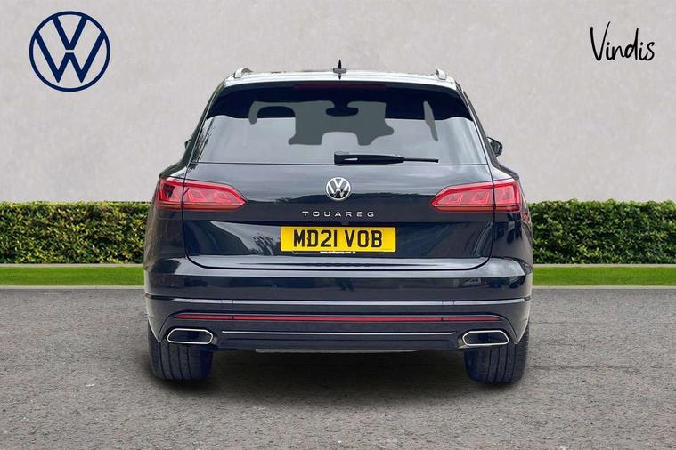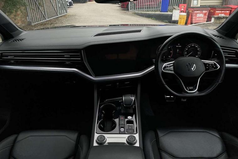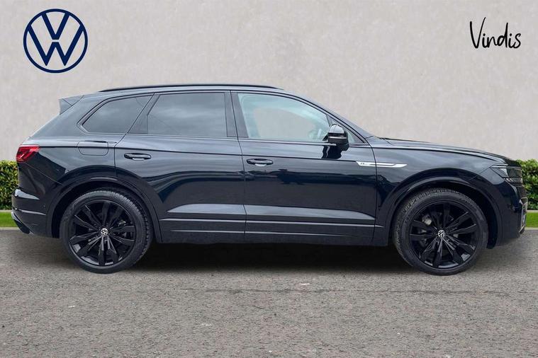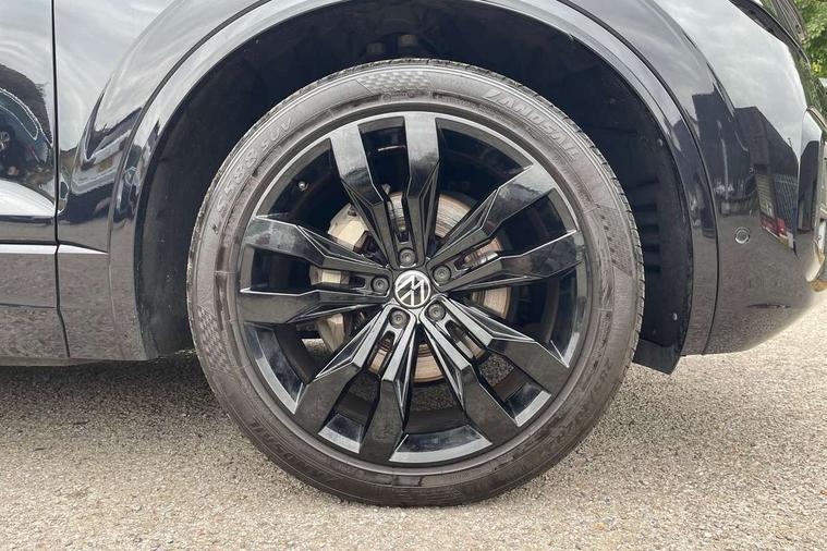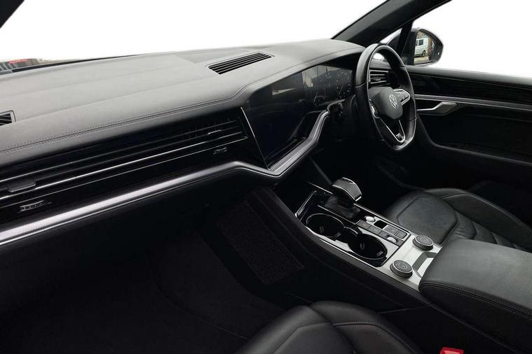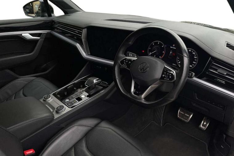 2D/3D map view, ACC - Adaptive cruise control with front assist, forward collision warning, distance monitoring, city emergency brake and speed limiter, Apple car play/Android Auto, Audible and visual fatigue detection system, Bluetooth hands free telephone connection, Car information display, Drive select with Damper control, Driver alert system, Dynamic road sign display camera controlled system with visual warning for traffic and road signs, eCall emergency system, Fully electric tailgate + keyless entry and start, Instrument cluster, MirrorLink, Multifunction camera with lane assist, Multifunction computer premium with 7" colour display, One touch indicators with repeat function, Service interval indicator, Speed sensitive power steering, Start/stop system with regenerative braking, Tailgate power latch, Think blue trainer driver tips and journey analysis, Traffic sign recognition, Voice control system, Wireless Smartphone charger, Torsen limited slip differential, DAB Digital radio, Dynamic navigation based on TMC+, Gesture control for infotainment system, Multi device interface (MDI) with illuminated USB-C connection, Music playback - MP3, WMA and AAC files, SD card slot, Simultaneous pairing of 2 compatible mobile devices, SMS functionality - read, compose and send SMS messages using touch-screen display, Title and cover art display, Volkswagen media control, Adaptive low beam for urban and motorway use, Auto dimming rear view mirror, Automatic coming/leaving home lighting function, Automatic headlights, Black anodised roof rails, Black door mirrors, Black rear diffuser, Black side window surrounds, Black upper and lower grille louvres extending into headlights and radiator grille, Body colour door handles, Body coloured wheel arches, C signature gloss black front air intake, Chromed tailpipe on the left and right integrated in the bumper with trapezoid design, Dusk sensor, Dynamic headlight range control, Electric front tilt/slide panoramic sunroof and fixed rear sunroof, Electrically power adjustable, heated, folding, auto dimming, front passenger exterior door mirror lowering function, Front and rear electric windows, Galvanised body, Gloss black finish B pillar, Gloss black rear diffuser, Headlight washers, Heat insulating darkened glass in side and rear windows, Heated windscreen washer jets, IQ.Light-LED matrix headlight, daytime running light with dynamic cornering light and indicator, LED rear fog light, LED rear number plate lights, Plastic scuff plates in door apertures, Poor weather light, Puddle lights, Rain sensor, Rear wiper, 12V socket in front and rear centre console and boot, 2 Coat hooks on B pillar, 3 rear head restraints, 3 spoke sport heated leather multi-function sports steering wheel with gear shift paddles - generation 2, 4 way adjustable front head restraints, 4 way electric lumbar support for driver and front passenger, 4 zone climate control, 40:20:40 split folding slide/recline rear seat, B pillar vents, Black lower edge of door extending sills, Branded points of interest, Double sun visor for drivier and passenger with LED illuminated vanity mirrors, Electric luggage compartment cover, Folding rear centre armrest with 2 cupholders, Front + rear carpet mats, Front centre armrest with storage box, Gear shift indicator, Height/reach adjust steering wheel, Illuminated air conditioned glovebox, Isofix preparation for 2 rear child seats, Jack and tool kit, Leather trimmed gear knob with gloss black inlay/aluminum trim, Leatherette door trim, LED luggage compartment lighting, Load through provision, Luggage compartment with load lashing rings, Plastic loading edge protection, Rear seat remote release levers, Soul black headlining, Stainless steel pedals, Innovision cockpit pack - Touareg, 3 point front seatbelts with pre-tensioners, ABS, Active bonnet, Automatic post collision braking system, Curtain airbags, Driver/Front Passenger airbags, EBD + Brake Assist, EDL, Electronic parking brake with auto hold, ESC with ASR, Front seat side impact airbags, Hill descent control, Hill start assist, Passenger airbag deactivate switch, Seatbelt warning lamp and buzzer, Three 3 point rear seatbelts, Two tone horn, Volkswagen roadside assistance, Warning triangle and first aid kit, Alarm with interior monitoring in cab, backup horn and towing protection, Child security locks for front and rear doors, Electronic engine immobiliser, Remote central locking, Black decorative trims on the side windows, High gloss black centre console,