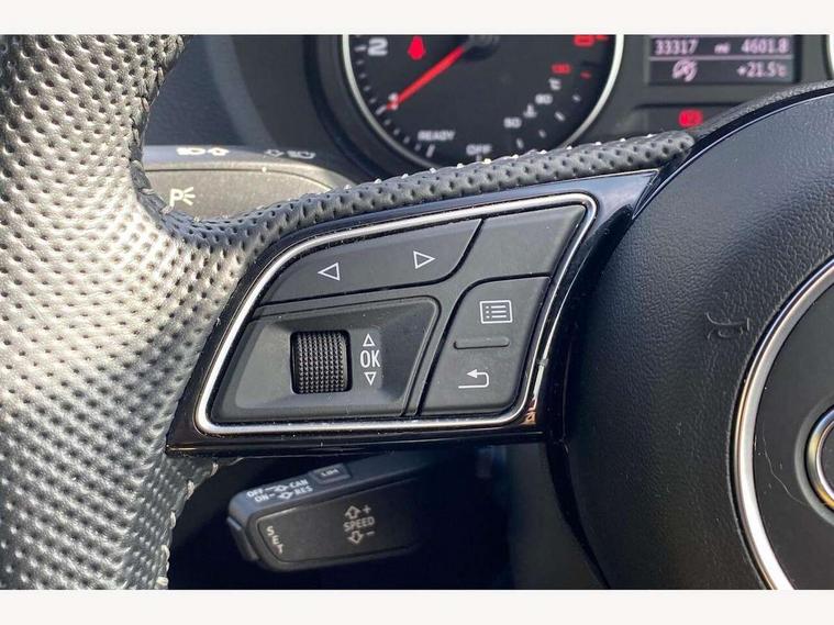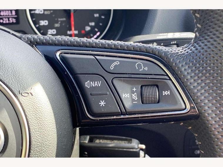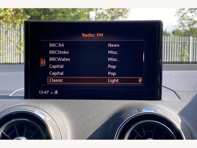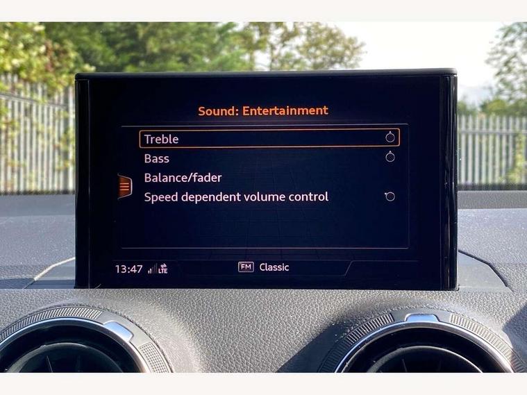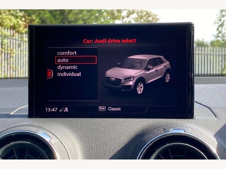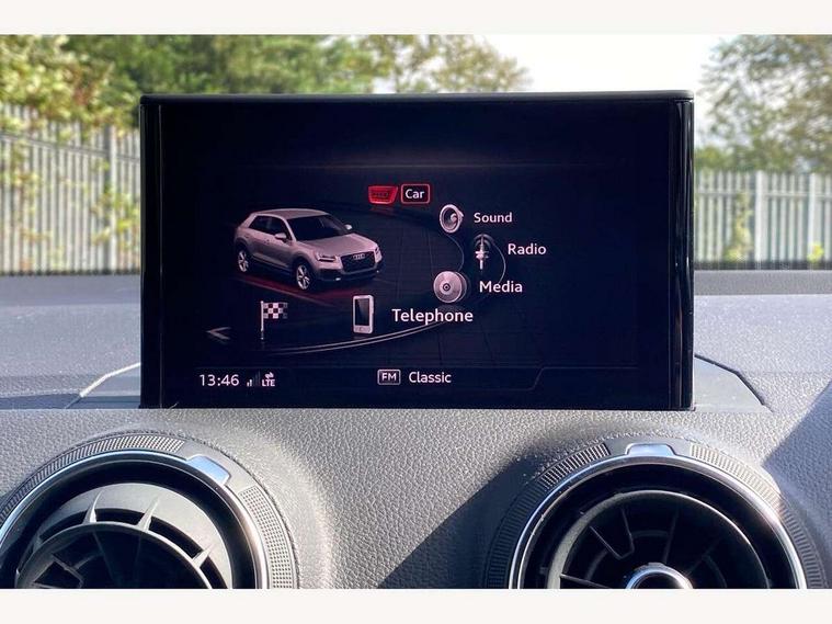 Audi drive select, Audi smartphone interface, Automatic start/stop system with recuperation, Bluetooth interface includes bluetooth audio streaming, Cruise control, MMI - Multi Media Interface control system, MMI SD card integrated nav with 3D map display, dynamic route guidance with TMC, MMI search, natural voice recognition and myAudi special destinations, Power operated tailgate, Progressive steering, Service interval indicator, Dynamic suspension, 2 x SDXC card reader, Audi music interface - apple iPod, apple iPhone, USB storage media, compatible MP3 players, 2 x USB charging points and 1 x Aux-in, CD Drive, DAB digital radio and AM/FM radio, MMI radio plus with 7" colour MMI screen and MMI controller, Black window trims, Bumper in full body colour paint finish, Chrome exhaust tailpipe, Electrically adjustable and heated door mirrors with integrated LED side indicators, Front and rear electric windows, Front underbody guard and rear diffuser trim in selenite silver, Front windscreen with grey tinted sunband, Headlight washers, Interior mirror, LED headlights with LED rear lights + dynamic rear indicators, LED indicator lights, Manual folding door mirrors, Rain and light sensors, Rear wiper, S Line badges on the front wings, S Line body styling - front and rear bumpers, side skirts, radiator grille, rear diffuser insert and front air intakes, 60/40 split folding rear seat bench, Black cloth headlining, Floor mats with contrast stitching, Front centre armrest, Front headrests, Front sport seats with S embossed logo, Height/reach adjust steering wheel, Illuminated door sill trims with S logo, ISOFIX child seat mounting for front passenger with airbag deactivation and outer rear seat including top tether attachment point for outer rear seats, Manual seat adjustment including seat height adjustment for front seats, Stainless steel pedals, Storage compartments - Glovebox, cupholder compartment in centre console, storage compartment in rear centre console, front and rear door pockets, Three rear headrests, Non smoking pack - Q2, 3x3 point rear seatbelts, 6 airbags - Front, curtain and front side airbags, Electromechanical parking brake, Electronic stabilisation control including ABS, ASR and EDL, Extended and proactive pedestrian protection, Hill hold assist, Multi collision brake assist, Pre-sense front with pedestrian recognition, Seatbelt monitoring, Tyre pressure warning light, Warning triangle and first aid kit, Anti theft alarm, Anti theft wheel bolts, Central locking system with remote control key, Electronically operated child locks, Aluminium interior element,