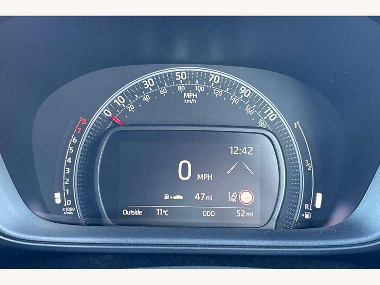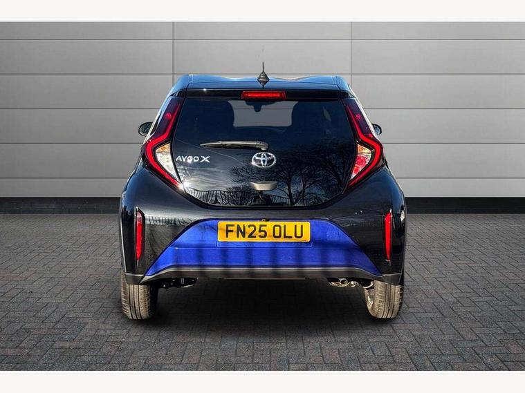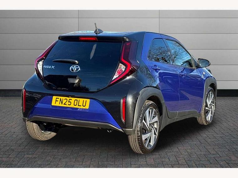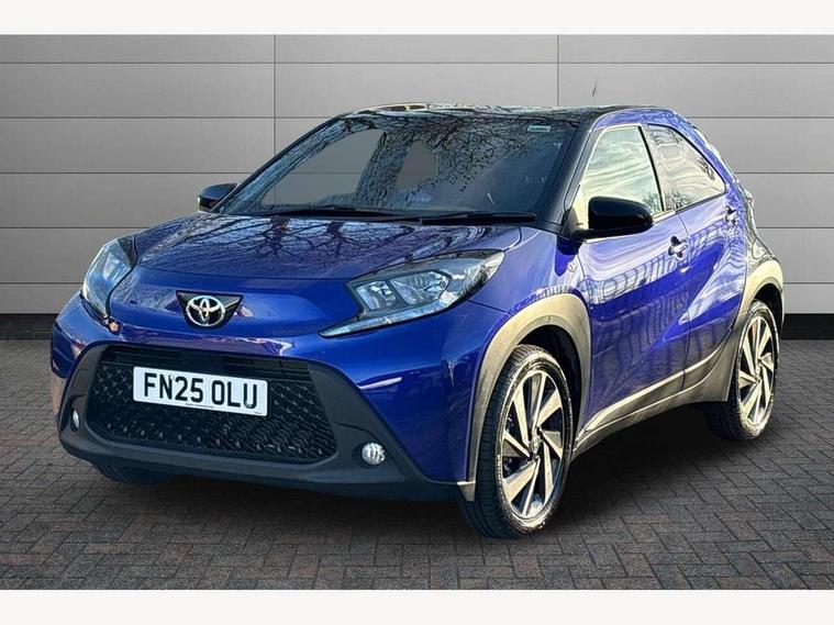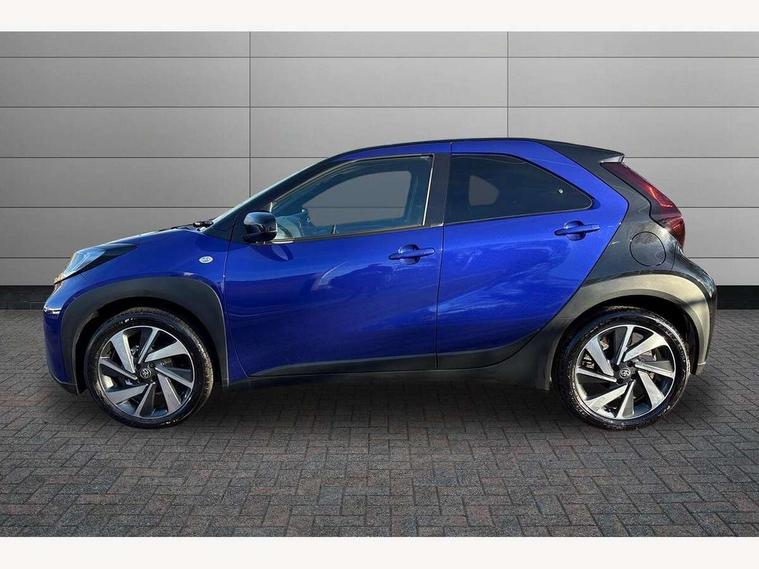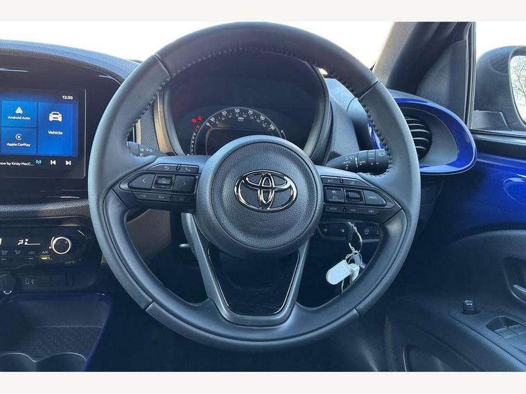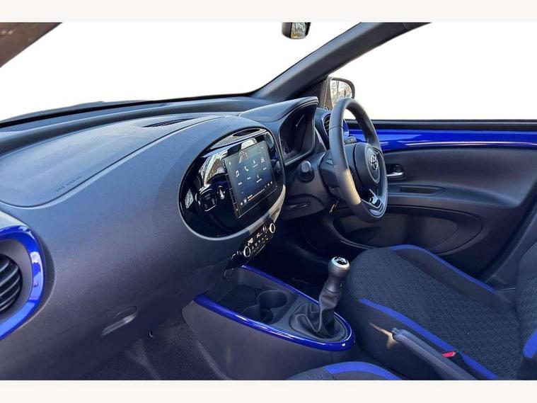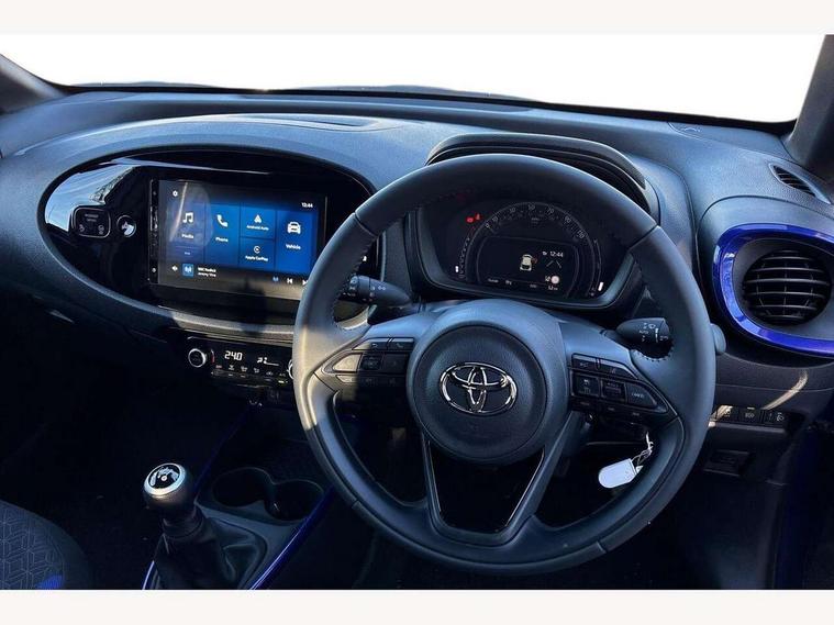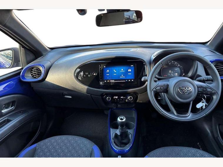 4.2" TFT colour screen, Adjustable speed limiter, Analogue speedometer, Bluetooth connectivity, Digital tachograph, Driver attention alert system, eCall emergency call system, Electric power steering, Intersection turn assist, Key reminder warning, Noise reduction kit, Pre collision system with emergency steering assist, Reversing camera with static guide lines, Smart phone integration with Apple car play/Android Auto, Speed limit display, Start and stop, Vehicle Stability Control (VSC), 4 speakers, 9" HD multimedia display touch screen with Toyota smart connect, DAB digital audio broadcast, USB connector, Auto headlights, Auto wipers, Automatic headlights cut-off, Bicycle towing hook, Black contrast roof, Black side protection mouldings, Black wheel arch mouldings, Body colour door handles, Body coloured front bumper, Boot door scuff plate, Eclipse black rear bumper, Electric heated door mirrors, Follow me home headlights, Front fog lights, Front power windows, Gloss black door mirrors, Gloss black upper front grille, Headlight cut-off reminder, LED daytime running lights, LED front light guide, LED High mounted stop lamp, Manual day/night rear view mirror, Manual headlight levelling, Pagoda roof, Power adjustable door mirrors, Power back door, Privacy glass, Projector halogen headlights, Rain sensor, Rear combination lights LED bulb type, Rear side wing doors, Rear windscreen defogger, Rear windscreen wiper, Short antenna, Variable intermittent windscreen wipers, 12v power outlet - front, 2 seat bench in 2nd row, 3 spoke leather steering wheel, 50/50 split folding rear seat, Adhesive roof headlining, Adjustable speed limiter switch on steering wheel, Audio and telephone switches on steering wheel, Auto air conditioning, Black insert on steering wheel, Black roof lining, Boot light, Centre room light, Chrome interior door handles, Chrome surround on air conditioning buttons, Clean air filter, Console box storage in body color, Fabric upholstery, Floor mats, Front and rear cup holders, Front head rest deco art, Front head restraints, Height adjustable driver seat, Intelligent adaptive cruise control switch on steering wheel, ISOFIX child restraint system on rear seats, Lane departure alert switch on steering wheel, Leather gearshift knob, Manual tilt steering wheel, Manually reclining and sliding driver seat, Manually reclining and sliding front passenger seat, Multimedia switches on steering wheel, Pollen filter, Rear door pockets, Rear head restraints, Satin silver insert on gear shift knob, Single compartment glovebox with lights, Single front passenger seat, Soft tonneau cover, Sun visors with mirror on driver and passenger side, Voice recognition switch on steering wheel, Toyota safety sense pack - Aygo X, Anti lock braking system + Electronic brake force distribution, Child safety door lock, Emergency brake light signal (EBS), Hill start assist control (HAC), Passenger airbag on/off switch, Seat belt reminder for front and rear seats, Supplement restraints system (SRS) - 6 airbags, Traction control, Tyre pressure warning system, Immobiliser, Remote power door locks, Black wheel centre caps, Tyre repair kit,