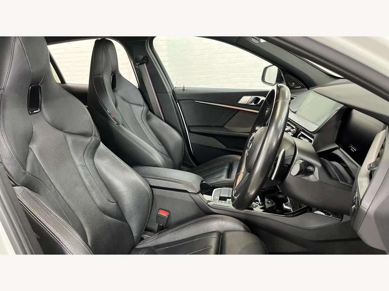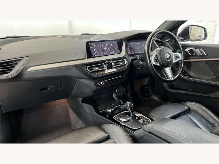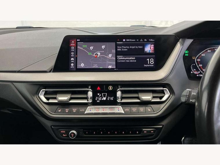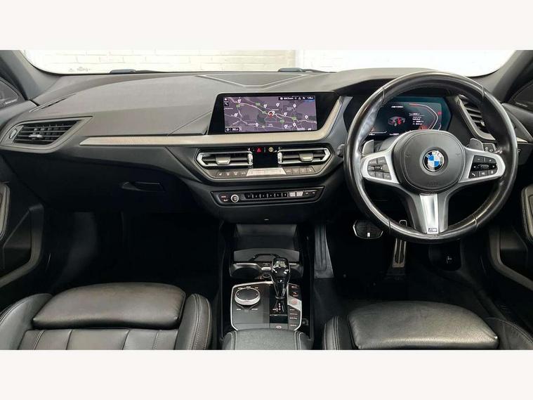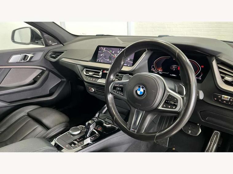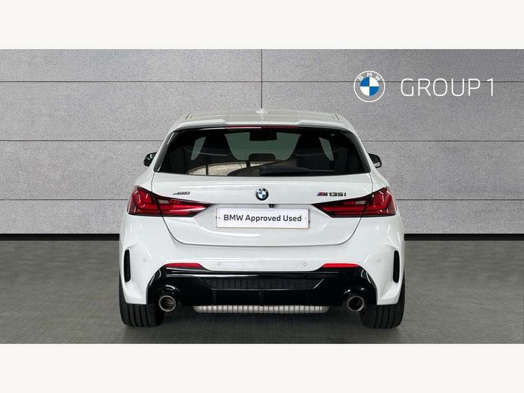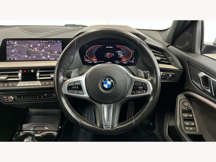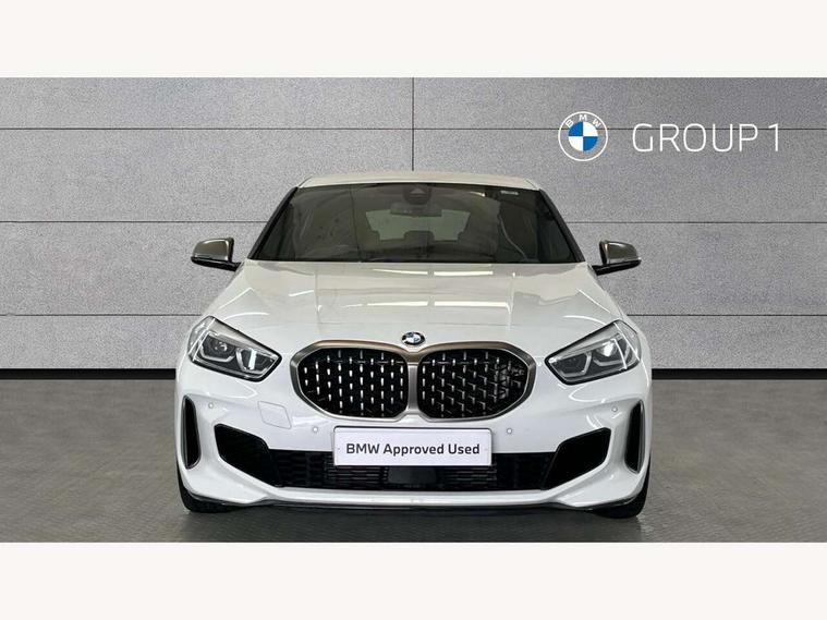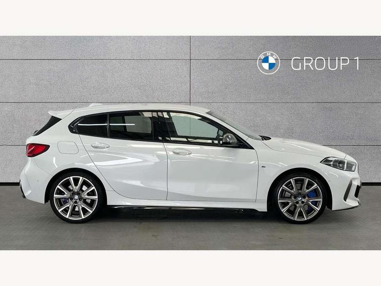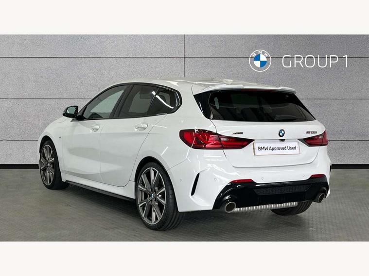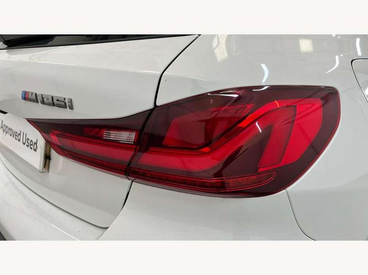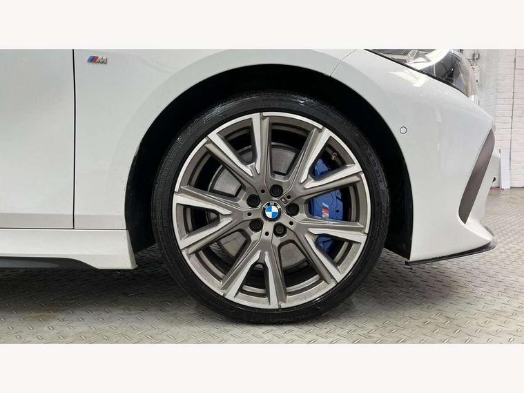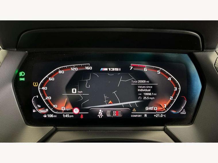 Active guard plus, Attentiveness assist, BMW Live Cockpit Professional sat nav system including 10.25" high resolution display and Intelligent Voice Assistant, BMW Online services, BMW Teleservices, Check Control warning system for monitoring of lights and door/luggage compartment open warning, Eco pro mode, Integrated owners handbook, M Sports steering, On board computer, Optimum shift indicator, Personal Profile, Pull away assistant, Speed limiter, Anti roll bar front and rear, Balancer shaft, Double VANOS, Drive Performance Control, Electronic differential lock, Engine cover with M performance designation, High precision injection, Larger fuel tank capacity (50 litres), Launch control, Petrol Particulate Filter, VALVETRONIC engine management, Bluetooth audio streaming, DAB Digital radio, Auto dimming rear view mirror, Body colour door handles, Cerium grey exterior mirror caps, Direction indicator side lights in exterior mirrors, Electric folding and anti dazzle exterior mirrors, Fading support, Follow me home headlights, Front and rear electric windows with open and close fingertip control, anti trap facility and comfort closing, Front door sill finishers with M135i designation, Green tinted heat protection glazing, Headlight beam throw control, High gloss shadow line exterior trim, High level third brake light, Kidney grille frame in Cerium Grey with Mesh design, LED daytime running lights, Lightweight engineering, M logo designation side in cerium grey, M performance exhaust system, M rear spoiler, Matt black air guide grilles, Matt black roof moulding, B pillar finisher and wheel arch trim, Matt black window frame, Model designation on right side of tailgate, Nearside reverse light in rear light cluster, Rain sensor including auto headlights activation, Rear fog lights, Rear window wiper, Round exhaust system with twin cerium grey tailpipes in left and right split, Shark fin antenna, Visible VIN plate, Welcome lighting, Windscreen wipers with integrated washing jets, 12V power socket in centre console, 2 cupholders in front centre console, 3 rear seat head restraints, 3 spoke M sports design leather steering wheel finished in nappa leather with specific M badge, Anthracite headlining, Anthracite Velour floor mats, Child seat ISOFIX attachment for two outer rear seats and front passenger seat with anchorage points, Conditioned based service, Driver and front passenger seat heating, Driver side folding compartment in instrument panel, Folding rear clothes hook, Folding rear seats, Four grab handles integrated in roof lining, Front and rear door pockets, Front and rear side armrest integrated into door trim, Front armrest foldable with integrated storage compartment, Front M seats, Glove compartment, Height adjustable front head restraints, Manual adjust steering wheel, Multi-function controls for steering wheel, Rear seat backrest with manual 60:40 split folding with 3 top tether clips integrated on rear of seat panels, Storage compartment in centre console, Sun visors with vanity mirrors and insert tab, Two zone automatic air conditioning, Connected pack professional - 1 Series, Extended Lighting pack - 1 Series M135i, Extended storage pack - 1 Series, Interior lights pack - 1 Series, Luggage compartment pack - 1 Series, M Sport exterior styling aerodynamics pack - 1 Series 135i, 2 tone horn, 3 point seatbelts on all seats, front pyrotechnic belt tensioners, stopper and belt force limiters, rear coded belt buckles, Airbags - Front driver and passenger, front and rear head, front side, curtain head protection, Anti lock braking system (ABS) with brake assist, BMW emergency call, Brake drying, Braking readiness, Crash sensor activating central locking release, hazard warning lights, fuel cut off, interior lighting + activation of safety battery terminal clamp, Driver and front passenger seat belt security check, Dynamic stability control + (DSC+), Dynamic Traction Control - DTC, Electrically operated hand brake, Front passenger manual airbag deactivation, M Sport braking system, M sport seatbelt, Rear child proof door locks, Seatbelt warning, Side impact protection, Tyre pressure monitoring system, Warning triangle and first aid kit, Automatic drive away locking facility, Central locking switch for all doors, fuel filler cap and luggage compartment, Deadlocking function system to all doors, Locking wheel bolts, Remote control with integrated key with High-gloss Black inlay and M designation and 1 button for open/ close lock, window, open luggage compartment, Start/stop button with comfort go keyless engine start and auto start stop deactivation button, Thatcham Cat.1 alarm and immobiliser, Contrast stitching on instrument panel, 18" Burnished M double spoke Bi-colour alloy wheels finished in Cerium grey matt - style 556M, BMW mobility system, Reduced rolling resistance tyres,