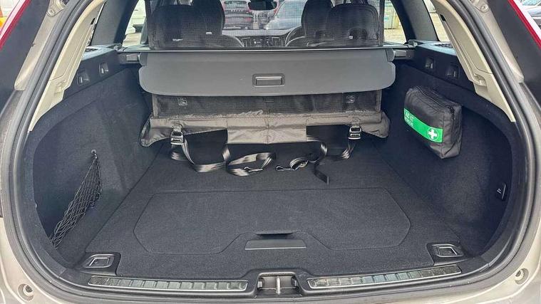 12.3" Progressive Driver Display, 9" centre console touch screen, Adaptive cruise control, Adjustable steering wheel force, Android Auto, Apple CarPlay, Bluetooth handsfree system, Driver alert control with lane keeping aid, Driver awareness - Blind spot information system with steer assist, cross traffic alert with autobrake and rear collision warning and mitigation, E-call, Front and rear park assist, Google automotive services - Enabled entertainment apps, navigation with google maps, voice recognition with google assistant, Information centre, Intelligent speed assistance, Oncoming Lane Mitigation, Power operated tailgate with handsfree opening and closing, Service interval indicator, Speed sensitive steering, Trip computer, Volvo cars services with app, Volvo on call app, Wireless/Inductive Mobile Phone Charging, Automatic transmission with start/stop and manual change functions, Dynamic chassis, DAB Digital radio, High performance sound, 2 x front and rear Type C USB, 10 speakers/220W output, Steering wheel remote infotainment controls, Adaptive brake lights with high level LED brake lights, Auto dimming interior + exterior mirrors, Automatic headlight levelling system, Automatic LED Headlights + Active high beam incorporating daytime running lights, Front aluminium tread plates, Front and rear power windows, Heated front windscreen, High gloss black autofolding heated power door mirrors, High gloss black front and rear bumper deco, High gloss black mesh front grille with high gloss black surround, High gloss black window surround, Home safe and approach lighting, Integrated roof rails in high gloss black, LED front fog lights, Puddle lights, Rain sensor with automatic windscreen wiper activation, Rear side wing doors, Rear wiper, Roof antenna, Roof spoiler, Variable front intermittent wipers, Visible VIN plate, 12V socket in front tunnel console and luggage compartment, 3 Spoke tailored steering wheel with chrome trim, 4 zone electronic climate control with Clean zone air quality system + pollen filter, 60/40 versatile split folding 3 bench rear seats in 2nd row, A-pillar parking ticket holder, Air purifier PM2.5, B Pillar ventilation, Bright metal luggage scuff plate, Centre console storage, Charcoal carpets and floor mats, Extended front seat cushions, Front and rear courtesy and front reading lights, Front cupholders, Front footwell illumination, Front head restraints, Front/rear door pockets and front cupholder illumination, Glovebox compartment with illumination, Heated front seats, Heated rear seats outer positions, Heated steering wheel, Height/reach adjustable steering column, Illuminated vanity mirrors + ticket holder, ISOFIX attachment on outer rear seats, Load cover, Load protection net, Luggage compartment divider with grocery bag holder, Luggage compartment illumination, Luggage compartment load hooks, Multi directional lumbar support, Power driver seat with memory + exterior mirrors memory, Power folding rear headrests, Power height adjustable passenger seat, Rear armrest with cupholder, Rear footwell and front and rear side step illumination, Rear reading lights, Single front passenger seat, Tailgate illumination, Underfloor cargo storage, 5 x 3 point seatbelts, City safety with steering support with Pedestrian + cyclist + front collision warning with full auto brake and rear auto brake, Driver and passenger airbags, First aid kit, Front seats SIPS airbags, Hill start assist, IC (Inflatable Curtains) - Full Length, Passenger airbag cut-off switch, Power child locks on rear doors, Power parking brake with auto hold function, Road sign information display, Run off Road Mitigation, Run off Road Protection, Seatbelt reminder and pretensioners for all seats, SIPS (Side Impact Protection System), Slippery road and hazard light alert, Stability and Traction Control with Spin control, Engine Drag Control and Corner Traction Control, Tyre pressure monitoring system, Vehicle deceleration control with Anti-lock Brake System, Electronic Brake Distribution and Emergency Brake Assist, Warning triangle, WHIPS whiplash protection system - front, 2X Key integrated remote control central locking with deadlocking system and auto open/close power windows, Anti-theft alarm including immobiliser/volume sensor + level sensor, Care key with user defined top speed, Keyless drive includes keyless entry and keyless start, Locking wheel nuts, Private locking luggage compartment, 19" 5 Triple spoke diamond cut/black alloy wheels,