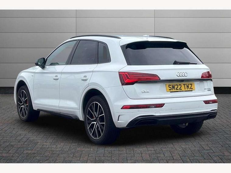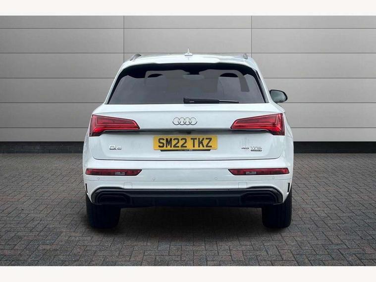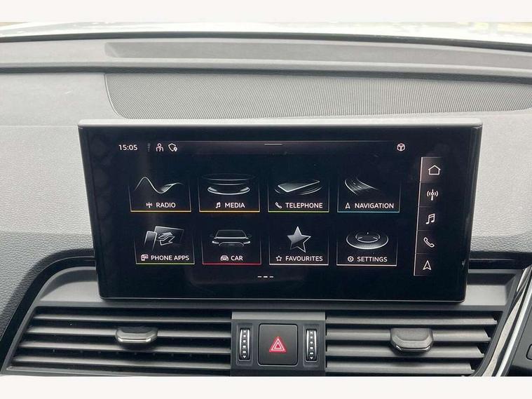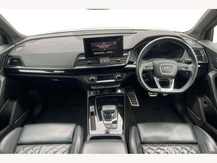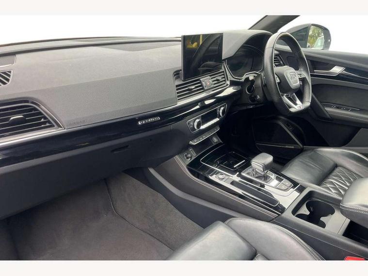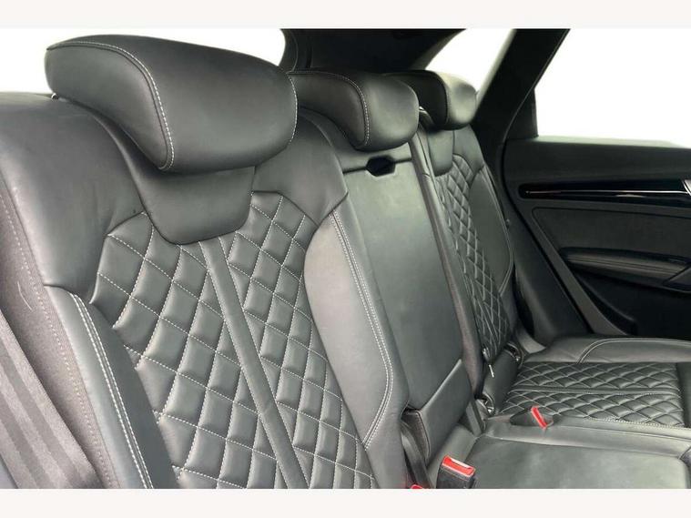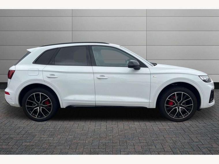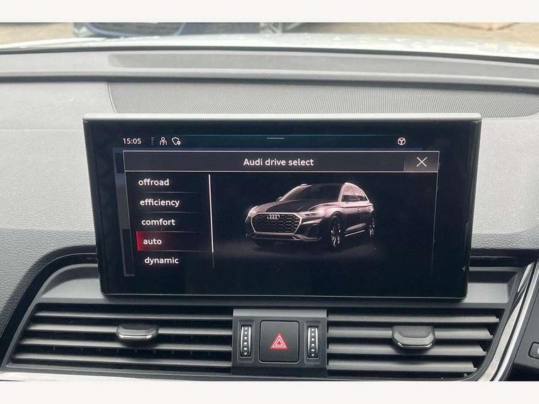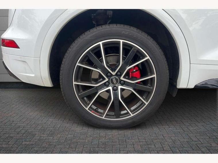 Audi connect safety and service (e-call), Audi connect with Amazon Alexa Integration, Audi drive select, Audi virtual cockpit plus with 12.3" screen and three different layout designs, Audi wireless smartphone interface, Automatic start-stop system with coasting functionality and efficiency programme, Bluetooth interface, Electro - mechanical power assisted steering, MMI navigation plus with 10.1" touch screen, Power tailgate, Reversing camera, Service interval indicator, Voice control system with Audi hotword activation "Hey Audi", Quattro on demand, S line sports suspension, DAB Digital radio, Acoustic windscreen, Audi matrix LED headlights with dynamic front and rear indicators, Audi rings at front and rear in black, Audi rings decal on rear doors, Auto dimming door mirrors, Auto dimming rear view mirror, Automatic headlights and windscreen wipers, Black door mirrors, Black roof rails, Body colour bumpers, Body colour underbody protection, Chrome plated exhaust trims, Daytime running lights, Door sills in Selenite silver, Electric adjustable/heated/folding door mirrors, Front air inlet surrounds in titanium black, Front and rear electric windows, Headlight washers, High gloss black B pillar trims and triangular rear door trim, High level LED brake light, Rear chrome trim strip below lights, Rear privacy glass and rear side windows, Rear side wing doors, Rear wiper, Roof bars, S Line rear spoiler, 2 x USB charging port with aux input socket, 3 rear headrests, 4 way electric lumbar support for driver and front passenger, 40:20:40 split folding 3 rear bench seat in 2nd row with rear centre armrest, Black cloth headlining, Comfort front centre armrest, Contrast stitching on seats, steering wheel and gear lever gaiter, Deluxe 3 zone electronic climate control, Electrically adjustable front seats, Fine Nappa leather upholstery with diamond pattern contrast stitching + front sport seats with S embossed logo, Front/rear floor mats, Gear lever in black leather, Heated front seats, Height adjustable front head restraints, Height/reach adjustable steering column, Illuminated door sill trims with S logo, ISOFIX child seat mounting and top tether, Rear seat bench plus, Removable luggage compartment floor, Single front passenger seat, Stainless steel pedals, Sunvisors with vanity mirrors, Black styling package - Q5 Edition 1, Extended interior upholstery pack - Q5, Extended LED Interior multi coloured Lighting Pack - Q5, 3 point seatbelts on all seats, 6 airbags - Driver, front passenger, curtain and side airbags, Electrically operated child locks on rear doors, Electromechanical parking brake, Electronic stabilisation control including ABS, ASR and EDL, Front and rear brake calipers painted in red, Front passenger airbag deactivation, Hill descent control, Hill hold assist, Multi collision brake assist, Pop-up bonnet for pedestrian protection, Pre sense city, Seat belt force limiter, Seatbelt monitoring, Tyre pressure warning, Warning triangle and first aid kit, Anti theft alarm, Anti-theft wheel bolts, Keyless Go access/ignition system, Remote central locking, Piano black finish inlay,