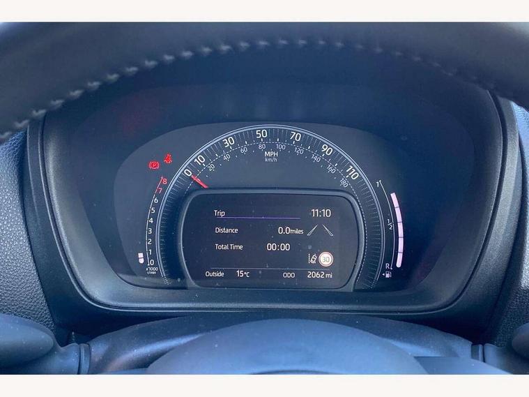 4.2" TFT colour screen, Adjustable speed limiter, Analogue speedometer, Bluetooth connectivity, Digital tachograph, Driver attention alert system, eCall emergency call system, Electric power steering, Intersection turn assist, Key reminder warning, Noise reduction kit, Pre collision system with emergency steering assist, Reversing camera with static guide lines, Smart phone integration with Apple car play/Android Auto, Speed limit display, Start and stop, Vehicle Stability Control (VSC), 4 speakers, 9" HD multimedia display touch screen with Toyota smart connect, DAB digital audio broadcast, USB connector, Auto headlights, Auto wipers, Automatic headlights cut-off, Bicycle towing hook, Black contrast roof, Black side protection mouldings, Black wheel arch mouldings, Body colour door handles, Body coloured front bumper, Boot door scuff plate, Eclipse black rear bumper, Electric heated door mirrors, Follow me home headlights, Front fog lights, Front power windows, Gloss black door mirrors, Gloss black upper front grille, Headlight cut-off reminder, LED daytime running lights, LED front light guide, LED High mounted stop lamp, Manual day/night rear view mirror, Manual headlight levelling, Pagoda roof, Power adjustable door mirrors, Power back door, Privacy glass, Projector halogen headlights, Rain sensor, Rear combination lights LED bulb type, Rear side wing doors, Rear windscreen defogger, Rear windscreen wiper, Short antenna, Variable intermittent windscreen wipers, 12v power outlet - front, 2 seat bench in 2nd row, 3 spoke leather steering wheel, 50/50 split folding rear seat, Adhesive roof headlining, Adjustable speed limiter switch on steering wheel, Audio and telephone switches on steering wheel, Auto air conditioning, Black insert on steering wheel, Black roof lining, Boot light, Centre room light, Chrome interior door handles, Chrome surround on air conditioning buttons, Clean air filter, Console box storage in body color, Fabric upholstery, Floor mats, Front and rear cup holders, Front head rest deco art, Front head restraints, Height adjustable driver seat, Intelligent adaptive cruise control switch on steering wheel, ISOFIX child restraint system on rear seats, Lane departure alert switch on steering wheel, Leather gearshift knob, Manual tilt steering wheel, Manually reclining and sliding driver seat, Manually reclining and sliding front passenger seat, Multimedia switches on steering wheel, Pollen filter, Rear door pockets, Rear head restraints, Satin silver insert on gear shift knob, Single compartment glovebox with lights, Single front passenger seat, Soft tonneau cover, Sun visors with mirror on driver and passenger side, Voice recognition switch on steering wheel, Toyota safety sense pack - Aygo X, Anti lock braking system + Electronic brake force distribution, Child safety door lock, Emergency brake light signal (EBS), Hill start assist control (HAC), Passenger airbag on/off switch, Seat belt reminder for front and rear seats, Supplement restraints system (SRS) - 6 airbags, Traction control, Tyre pressure warning system, Immobiliser, Remote power door locks, Black wheel centre caps, Tyre repair kit,