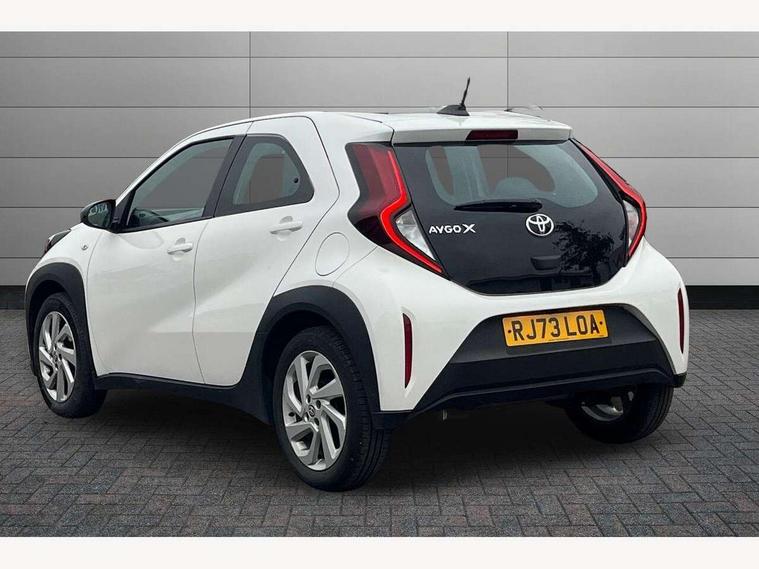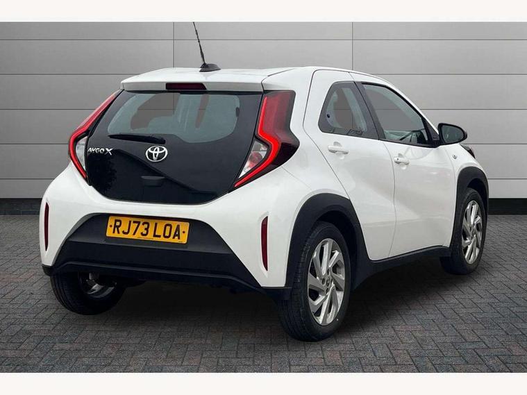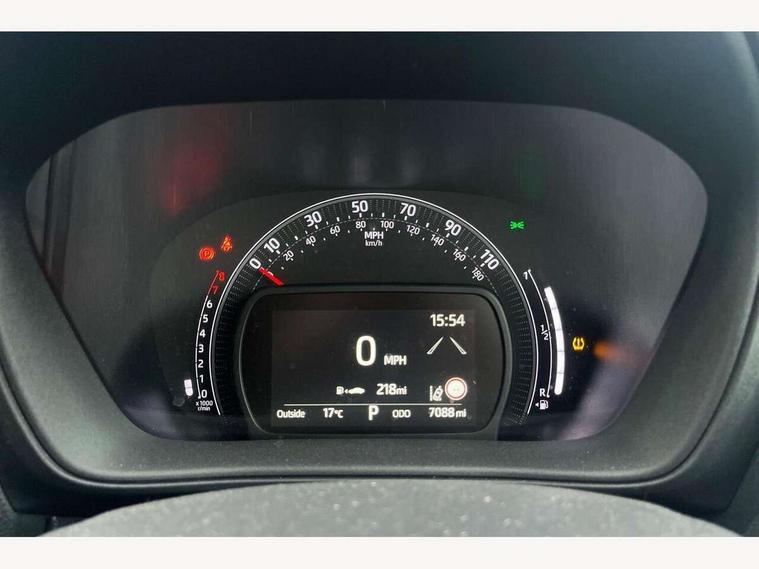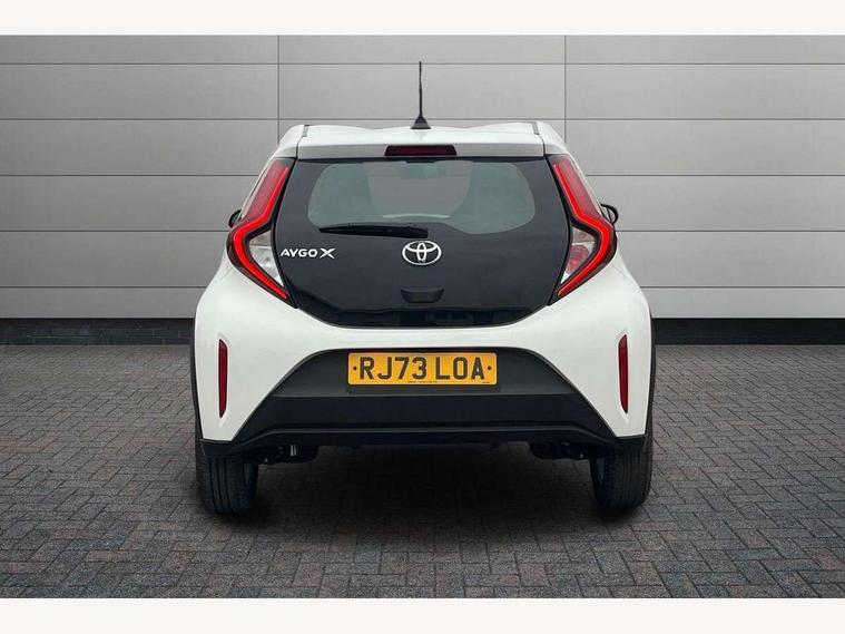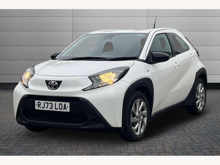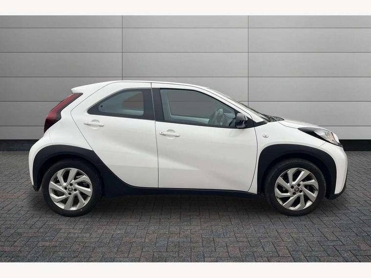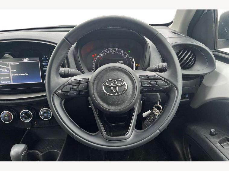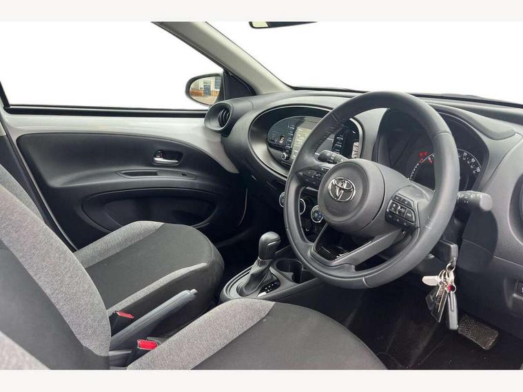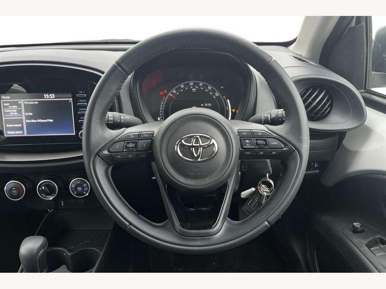 4.2" TFT colour screen, Adjustable speed limiter, Analogue speedometer, Bluetooth connectivity, Digital tachograph, Driver attention alert system, eCall emergency call system, ECO-driving indicator, Electric power steering, Intersection turn assist, Key reminder warning, Noise reduction kit, Pre collision system with emergency steering assist, Reversing camera with static guide lines, Smart phone integration with Apple car play/Android Auto, Speed limit display, Start and stop, Vehicle Stability Control (VSC), 4 speakers, 9" HD multimedia display touch screen with Toyota smart connect, DAB digital audio broadcast, USB connector, Auto headlights, Automatic headlights cut-off, Bicycle towing hook, Black lower front grille, Black rear bumper, Black side protection mouldings, Black upper front grille, Black wheel arch mouldings, Body colour door handles, Body coloured front bumper, Boot door scuff plate, Electric heated door mirrors, Follow me home headlights, Front power windows, Gloss black door mirrors, Headlight cut-off reminder, LED daytime running lights, LED front light guide, LED High mounted stop lamp, Manual day/night rear view mirror, Manual headlight levelling, Pagoda roof, Power adjustable door mirrors, Power back door, Projector halogen headlights, Rain sensor, Rear combination lights LED bulb type, Rear side wing doors, Rear windscreen defogger, Rear windscreen wiper, Short antenna, Variable intermittent windscreen wipers, 12v power outlet - front, 2 seat bench in 2nd row, 3 spoke leather steering wheel, 50/50 split folding rear seat, Adhesive roof headlining, Adjustable speed limiter switch on steering wheel, Audio and telephone switches on steering wheel, Black insert on steering wheel, Boot light, Centre room light, Chrome interior door handles, Chrome surround on air conditioning buttons, Clean air filter, Fabric upholstery, Floor mats, Front and rear cup holders, Front head rest deco art, Front head restraints, Gear shift indicator, Height adjustable driver seat, Intelligent adaptive cruise control switch on steering wheel, ISOFIX child restraint system on rear seats, Lane departure alert switch on steering wheel, Leather gearshift knob, Light grey roof lining, Manual air conditioning, Manual tilt steering wheel, Manually reclining and sliding driver seat, Manually reclining and sliding front passenger seat, Multimedia switches on steering wheel, Pollen filter, Rear door pockets, Rear head restraints, Resin console box storage, Satin silver insert on gear shift knob, Silver stitching on gear shift knob, Single compartment glovebox with lights, Single front passenger seat, Soft tonneau cover, Sun visors with mirror on driver and passenger side, Voice recognition switch on steering wheel, Toyota safety sense pack - Aygo X, Anti lock braking system + Electronic brake force distribution, Child safety door lock, Emergency brake light signal (EBS), Hill start assist control (HAC), Passenger airbag on/off switch, Seat belt reminder for front and rear seats, Supplement restraints system (SRS) - 6 airbags, Traction control, Tyre pressure warning system, Immobiliser, Remote power door locks, Black air vent surround, Black wheel centre caps, Tyre repair kit,