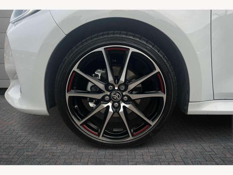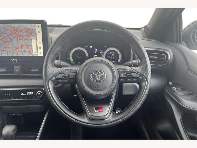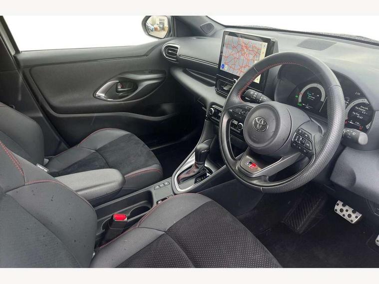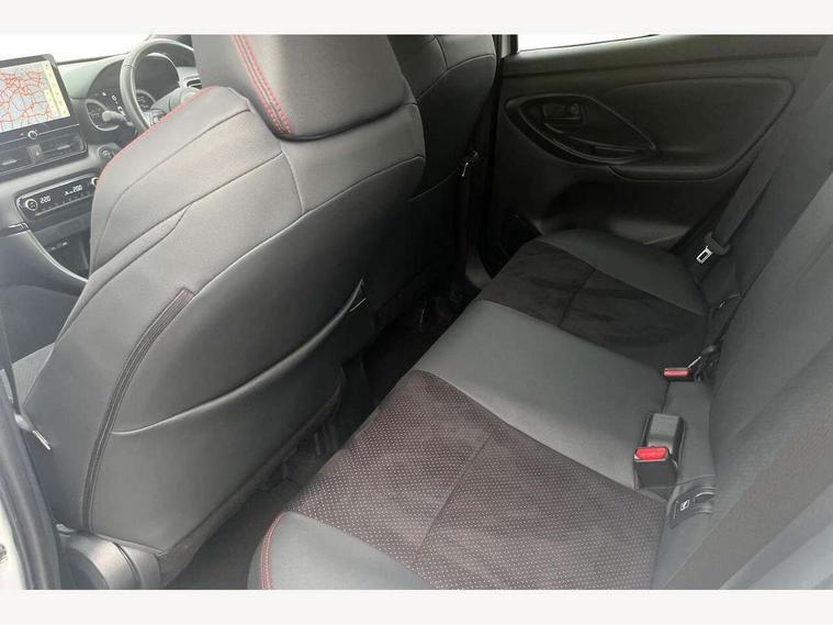 12.3" Digital Combimeter, Adaptive cruise control, Adjustable speed limit with speed warning, Bluetooth connectivity, Colour binocular inspired displays with digital speedometer, E-call, Electric power steering, Hybrid energy display, Lane trace assist, Multi information display switches on steering wheel, Pre-collision system (PCS), Reversing camera, Tailgate, Voice recognition, Wireless charger, Vehicle Stability Control (VSC), 10.5" Toyota smart connect multimedia with wireless smartphone integration incl apple car play and cloud Navigation, 6 speakers, Toyota Touch 3 system with DAB radio, USB connection, Acoustic windscreen glass, Auto high beam assist, Auto windscreen wipers, Automatic headlights, Dark chrome lower front grille, Electric adjustable heated door mirrors, Follow me home headlights, Front auto power windows with anti jam protection, LED daytime running lights, LED front fog lights, LED front light guide, LED Headlights, LED High mounted stop lamp, LED Indicators, LED rear light guide, Manual headlight levelling, Painted chequered front grille with hot stamp in mesh design, Rain sensor, Rear auto power windows with anti jam protection, Rear privacy glass, Rear roof spoiler, Rear side wing doors, Rear wiper, Shark fin antenna, Turning signal integrated indicators in door mirrors, Variable front intermittent wipers, 3 adjustable rear headrests, 3 seat bench in 2nd row, 3 spoke leather steering wheel, 60/40 split folding rear seat, Active headrests, Adjustable boot height, Ambient lighting, Black roof lining, Coat hooks in rear grab handles, Cup holders (2 front & door), Data Communication Module (DCM) connected services, Dual zone automatic air conditioning, Front armrest, Front sport seats, Glovebox, GR embossed in headrests, Height adjustable driver's seat, Height adjustable passenger seat, Isofix seat fixing, Leather gearshift, Map pockets on the backs of the front seats, Pollen filter, Shopping bag hooks, Single front passenger seat, Suede upholstery, Tilt/telescopic steering column, 3 point seatbelts on all rear seats, ABS+EBD+Brake assist, Electronic parking brake, Emergency brake light system (EBS), Front passenger airbag on/off switch, Front seatbelt reminder, Hill start assist control (HAC), Rear child proof door locks, Rear seat belt reminder, Supplemental Restraint System (SRS) 8 airbags: Driver & passenger's airbags, dual side curtain airbags, side impact airbags, front centre airbag, Toyota Safety Sense 3 with over the air updates, Tyre pressure warning system, 2x Master key, Alarm/immobiliser, Keyless smart entry with push button start, Remote AC via MyT, Remote locking via MyT, Remote powered central double locking doors, GR Sport interior styling with accents and exterior styling, Piano black interior trim, Soft touch instrument panel, 18" Black Machined-face, 10 spoke alloys wheels, Space saver spare wheel,