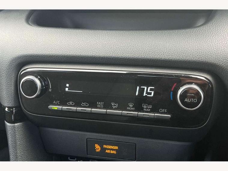 7" Digital Combimeter, Adaptive cruise control, Adjustable speed limit with speed warning, Bluetooth connectivity, Colour binocular inspired displays with digital speedometer, E-call, Electric power steering, Hybrid energy display, Lane trace assist, Multi information display switches on steering wheel, Pre-collision system (PCS), Reversing camera, Smartphone integration with Apple CarPlay and Android auto, Tailgate, Voice recognition, Vehicle Stability Control (VSC), 4 speakers, 9" Multimedia touch display, Toyota Touch 3 system with DAB radio, USB connection, Acoustic windscreen glass, Auto high beam assist, Auto windscreen wipers, Automatic headlights, Body coloured door mirrors, Electric adjustable heated door mirrors, Follow me home headlights, Front auto power windows with anti jam protection, LED daytime running lights, LED front fog lights, LED front light guide, LED Headlights, LED High mounted stop lamp, LED Indicators, LED rear light guide, Manual headlight levelling, Painted chequered front grille, Rain sensor, Rear auto power windows with anti jam protection, Rear privacy glass, Rear roof spoiler, Rear side wing doors, Rear wiper, Shark fin antenna, Turning signal integrated indicators in door mirrors, Variable front intermittent wipers, 3 adjustable rear headrests, 3 seat bench in 2nd row, 3 spoke leather steering wheel, 60/40 split folding rear seat, Active headrests, Adjustable boot height, Auto air conditioning, Coat hooks in rear grab handles, Cup holders (2 front & door), Data Communication Module (DCM) connected services, Fabric upholstery, Front armrest, Glovebox, Grey roof lining, Height adjustable driver's seat, Isofix seat fixing, Leather gearshift, Pollen filter, Shopping bag hooks, Single front passenger seat, Tilt/telescopic steering column, 3 point seatbelts on all rear seats, ABS+EBD+Brake assist, Electronic parking brake, Emergency brake light system (EBS), Front passenger airbag on/off switch, Front seatbelt reminder, Hill start assist control (HAC), Rear child proof door locks, Rear seat belt reminder, Supplemental Restraint System (SRS) 8 airbags: Driver & passenger's airbags, dual side curtain airbags, side impact airbags, front centre airbag, Toyota Safety Sense 3 with over the air updates, Tyre pressure warning system, 2x Master key, Alarm/immobiliser, Remote powered central double locking doors, Soft touch instrument panel, Space saver spare wheel,