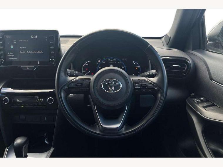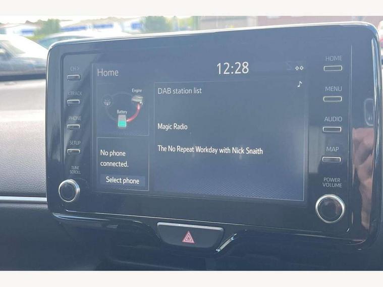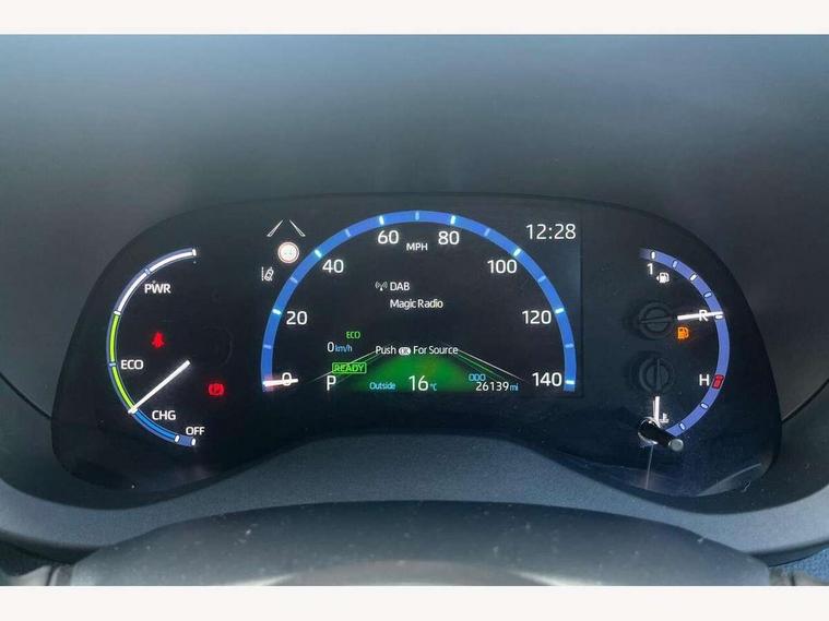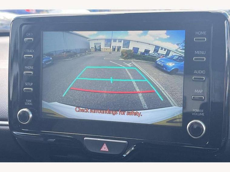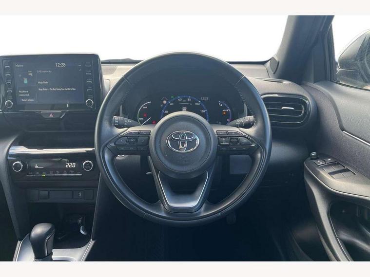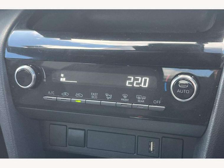 7" Multi information display screen, 8" Toyota touch 2 multimedia system with Smartphone integration with Apple CarPlay and Android auto, Adjustable speed limiter, Bluetooth connectivity, Driver attention alert system, eCall emergency system, Electric power steering, Full range intelligent adaptive cruise control, Hybrid system indicator, Key reminder warning, Lane trace assist, Multimedia, audio, telephone and voice recognition switches on steering wheel, My T Connected services, Pre-collision system enhanced with emergency steering assist, Reversing camera, Road sign assist - RSA, Steering assisted vehicle stability control, 6 speakers, DAB Digital radio, USB connection, 3rd brake light, Acoustic windscreen glass, Aluminium roof rails, Anti-jam protection on power windows, Auto high beam [AHB] with on/off switch, Automatic headlights, Black lower front grille, Black Shark-fin antenna, Black upper front grille, Black wheel arch mouldings, Body colour door handles, Body colour front bumper, Body colour rear bumper, Electric adjustable heated door mirrors, Follow me home headlights, Front and rear electric windows with auto up/down function, Front intermittent wipers, Headlight cut off reminder, Indicators integrated on door mirrors, Intermittent rear wiper, LED daytime running lights guide, LED front fog lights, LED front light guide, LED Indicators, LED projector headlights, LED rear light guide, Manual headlight levelling, Manually retractable door mirrors, Noise reduction layer on windscreen, Privacy glass, Rain sensor, Rear LED lights with sequential indicators, Rear side wing doors, Rear spoiler, Rear window defogger, 12v power outlet - front, 2x Rear coat hooks, 3 seat bench in 2nd row, 3 spoke leather steering wheel, 40:20:40 split folding rear bench seat, Adjustable speed limiter switch on steering wheel, Auto air conditioning, Black roof lining, Boot light, Central armrest, Centre console in light blue ambent lighting, Driver and front passenger personal lights, Fabric door trim, Fabric upholstery, Footwell in light blue ambient lighting, Front console box, Front cup holders, Front head restraints, Glovebox, Height adjustable driver's seat, Height adjustable front passenger seat, Hooks for luggage holding belts, ISOFIX child restraint system, Lane departure alert switch on steering control, Leather gearshift, Light blue ambient lighting on front doors, Manual telescopic and tilting steering wheel, Mirror on driver and passenger sun visor, Pollen air filter, Rear cup holders, Rear head restraints, Single front passenger seat, Soft tonneau cover, 3x3 point rear seat belts, ABS+EBD+Brake assist, Driver and passenger central airbags, Driver and passenger front airbags, Driver and passenger side airbags, Electronic parking brake, Emergency brake light system (EBS), Front seat belt reminder, Hill start assist control (HAC), Passenger airbag on/off switch, Pre-collision system with pedestrian and cyclist detection, Rear door child safety locks, Rear passenger side airbags, Rear seat belt reminder, Traction control, Tyre pressure warning system, Immobiliser, Intrusion alarm, Keyless smart entry with push button start, Power door locks, Power passenger window lock, Remote door lock, Tyre repair kit,