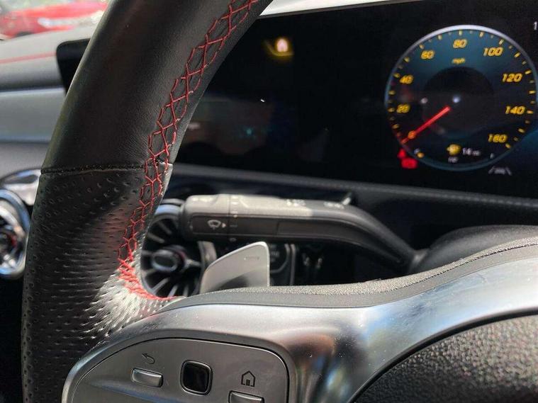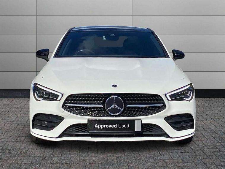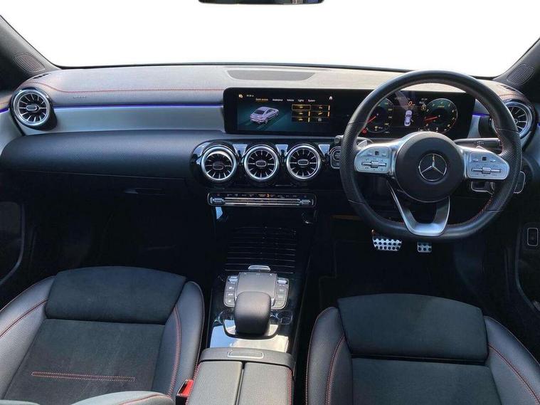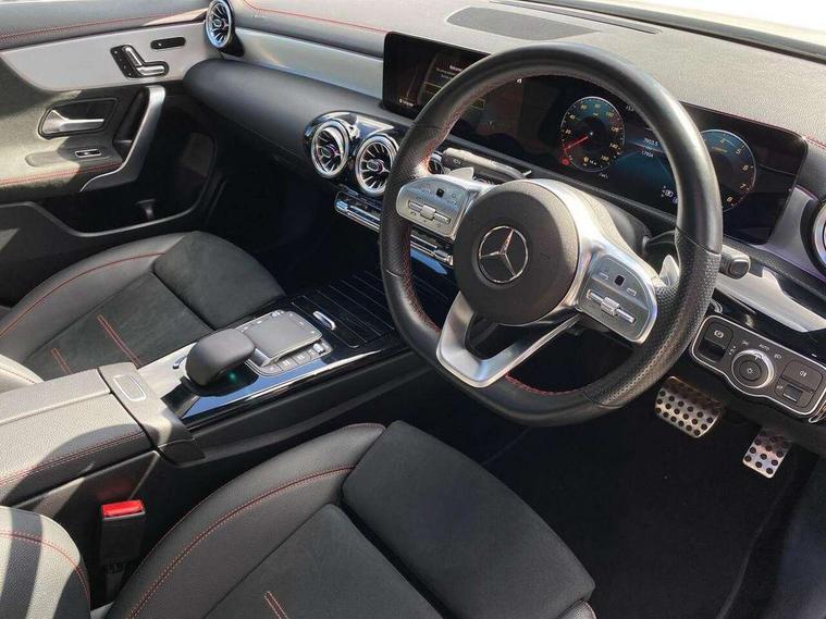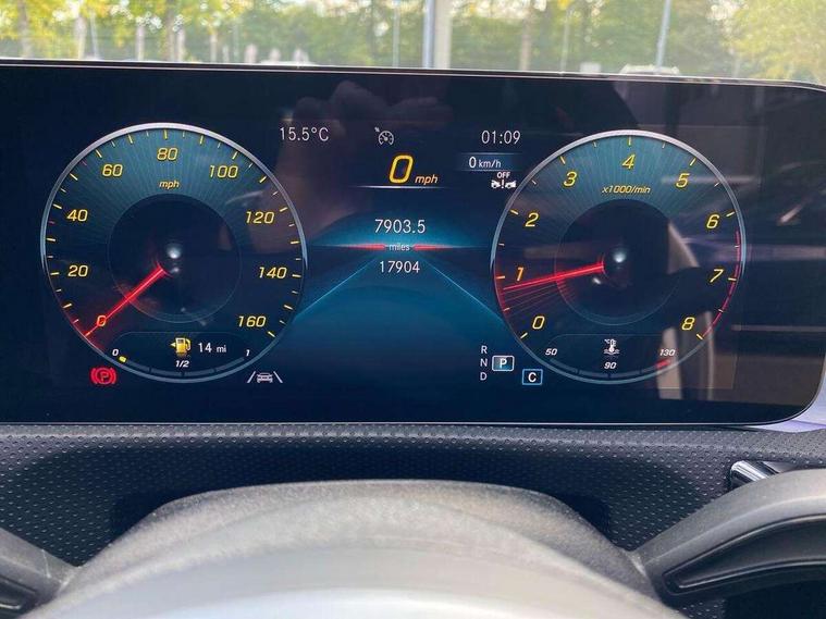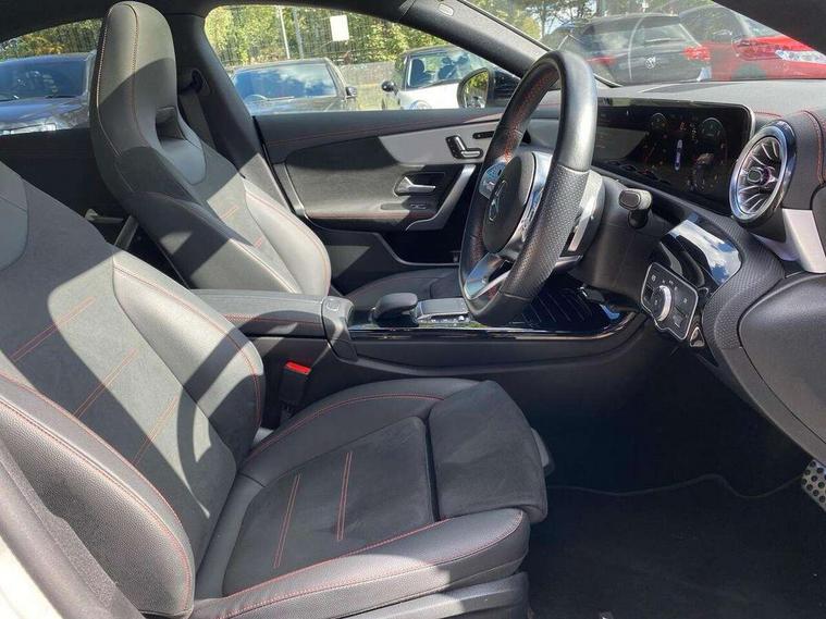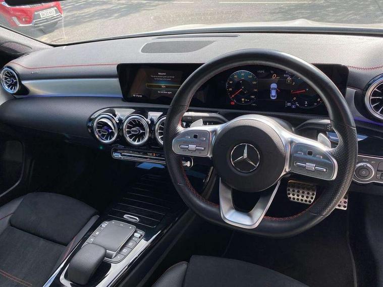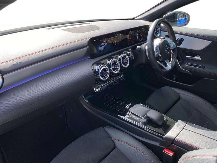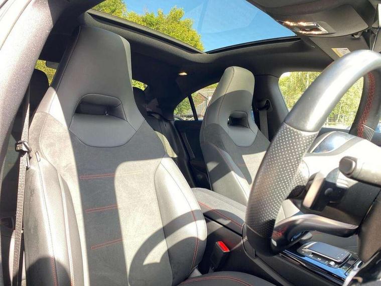 10.25 inch Instrument display with digital cockpit, 10.25 inch touchscreen central media display, Active lane keeping assist, Attention assist - Monitors steering behaviour and long journey fatigue, Blind spot assist, Bluetooth connection, Car wash mode, Cruise control with limiter, Direct steer system with speed sensitive power steering, DYNAMIC SELECT with a choice of driving modes (ECO, Comfort, Sport and Individual), ECO start/stop function, Fluid level warning indicator for fuel, oil, coolant and washer fluid, Hard-disk navigation, Hey Mercedes Voice activation, Lamp failure indicator, Mercedes me connect including emergency call system, accident recovery, breakdown and maintenance management, Mercedes me remote services, Outside temperature gauge, Owners manual and service booklet in English, Pre-installation of private car share, Preinstallation for Mercedes Benz link, Radio aerial integrated into front and rear windshields, Service indicator (ASSYST), Smartphone integration with Apple CarPlay and Android auto, Speed limit assist, Traffic sign assist, Trip computer in multifunction display with current consumption indicator, Lowered comfort suspension, Rear axle multi-link, DAB digital radio tuner, MBUX multimedia system, Mid-range sound system, USB (type C) ports (2) in stowage compartment and 1 in front of centre console, Adaptive brake lights, AMG body styling with AMG front apron and rear apron and visible exhaust tailpipe in chrome trim elements, AMG bodystyling side skirts, Body colour bumpers, Body colour door handles, Chrome beltline strips, Diamond radiator grille pins in chrome, Electric panoramic sunroof with automatic tilt and convenience closing fuinctions, rain sensor auto closing and electronic roller sunblind, Electric windows, Electrically adjustable and heated door mirrors with integrated LED indicators, Exhaust system with 2 Visible tailpipe trim elements and rear apron with trim in chrome, Headlamp assist automatic headlamp activation, Heated glass rear windscreen + timer control, High level LED third brake light, Integrated LED daytime running lights, Interior mirror with black reading lamps and frameless, LED tail lamp, Multibeam LED headlamps with adaptive highbeam assist plus, Privacy glass with dark tinting on rear side windows and rear window, Rain sensing windscreen wipers with two sensitivity settings, Rear boot, Rear fog lamp, Rear side wing doors, Variable front intermittent wipers, Window line trim strip in chrome, 3 seat bench in 2nd row, 3 spoke flattened bottom nappa leather multifunction steering wheel with perforated leather in grip area, 40:20:40 split folding rear seat backrests, Air conditioning - Two zone thermotronic luxury automatic climate control with display, Air vents with surround in silver chrome, Artico man-made leather upholstery, Automatic child seat recognition sensor, Black roof lining, Brushed stainless steel sports pedals with rubber studs, Electrically adjustable front memory seats including lumbar support, Floor mats with stitched AMG lettering, Front centre armrest with stowage, Galvanished gear shift paddles on steering wheel, Heated front seats, Illuminated front door sills with changeable cover, Illuminated glove compartment stowage, Interior lighting - 64 colour Ambient lighting, Luggage net on driver/front passenger seat backrest, Manually adjustable front seats, Manually height and reach adjustable steering column, Rear armrest with two integral cup holders for drinks, Rear head restraints, Single front passenger seat, Sport seats with fixed head restraints, Stowage compartment in centre console with retractable cover, Sunvisors with illuminated vanity mirrors, Touchpad on center console, Twin front cupholders, Two outer rear seat isofix and top tether child seat fixing points, Keyless go comfort pack - CLA, Light and sight pack - CLA, Mirror pack - CLA, Night package - CLA, Parking package - CLA, Active bonnet pedestrain safety measure which detects an impact and raises bonnet by 65mm, Active brake assist includes forward collision warning system with autonomous braking, Adaptive brake assist with hold function and hill start assist, Anti lock braking system (ABS) with brake assist, Black seat belts, Bonnet with power domes, Brake pad wear warning indicator, Childproof locks manually operated for rear doors and electrically operated for rear power windows, Crash responsive emergency lighting, Driver and front passenger head and sidebags, Driver and front passenger windowbags, Drivers knee airbag, Dual stage driver and front passenger airbags, Electric parking brake, Electronic stability programme with acceleration skid control, ESP curve dynamic assist, Exit warning, Front and rear seatbelt reminder, Front passenger seat occupancy sensor, Three point rear seat belts, Tyre pressure monitoring system, Warning triangle and first aid kit, Guard 360 degree guard vehicle protection system with immobiliser and interior protection, Remote central locking and crash sensor with emergency opening function, Light aluminium with longitudinal grain interior trim, 19" AMG multi-spoke black painted light alloy wheels with high sheen rim finish, Summer tyres, Tirefit tyre sealant kit,