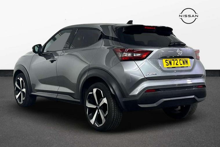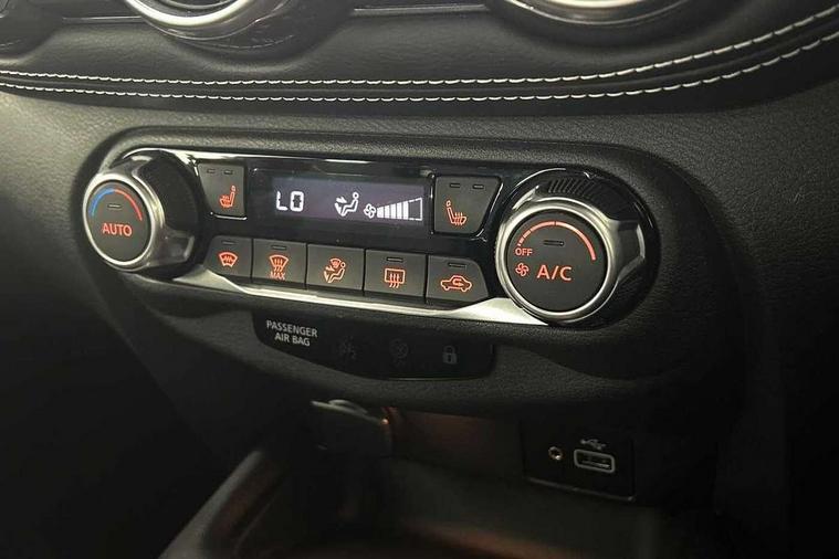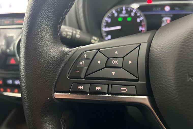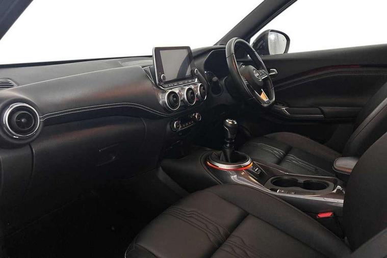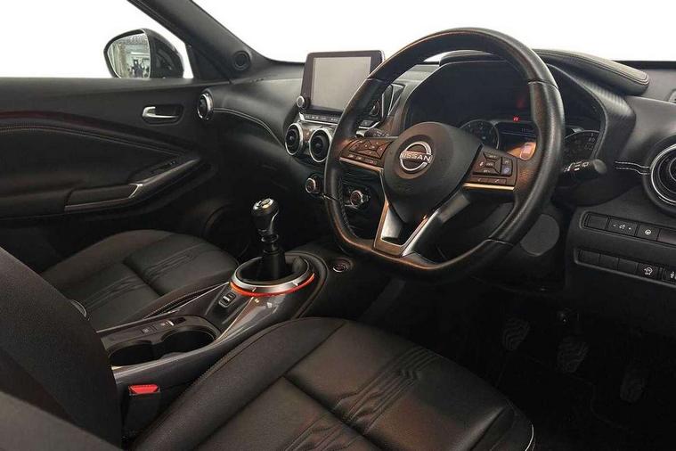 7" full colour TFT screen combimeter, Apple CarPlay and Google Android auto, Drive modes select (Eco, normal and sport), Emergency and breakdown call, Front parking sensor, Idle start/stop system, Intelligent lane intervention, Lane departure warning system, Nissan connect 8" touch screen entertainment system, Nissan connect nav with TomTom traffic, Nissan connect services and Wifi connection, Outside temperature sensor, Power Steering, Rear parking sensor, Traffic sign recognition, Trip computer, Voice recognition, Gasoline particulate filter, 10 Bose speakers 6 speakers and 2 headrest speakers for driver/passenger seats, Bluetooth system, USB, Aux-in and 12V socket, Bose personal sound stage control, DAB Digital radio, Rear console USB port, Auto dimming interior rear view mirror, Auto headlights, Automatic hazard signal with emergency stop signal, Body colour bumpers, Body colour door handles, Electrically adjustable door mirrors with integrated indicators, Follow me home headlights, Front and rear electric window with one touch driver window, Heated and auto folding door mirrors, High beam assist, LED daytime running lights, LED front fog lights, LED headlamps, LED rear fog lamp, LED rear lamps, Rain sensor windscreen wipers, Rear privacy glass, Rear side wing doors, Rear wiper, Thermaclear heated windscreen, Three blink turn signal, 3 height adjustable rear headrests, 3 seat bench in 2nd row, 60/40 split folding rear seat, Automatic climate control, Card holder on driver sunvisor, Door ambient lighting, Driver and passenger sliding and reclining seats, Driver seat back pocket, Driver side rear coat hanger, Driver/passenger sunvisors and vanity mirrors, Front and rear cabin lights, Front armrest, Front door pockets with bottle holders, Front head restraints, Front passenger isofix child seat anchorage point, Front/rear passenger grab handles, Gear console ambient circle lighting, Grey synthetic leather kneepad, Heated front seats, Height adjustable driver's seat, Height adjustable passenger seat, Internal chrome door handles, Leather gearshift knob, Leather steering wheel, Luggage board, Luggage space lighting, Monoform sporty seats, Multifunction steering wheel, Passenger seat back pocket, Rear door bottle holders, Single front passenger seat, Synthetic leather upholstery, Telescopic steering wheel adjustment, Two cupholders in front centre console, Two rear isofix child seat anchorage points with top tether, Welcome light and console tray ambient lighting, Advanced safety shield pack - Juke, ABS with EBD and brake assist, Active ride control, Active Trace Control, Driver and passenger airbags, Driver and passenger side airbags, Electric handbrake with auto hold function, Electronic Stability Programme (ESP), Front and rear curtain airbags, Height adjustable seatbelts, Hill start assist, Intelligent emergency braking with pedestrian and cyclist recognition, Rear door child safety locks, Seatbelt reminder for driver/front passenger and rear seats, Single tone horn, Three 3 point rear seatbelts, Traction control, Tyre pressure monitoring system, VDC Dynamic Vehicle Control, Ventilated rear brake discs, Alarm, Immobiliser, Intelligent key and start push button with walk away lock and approach unlock functions, Remote central locking,