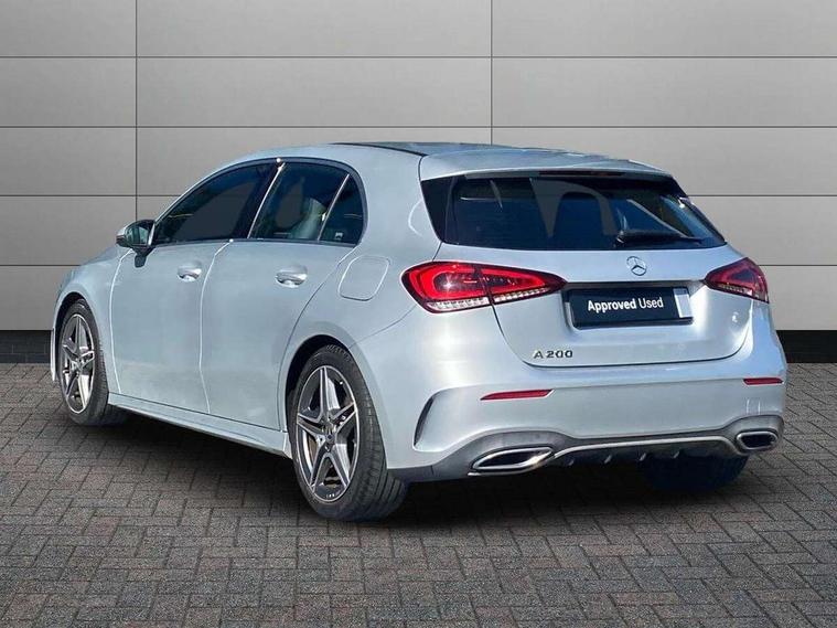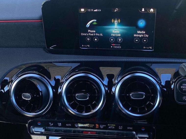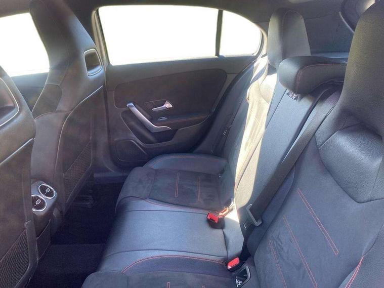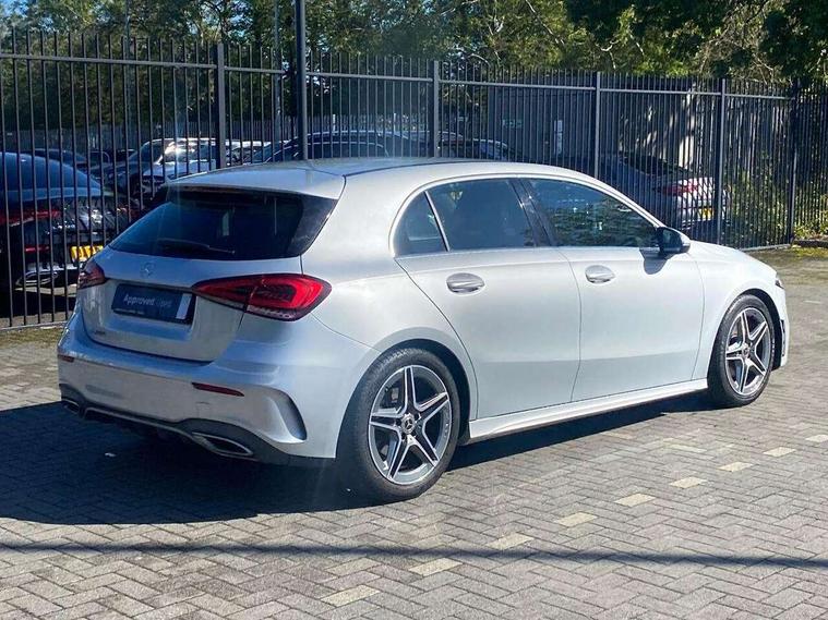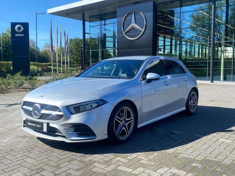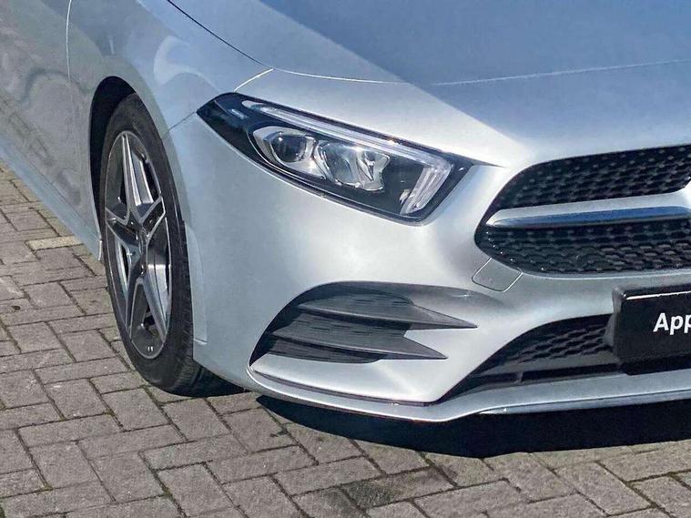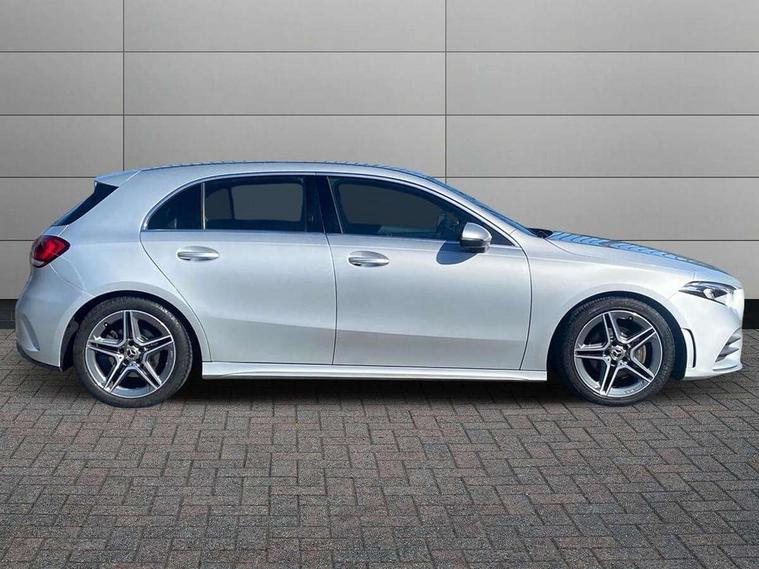 7" colour screen in instrument panel, 7" tablet style colour display, Active lane keep assist, Attention assist, Bluetooth interface for hands free telephone, Bulb failure indicator, Cruise control + speed limiter, Direct steering, DYNAMIC SELECT with a choice of driving modes (ECO, Comfort, Sport, Sport+ and Individual), External temperature gauge, HDD Navigation system, Low fluid warning light, Mercedes connect me with remote online services, Radio aerial integrated into roof spoiler, Reversing camera, Service indicator (ASSYST PLUS), Speed sensitive power steering, Stop/start system, Trip computer, Voice control system, Warning lamp for direction indicators, Lowered comfort suspension, 2 USB ports in centre console, DAB Digital radio, MBUX Multimedia system including digital instrument cluster and phone mirroring, Adaptive brake lights, AMG body styling, Body colour bumpers, Body colour door handles, Body colour side skirt, Body coloured door mirrors, Chrome beltline trim, Diamond radiator grille with chrome pins and silver louvre + chrome insert, Electric adjustable heated door mirrors, Electric front windows, Electric rear windows, Headlamp assist, Heated rear window with timer, High level third brake light, LED daytime running lights, LED Headlights, LED rear lights, Rain sensor windscreen wipers, Rear fog lights, Rear wiper, Twin Trapezoidal tailpipes, 1/3 to 2/3 split folding rear seats, 12V socket, 3 spoke flat bottomed nappa leather sport steering wheel, AMG floor mats with red stitching, Artico man-made leather/Dinamica upholstery, Auto Mercedes-Benz child seat recognition sensor, Black headlining, Brushed stainless steel sports pedals with rubber studs, Controller on centre console with chrome surround, Dual zone automatic climate control, Exit lights, Footwell lights, Front and rear reading lights, Front centre armrest with storage compartment, Front door sills with Mercedes Benz lettering, Front head restraints, Front seat backs luggage nets, Front sport seats, Gearshift paddles on steering wheel, Height adjustable front seats, Height/reach adjustable steering column, Illuminated cup holders, Illuminated glovebox, Illuminated storage compartment, Integrated head restraints, Interior door handle illumination, Isofix rear child seat preparation, Load securing rings in luggage compartment, Luggage compartment cover, Multifunction steering wheel, Oddments tray lighting, Reading lights, Rear head restraints, Storage compartment under load area floor, Sunvisors with illuminated vanity mirrors, Touchpad, Twin front cupholders, Seat comfort pack - A Class, 3 rear 3 point seatbelts, ABS with Brake Assist, Active bonnet, Brake calipers with Mercedes-Benz lettering + perforated brake discs, Child proof door locks, Crash responsive emergency lighting, Drivers knee airbag, Dual stage driver/passenger airbags, Electronic parking brake, ESP with ASR, Front and rear seatbelt reminder, Front head airbags, Front passenger seat occupancy sensor, Front side airbags, Hill start assist, Tyre pressure monitoring system, Warning triangle and first aid kit, Window airbags, Alarm system/interior protection/immobiliser, Keyless ignition, Remote central locking, Chrome air vent surrounds, 18" AMG 5 twin spoke light alloy wheels in titanium grey with highsheen finish, Tirefit sealant with electric air pump,