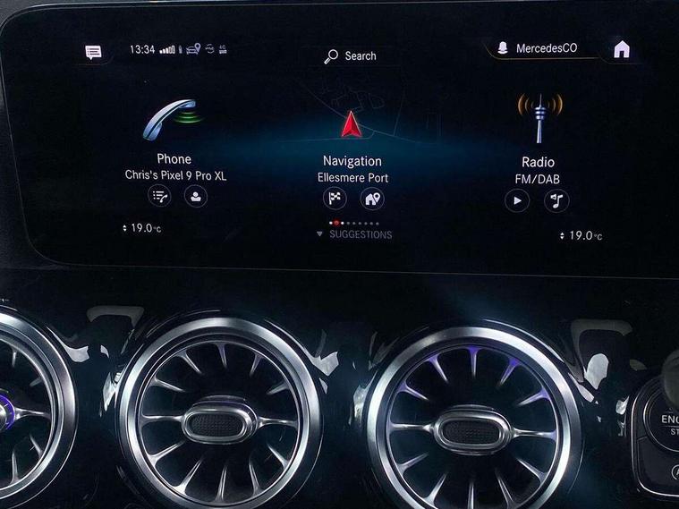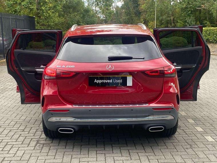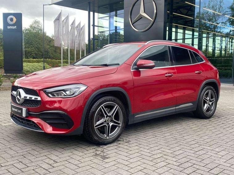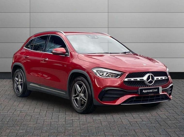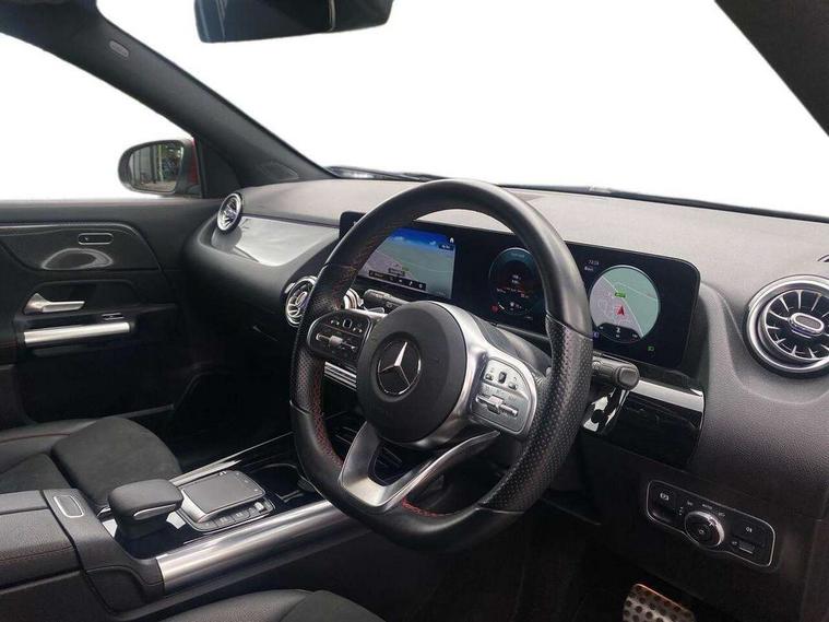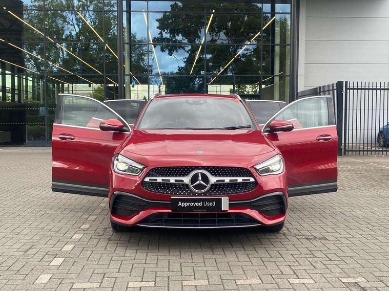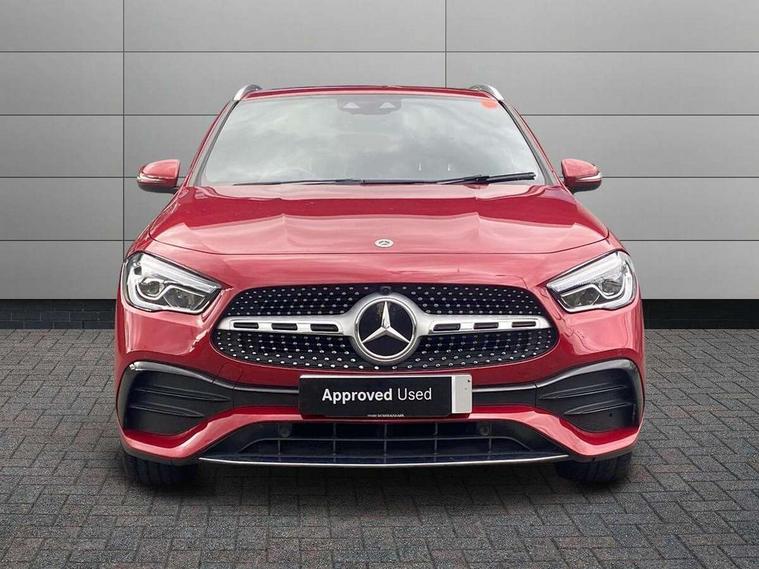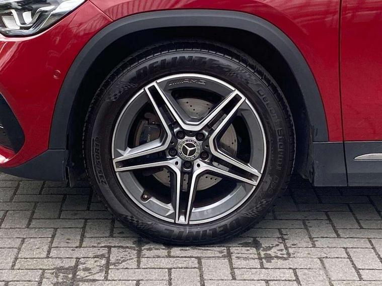 10.25 inch touchscreen central media display, 10.25" Digital instrument cluster display screen, Active lane keeping assist, Attention assist, Augmented reality navigation, Cruise control + speed limiter, Direct steering, DYNAMIC SELECT with a choice of driving modes (ECO, Comfort, Sport, Sport+ and Individual), Easy-pack tailgate, ECO start/stop function, Fluid level warning indicator for fuel, oil, coolant and washer fluid, Hard-disk navigation, Hey Mercedes Voice activation, Lamp failure indicator, Mercedes me connect including emergency call system, accident recovery, breakdown management and maintenance, Multi function trip computer, Outside temperature gauge, Owners manual and service booklet in English, Pre-installation for Vehicle Monitoring, Pre-installation for Vehicle set up, Pre-installation of private car share, Radio aerial integrated into front and rear windshields, Service indicator (ASSYST), Smartphone integration with Apple CarPlay and Android auto, Speed limit assist, Status display for rear seat belts in instrument cluster, Wireless charging, Lowered comfort suspension, Rear axle multi-link, 2 USB ports (type C) in rear stowage compartment and one in front of center console, Bluetooth connectivity including audio streaming, DAB Digital radio, MBUX multimedia system with DAB digital radio and touchpad including satellite navigation, Media interface, Mercedes-Benz advanced sound system - 225W, Adaptive brake lights, Aerial for GPS, Aluminium roof rails, AMG front and rear apron, AMG specific/dual flow exhaust pipes in chrome (non-functional), Automatic headlamp activation, Beltline strips and weather strip in chrome, Black grained claddings with chrome parts, Body colour bumpers, Body colour door mirrors, Body coloured door handles with chrome insert for keyless entry, Car wash function, Dark privacy glass from B-pillar backwards, Electric front windows, Electric rear windows, Electrically adjustable and heated door mirrors with integrated LED indicators, Heated glass rear windscreen + timer control, Heated windscreen wash system, Interior mirror with black reading lamps and frameless, LED high performance headlamps with integrated LED daytime running lights, LED tail lights in two piece design, LED third brake light, Matt titanium grey front and rear apron trim, Pre-installation for trailer coupling, Rain sensor windscreen wipers, Rear fog lights, Roof spoiler, Single lamella raditor grille with chrome dotted diamond grille and inlay, 12V power socket in centre console, 3 spoke multifunction sports steering wheel in nappa leather with flattened bottom and perforated grip area, 40:20:40 split folding rear seats with backrest, Adjustable head restraints, Air conditioning - Two zone thermotronic luxury automatic climate control with display, Ambient lighting in front headrests, AMG floor mats with AMG lettering and stiched edging, Artico man-made leather/Microfibre Dinamica upholstery with red contrast stitching, Auto Mercedes-Benz child seat recognition sensor, Black roof lining, Brushed door pulls in silver chrome, Courtesy light in boot, Front centre armrest with stowage, Galvanished gear shift paddles on steering wheel, Heated front seats, Illuminated door sills, Illuminated glovebox, Interior lighting - 64 colour Ambient lighting, Leather trimmed gearknob, Luggage net on driver/front passenger seat backrest, Manually height and reach adjustable steering column, Multi-gesture touchpad control on center console, Net in front passenger footwell, Sports pedals in brushed stainless steel with black rubber studs, Sports seats, Stowage compartment in centre console, Stowage compartment with retractable cover, Sunvisors with illuminated vanity mirrors, Twin front cup holders, Two outer rear seat isofix and top tether child seat fixing points, AMG body styling pack - GLA, Comfort seat pack - GLA Class, Interior lighting with light and sight pack - GLA, Load compartment pack - GLA, Mirror pack - GLA Class, Parking pack - GLA, 3 rear 3 point seatbelts, ABS with Brake Assist, Active bonnet pedestrain safety measure which detects an impact and raises bonnet by 65mm, Active brake assist includes forward collision warning system with autonomous braking, Adaptive brake assist with hold function and hill start assist, Bonnet with power domes, Brake pad wear warning indicator, Childproof locks manually operated for rear doors and electrically operated for rear power windows, Crash responsive emergency lighting, Driver and passenger head and side airbags, Drivers knee airbag, Dual stage driver/passenger airbags, Electronic parking brake, ESP curve dynamic assist, ESP with ASR, Front and rear seatbelt reminder, Front brake callipers with Mercedes Benz logo lettering on front, Front passenger seat occupancy sensor, Internally ventilated brakes with perforated brake discs at the front, Tyre pressure monitoring system, Warning triangle and first aid kit, Window airbags, Alarm system with immobiliser and interior protection -Thatcham category 1, Keyless go lock/unlock, Keyless Go starting function, Remote central locking and crash sensor with emergency opening function, Vehicle key with decorative surround in chrome, Carbon structure trim, Chrome air vent surrounds, 19" AMG 5 twin spoke light alloy wheels aerodynamically optimised painted in tantalite grey with a high sheen finish, Summer tyres, Tirefit tyre sealant kit,