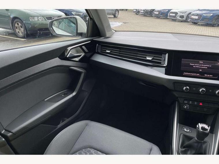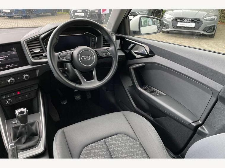 10.25" Digital instrument cluster display classis style instrument dials + speed, odometer, time, outside temperature, telephone menu + fuel level warning, Audi connect safety emergency and service including E-call, Audi drive select - power steering assistance + engine, Audi smartphone interface with connect compatible smartphone via USB directly MMI display + Nav, music, third party apps controlled via MMI controller, Automatic start/stop system, Bluetooth interface, Cruise control, Driver's information system, Electromechanical power steering, Lane departure warning system, Service interval indicator, Speed limiter, Voice control system, Washer fluid level indicator, Dynamic suspension, 1 x SDXC card reader, 2 x USB type C connection points, DAB Digital radio, MMI radio plus with 8.8" colour MMI display screen and MMI touch, Auto dimming rear view mirror, Body coloured bumpers, Body coloured door mirrors, Electric front and rear windows, Electrically adjustable, heated, folding door mirrors with integrated LED side indicator, Front side air inlets in grained matt black and C frame in titanium black, Heat insulating glass windscreen and side windows, Heated rear windscreen, LED headlights with LED rear lights + dynamic rear indicators + headlight adjustment and high beam, turning light + LED daytime running lights, Radiator grille and rear diffuser in matt titanium black, Radiator protective grille frame in matt aluminium silver, Rain and light sensors, Rear fog lights, Rear wiper, Scandium grey tailpipe trim, Side front spoiler lips in grained matt black, 12V socket in centre console with two cup holders, 3 rear seats with headrests, 40:60 Split folding rear seat or folded fully, Door sill trims with aluminium inlay, Driver and passenger seat with manual height adjust with forward and backwards adjustment, Front head restraints, Front/rear floor mats, Height and reach adjustable steering wheel, ISOFIX child seat mounting for front passenger and outer rear seats including top tether attachment point of outer rear seats, Leather gear knob with aluminium trim, Leatherette handbrake grip, Luggage compartment light with front and rear reading lights, Manually adjustable lumbar support in front seats, Novum cloth upholstery with front sport seats, Titanium grey cloth headlining, Luggage compartment pack - A1, 3x3 point rear seatbelts, Audi pre-sense front with pedestrain and cyclist recognition, Brake assist function, Driver and front passenger airbag with front side and head airbags, Electronic Stability Control including ABS, EBD, ASR and EDL, Front passenger airbag deactivation switch, Hill hold assist, Seatbelt height adjustment for front seats, Seatbelt monitoring, Tyre pressure warning light, Warning triangle and first aid kit, Anti theft alarm, Anti theft wheel bolts and loose wheel warning, Immobiliser, Remote central locking with 2 foldaway keys, Aluminium trim for control switches, air vents and digital instrument cluster, Silver grey accent areas including air vents, door handle recesses and centre console in diamond paint finish, Slate grey inlays polygon structure in fine paint finish,