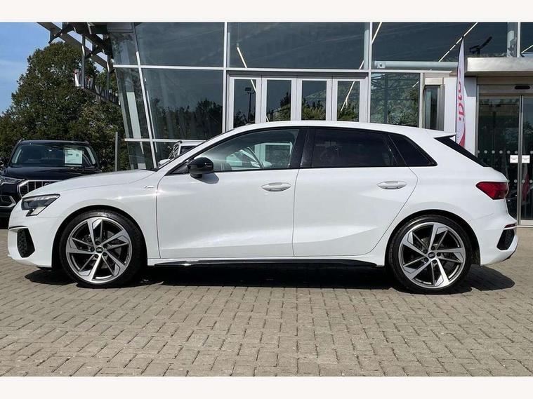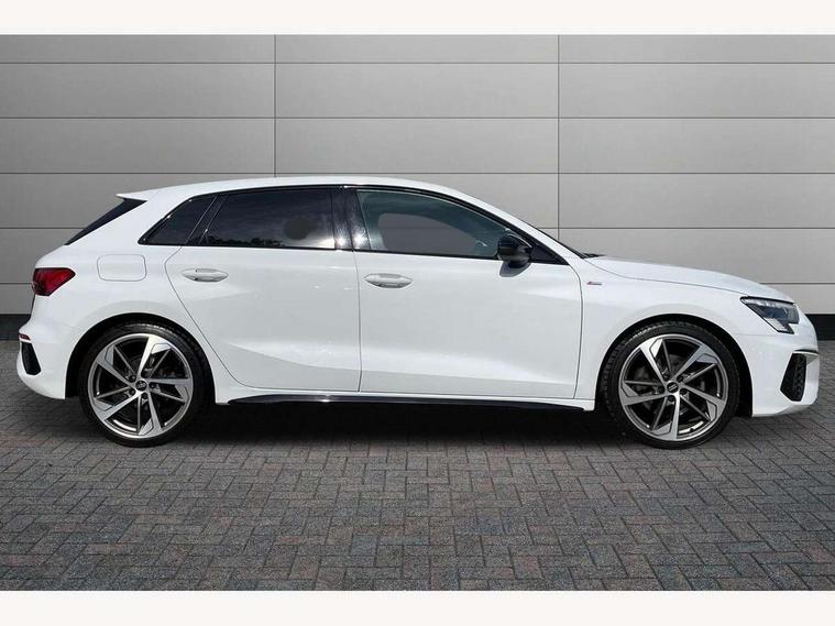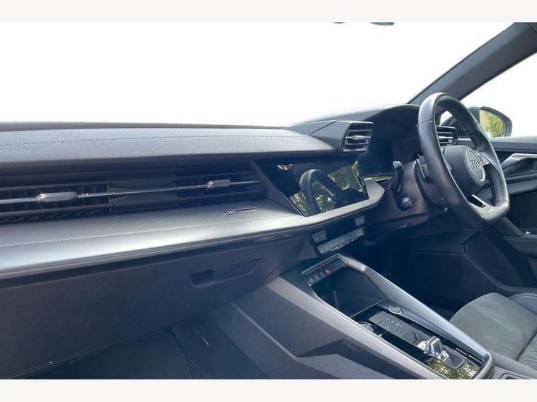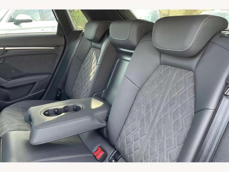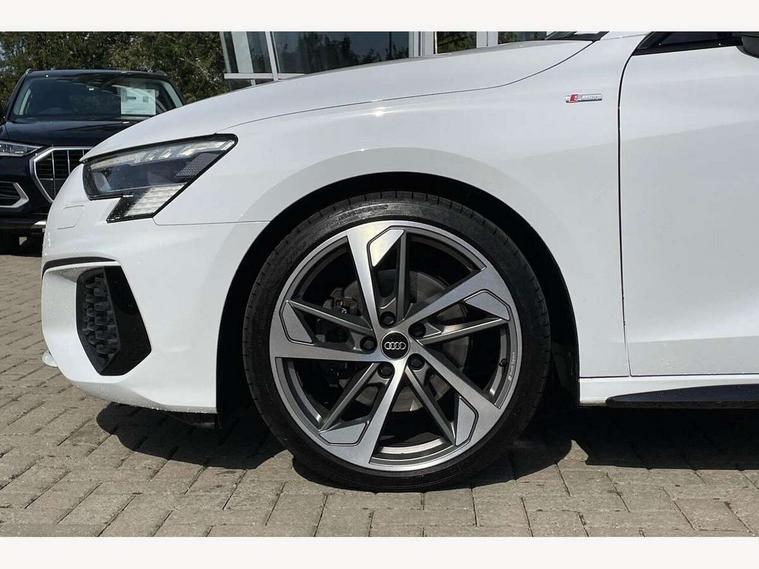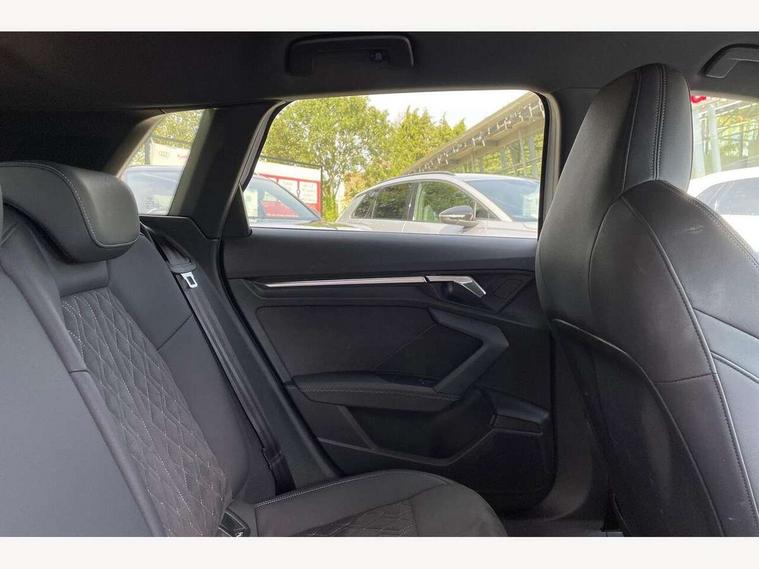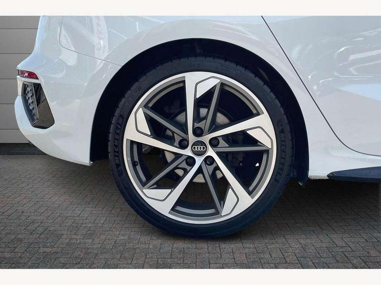 Audi connect emergency call and service, Audi drive select (Auto, Comfort, Dynamic, Efficiency and Individual), Audi smartphone interface, Audi virtual cockpit plus - 12.3" full HD resolution dynamic digital instrument cluster, Automatic start/stop system with recuperation, Bluetooth interface, Collision avoidance assistant, Electromechanical power speed sensitive steering, Lane departure warning system, MMI Navigation Plus with high resolution 10.1" colour touch screen display, Service indicator, Trip computer, Voice control system with natural language interaction, Sports suspension, 2xUSB-C connection with data and charging functions, 6 passive loudspeakers, DAB Digital radio, 3rd brake light, Acoustic glass windscreen, Audi matrix LED headlights with LED rear lights + dynamic front and rear indicators, Auto dimming frameless rear view mirror, Body colour front spoiler blade, Electrically adj heated/folding + automatically dimming exterior mirrors + automatic kerb side function for passenger side exterior mirror, Front electric windows, Headlight washers, Illuminated aluminium inserts front door sills with S logo, Integrated LED indicators in door mirrors, LED daytime running lights, Light and rain sensors, Privacy glass - dark tinted rear window, rear door and side windows, Rear diffuser in grained matt black, Rear electric windows, Rear side air outlets in grained matt black, Rear wiper, S roof spoiler, 12V socket and storage compartment in front centre console, 4 way electrically adjustable lumbar support for driver and front passenger, 40/20/40 split folding rear seat bench with cupholder, Black cloth headlining, Dual zone electronic climate control, Electrically adjustable front seats for driver's side, Front and rear centre armrest in leather, Front and rear headrests, Front/rear floor mats, Heated front seats, Height and reach adjustable steering wheel, Interior lighting - glove compartment light and right hand side, Luggage compartment floor covering, Seat side bolsters, Stainless steel pedals and front footrest in black, Aluminium interior elements pack - A3 Sportback, Black styling pack - A3 Sportback, Dinamica microfibre/mono.pur 550 artificial leather pack - A3 Sportback, Extended ambient lighting pack - A3 Sportback, LED interior lighting pack - A3 Sportback Edition 1/Vorsprung, 3x3 point rear seat belts, Driver and front passenger airbag with passenger airbag deactivation, Electronic Stabilisation Control (ESC) including ABS, ASR and EDL, First aid kit with warning triangle and 2 safety vests, Front side airbags with head airbags and interaction airbag, Hill hold assist, Pre-sense front with pedestrian and cyclist detection, Seatbelt monitoring, Tyre pressure loss indicator, Anti theft alarm, Anti-theft wheel bolts, Electronically operated child lock, Immobiliser, Remote control central locking, Accent surfaces in the dashboard and centre console in platinum grey silk effect paint finish, Dark spectrum aluminium inlays, 19" 5 arm trapezoid design alloy wheels in titanium matt grey with diamond cut finish,