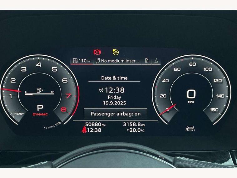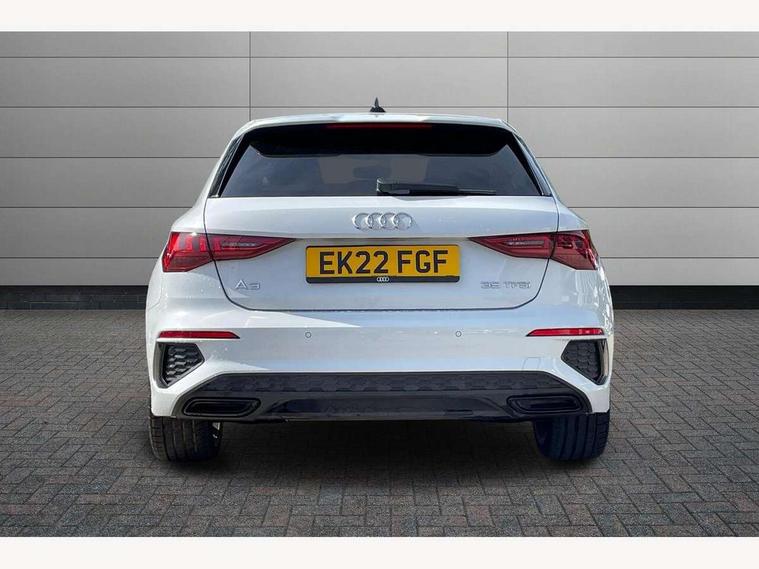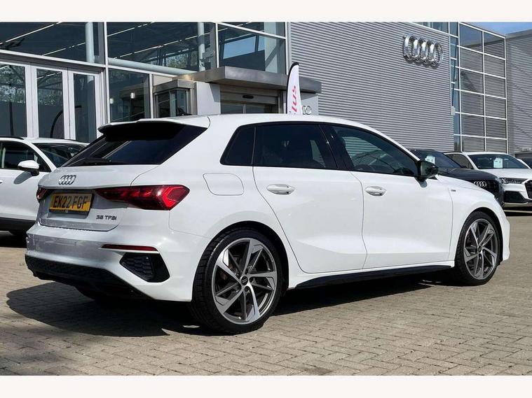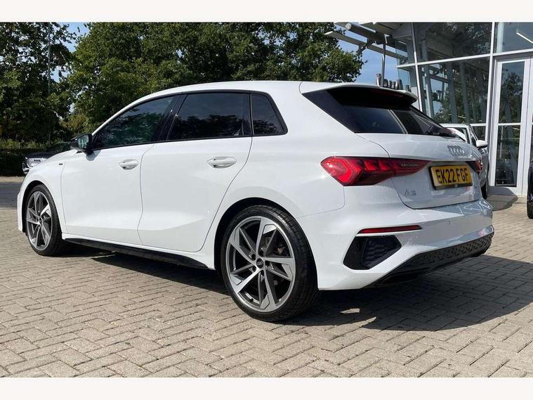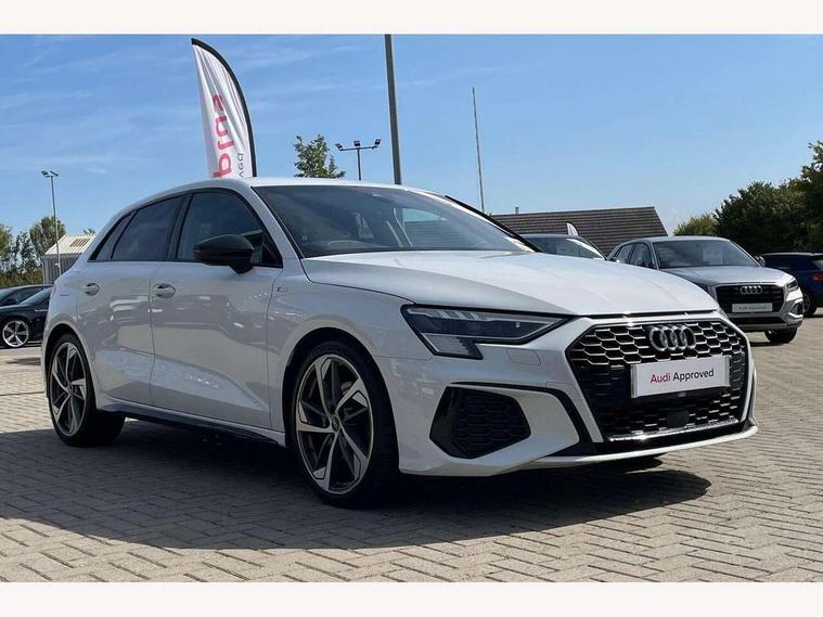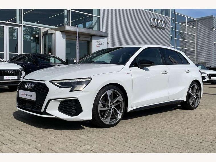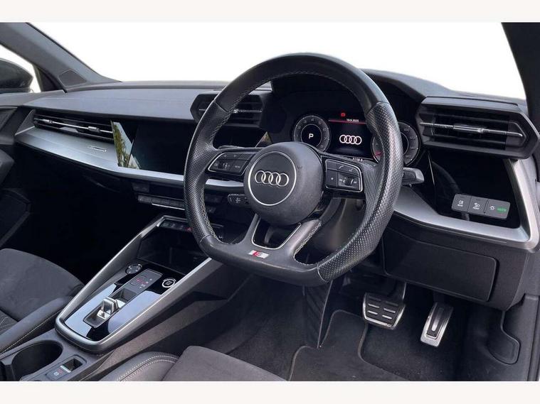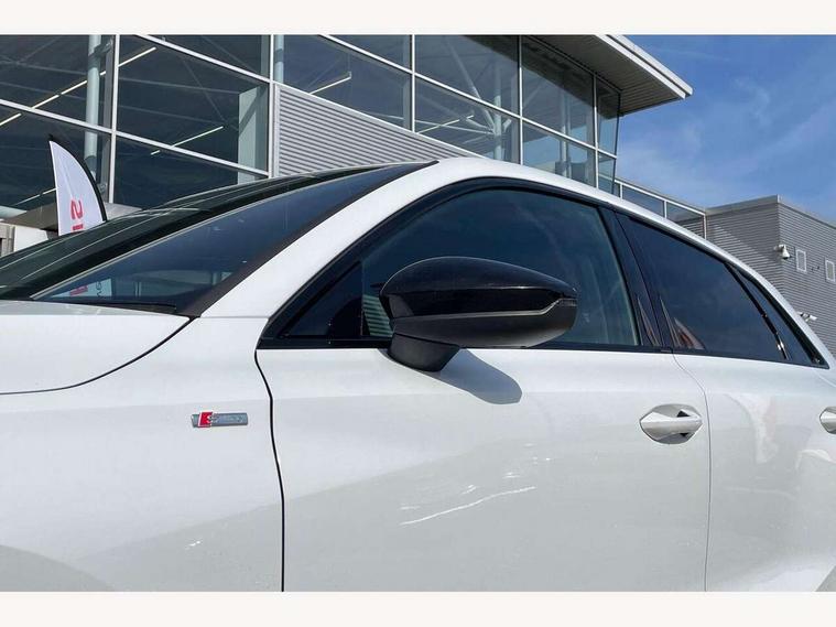 Audi connect emergency call and service, Audi drive select (Auto, Comfort, Dynamic, Efficiency and Individual), Audi smartphone interface, Audi virtual cockpit plus - 12.3" full HD resolution dynamic digital instrument cluster, Automatic start/stop system with recuperation, Bluetooth interface, Collision avoidance assistant, Electromechanical power speed sensitive steering, Lane departure warning system, MMI Navigation Plus with high resolution 10.1" colour touch screen display, Service indicator, Trip computer, Voice control system with natural language interaction, Sports suspension, 2xUSB-C connection with data and charging functions, 6 passive loudspeakers, DAB Digital radio, 3rd brake light, Acoustic glass windscreen, Audi matrix LED headlights with LED rear lights + dynamic front and rear indicators, Auto dimming frameless rear view mirror, Body colour front spoiler blade, Electrically adj heated/folding + automatically dimming exterior mirrors + automatic kerb side function for passenger side exterior mirror, Front electric windows, Headlight washers, Illuminated aluminium inserts front door sills with S logo, Integrated LED indicators in door mirrors, LED daytime running lights, Light and rain sensors, Privacy glass - dark tinted rear window, rear door and side windows, Rear diffuser in grained matt black, Rear electric windows, Rear side air outlets in grained matt black, Rear wiper, S roof spoiler, 12V socket and storage compartment in front centre console, 4 way electrically adjustable lumbar support for driver and front passenger, 40/20/40 split folding rear seat bench with cupholder, Black cloth headlining, Dual zone electronic climate control, Electrically adjustable front seats for driver's side, Front and rear centre armrest in leather, Front and rear headrests, Front/rear floor mats, Heated front seats, Height and reach adjustable steering wheel, Interior lighting - glove compartment light and right hand side, Luggage compartment floor covering, Seat side bolsters, Stainless steel pedals and front footrest in black, Aluminium interior elements pack - A3 Sportback, Black styling pack - A3 Sportback, Dinamica microfibre/mono.pur 550 artificial leather pack - A3 Sportback, Extended ambient lighting pack - A3 Sportback, LED interior lighting pack - A3 Sportback Edition 1/Vorsprung, 3x3 point rear seat belts, Driver and front passenger airbag with passenger airbag deactivation, Electronic Stabilisation Control (ESC) including ABS, ASR and EDL, First aid kit with warning triangle and 2 safety vests, Front side airbags with head airbags and interaction airbag, Hill hold assist, Pre-sense front with pedestrian and cyclist detection, Seatbelt monitoring, Tyre pressure loss indicator, Anti theft alarm, Anti-theft wheel bolts, Electronically operated child lock, Immobiliser, Remote control central locking, Accent surfaces in the dashboard and centre console in platinum grey silk effect paint finish, Dark spectrum aluminium inlays, 19" 5 arm trapezoid design alloy wheels in titanium matt grey with diamond cut finish,