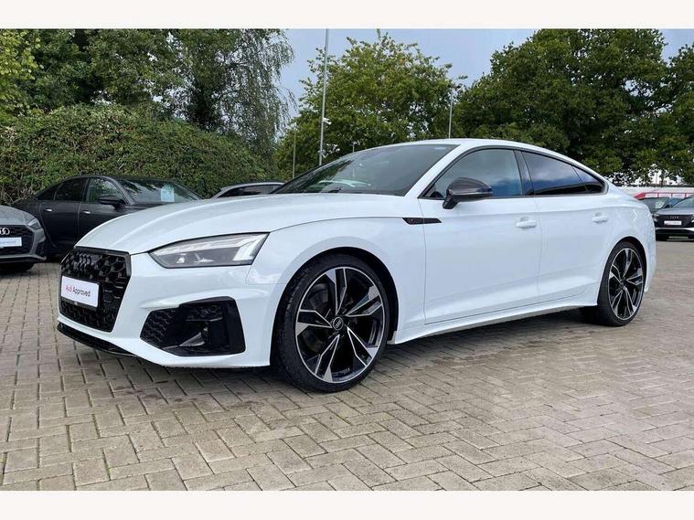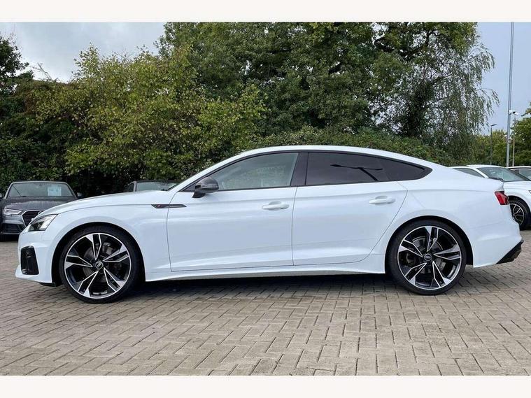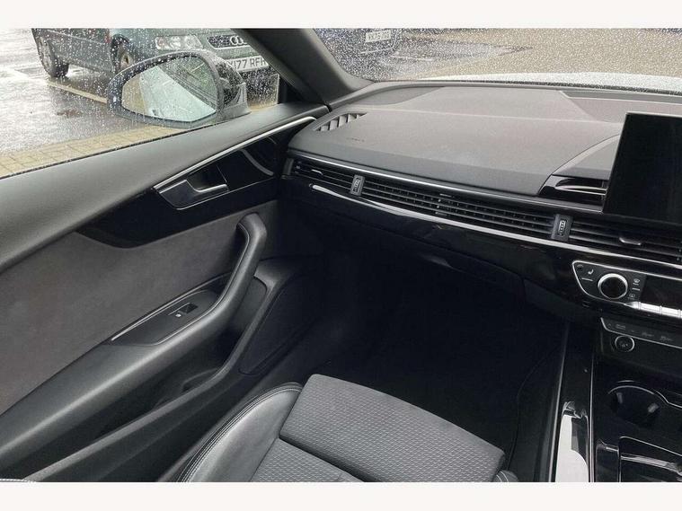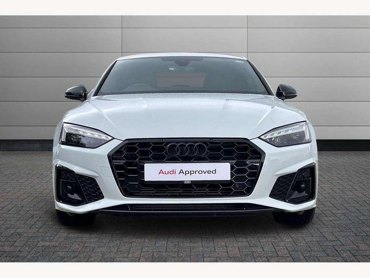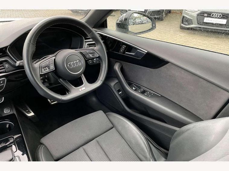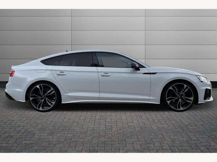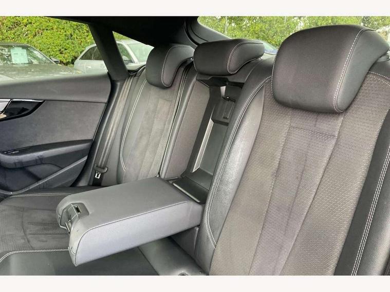 Audi connect safety and service (e-call), Audi connect with Amazon Alexa Integration, Audi drive select (Auto, Comfort, Dynamic and Individual), Audi parking system plus with front and rear sensors, Audi smartphone interface, Audi virtual cockpit - 12.3" full colour digital instrument cluster, vehicle/engine speed, Radio/media information+Driver assistance systems, Automatic start-stop system with coasting functionality and efficiency programme, Bluetooth interface, Electro-mechanical power steering, Email, calendar and text messages displayed via MMI, MMI nav+ with MMI touch - 10.1" high resolution MMI display, touch sensitive, 3D map, route/country info, dynamic route guide, personal route assist, Power operated tailgate, Rear view camera, Service interval indicator, Voice control system, Sports suspension lowered by 23mm, 8 passive loudspeakers, CD player, DAB digital radio reception, Two additional USB ports for rear passenger in rear centre console, Two SDXC card slots, Audi Beam uses LEDs to project the Audi logo, Audi matrix LED headlights with LED rear lights + dynamic front and rear indicators, Auto dimming door mirrors, Auto dimming rear view mirror, Black door mirror housings, Body colour door handles, Body colour front spoiler lip, Body colour side sill trim, Electric adjustable heated door mirrors, Electric folding door mirrors, Electric front windows, Exhaust tailpipe trims in grey, Front and rear bumpers with side skirts, Front fog lights, Honeycomb structure radiator grille in grained matt black, Kerb-view function for passenger side, LED daytime running lights, LED side indicator lights integrated into door mirrors, LED third brake light, Privacy glass, Rain and light sensors, Rear diffuser in matt titanium black with trim strip in matt aluminium silver, Rear side wing doors, S model rear spoiler in black, Side air inlets in grained matt black with matt aluminium silver inlay, Variable front intermittent wipers, Windscreen with acoustic glazing, 3 seat bench in 2nd row, 4 way electric lumbar support for driver and front passenger, 40/20/40 split folding 3 seater rear bench seat, Adjustable steering column, Black cloth headlining, Black perforated leather gearknob, Contrast stitching on seats, steering wheel and gear lever gaiter, Deluxe 3 zone electronic climate control, Front centre armrest, Front head restraints, Front/rear floor mats, Heated front seats, Illuminated door sill trim with S logo, ISOFIX child seat mounting and top tether, Luggage compartment mat, Manual seat adjustment, Rear centre armrest, Rear headrests, Single front passenger seat, Stainless steel pedals, Sunvisors with vanity mirrors, Black styling pack - A5 Coupe/Sportback, LED interior light pack - A5/RS5, 3x3 point rear seatbelts, 6 airbags - Driver, front passenger, curtain and side airbags, Electromechanical parking brake, Electronic Stabilisation Control (ESC) including ABS, ASR and EDL, Front passenger airbag deactivation, Height adjustable front seatbelts, Hill hold assist, Manual child lock in rear doors, Multi collision brake assist, Pop-up bonnet for pedestrian protection, Pre sense city, Seatbelt monitoring, Tyre pressure warning, Variable restraint system, Warning triangle and first aid kit, Anti theft alarm system, Anti theft wheel bolts, Immobiliser, Keyless Go, Remote central locking, Piano black finish inlay, 20" 5 twin spoke polygon design alloy wheels in gloss anthracite black and gloss turned finish, Tool kit, Tyre repair kit,