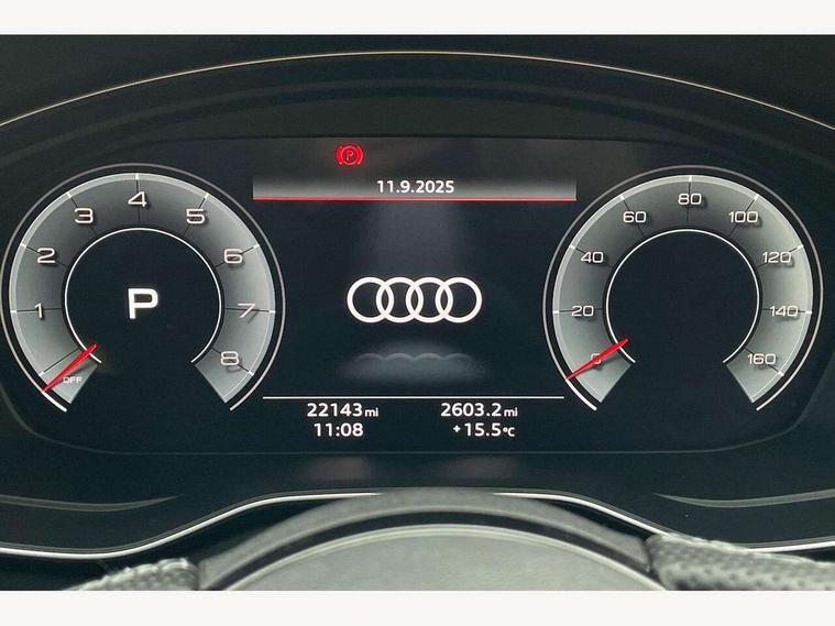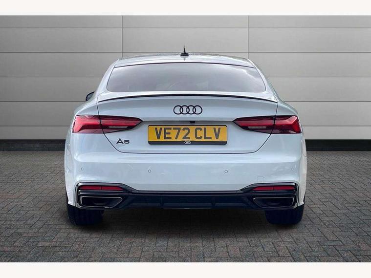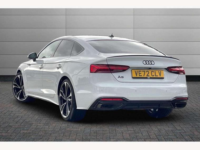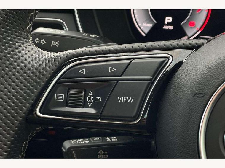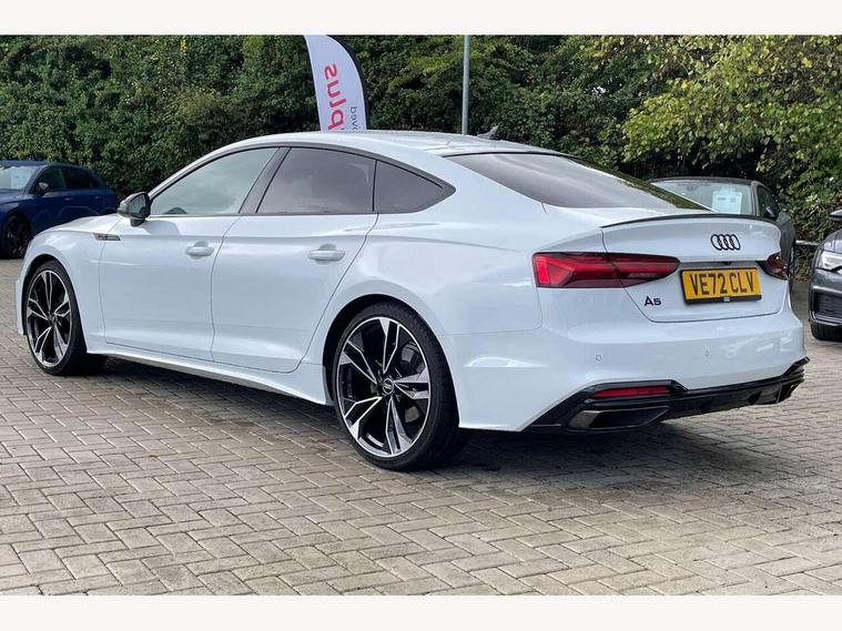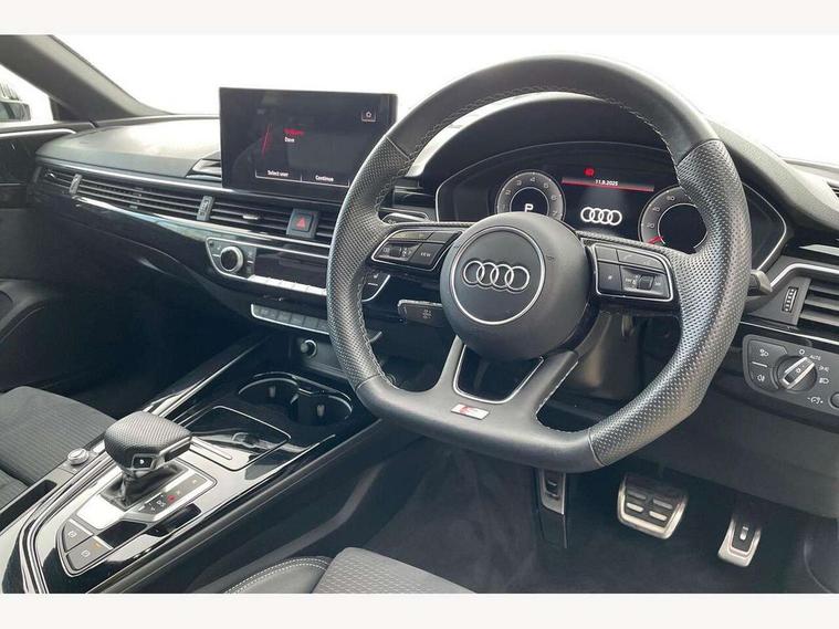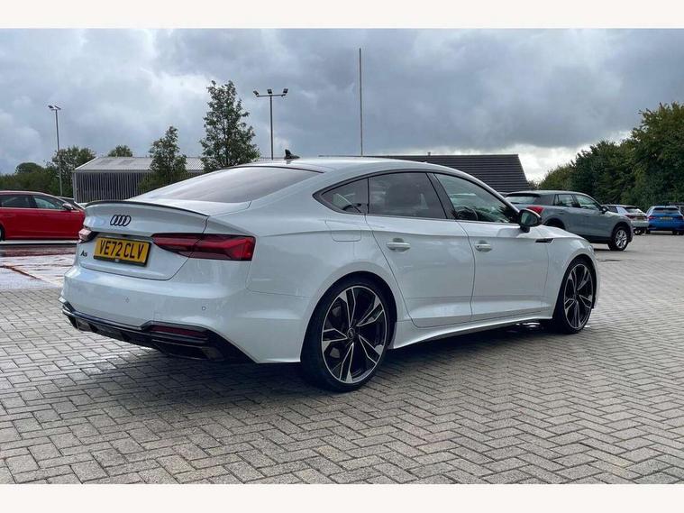Audi connect safety and service (e-call), Audi connect with Amazon Alexa Integration, Audi drive select (Auto, Comfort, Dynamic and Individual), Audi parking system plus with front and rear sensors, Audi smartphone interface, Audi virtual cockpit - 12.3" full colour digital instrument cluster, vehicle/engine speed, Radio/media information+Driver assistance systems, Automatic start-stop system with coasting functionality and efficiency programme, Bluetooth interface, Electro-mechanical power steering, Email, calendar and text messages displayed via MMI, MMI nav+ with MMI touch - 10.1" high resolution MMI display, touch sensitive, 3D map, route/country info, dynamic route guide, personal route assist, Power operated tailgate, Rear view camera, Service interval indicator, Voice control system, Sports suspension lowered by 23mm, 8 passive loudspeakers, CD player, DAB digital radio reception, Two additional USB ports for rear passenger in rear centre console, Two SDXC card slots, Audi Beam uses LEDs to project the Audi logo, Audi matrix LED headlights with LED rear lights + dynamic front and rear indicators, Auto dimming door mirrors, Auto dimming rear view mirror, Black door mirror housings, Body colour door handles, Body colour front spoiler lip, Body colour side sill trim, Electric adjustable heated door mirrors, Electric folding door mirrors, Electric front windows, Exhaust tailpipe trims in grey, Front and rear bumpers with side skirts, Front fog lights, Honeycomb structure radiator grille in grained matt black, Kerb-view function for passenger side, LED daytime running lights, LED side indicator lights integrated into door mirrors, LED third brake light, Privacy glass, Rain and light sensors, Rear diffuser in matt titanium black with trim strip in matt aluminium silver, Rear side wing doors, S model rear spoiler in black, Side air inlets in grained matt black with matt aluminium silver inlay, Variable front intermittent wipers, Windscreen with acoustic glazing, 3 seat bench in 2nd row, 4 way electric lumbar support for driver and front passenger, 40/20/40 split folding 3 seater rear bench seat, Adjustable steering column, Black cloth headlining, Black perforated leather gearknob, Contrast stitching on seats, steering wheel and gear lever gaiter, Deluxe 3 zone electronic climate control, Front centre armrest, Front head restraints, Front/rear floor mats, Heated front seats, Illuminated door sill trim with S logo, ISOFIX child seat mounting and top tether, Luggage compartment mat, Manual seat adjustment, Rear centre armrest, Rear headrests, Single front passenger seat, Stainless steel pedals, Sunvisors with vanity mirrors, Black styling pack - A5 Coupe/Sportback, LED interior light pack - A5/RS5, 3x3 point rear seatbelts, 6 airbags - Driver, front passenger, curtain and side airbags, Electromechanical parking brake, Electronic Stabilisation Control (ESC) including ABS, ASR and EDL, Front passenger airbag deactivation, Height adjustable front seatbelts, Hill hold assist, Manual child lock in rear doors, Multi collision brake assist, Pop-up bonnet for pedestrian protection, Pre sense city, Seatbelt monitoring, Tyre pressure warning, Variable restraint system, Warning triangle and first aid kit, Anti theft alarm system, Anti theft wheel bolts, Immobiliser, Keyless Go, Remote central locking, Piano black finish inlay, 20" 5 twin spoke polygon design alloy wheels in gloss anthracite black and gloss turned finish, Tool kit, Tyre repair kit,