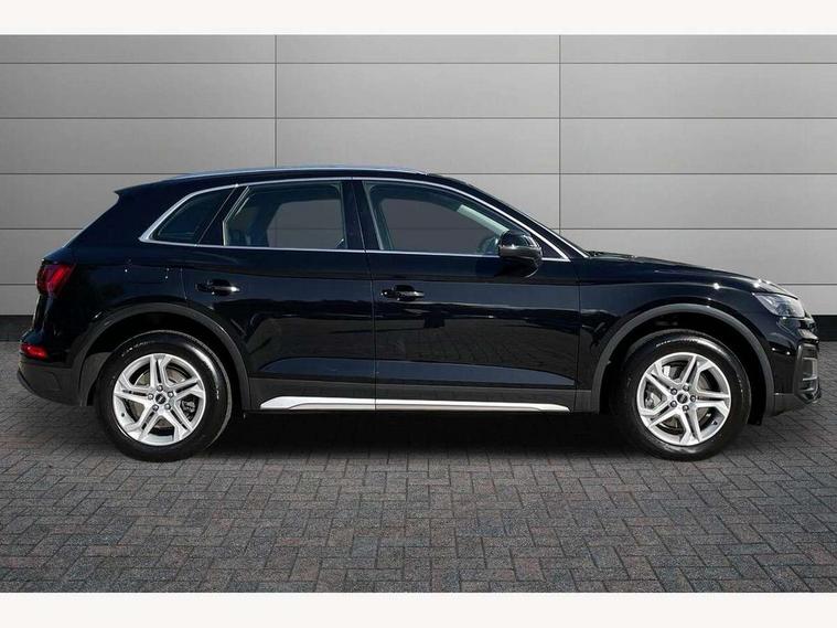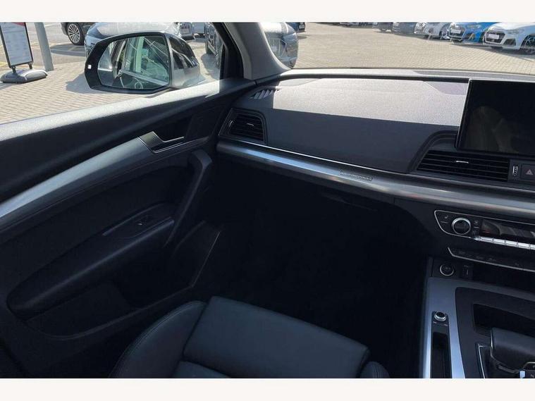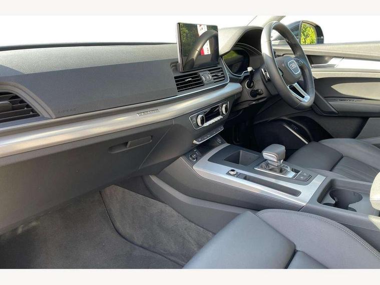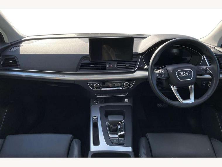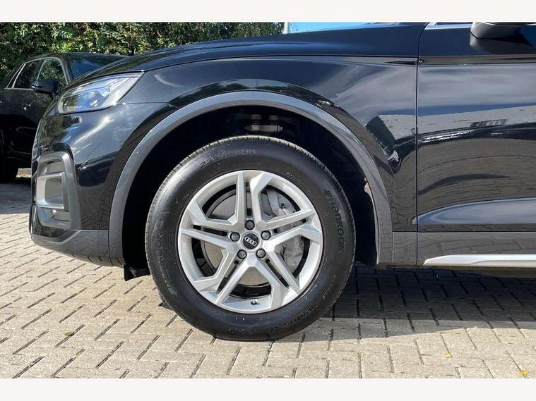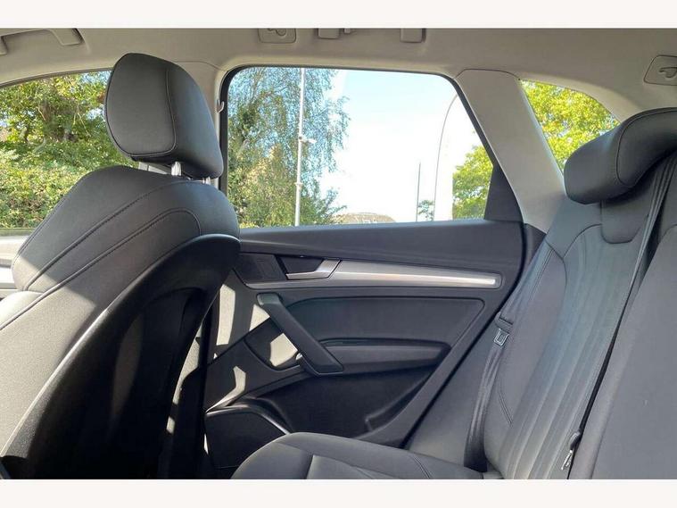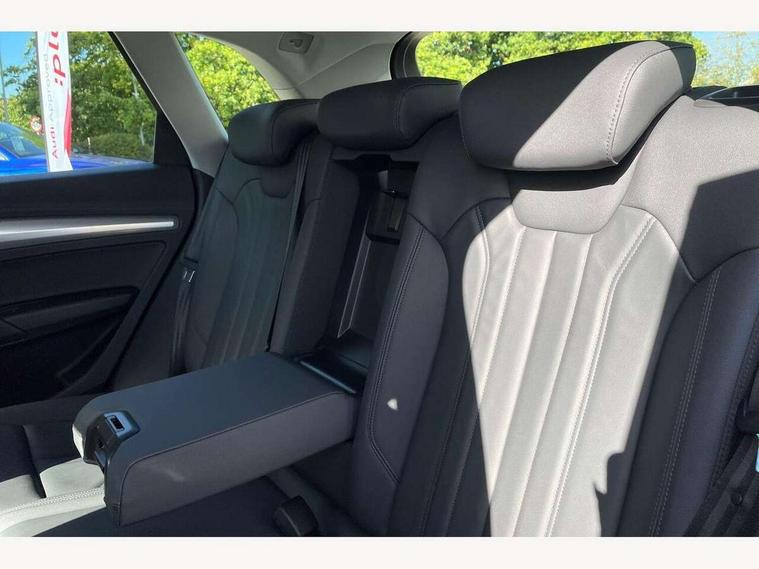 Audi connect safety and service (e-call), Audi connect with Amazon Alexa Integration, Audi drive select, Audi virtual cockpit plus with 12.3" screen and three different layout designs, Audi wireless smartphone interface, Automatic start-stop system with coasting functionality and efficiency programme, Bluetooth interface, Cruise control + speed limiter, Electro - mechanical power assisted steering, MMI navigation plus with 10.1" touch screen, Power tailgate, Reversing camera, Service interval indicator, Voice control system with Audi hotword activation "Hey Audi", Diesel particulate filter, Dynamic suspension, Quattro on demand, 2 x USB charging port with aux input socket, DAB Digital radio, Acoustic windscreen, Air inlets in matt titanium black with blades in matt aluminium silver, Aluminium roof rails, Auto dimming door mirrors, Auto dimming rear view mirror, Automatic headlight adjustment, Automatic headlights and windscreen wipers, Body colour bumpers, Body colour door mirrors, Chrome plated exhaust trims, Daytime running lights, Door sills in Selenite silver, Electric adjustable/heated/folding door mirrors, Front and rear electric windows, High level LED brake light, LED headlights and LED tail lights, Lower bumpers painted in contrast Manhattan grey, Matt selenite silver underbody protection, Matt twilight grey radiator grille with chrome vertical struts, Rear chrome trim strip below lights, Rear diffuser strip in selenite silver, Rear side wing doors, Rear spoiler, Rear wiper, Roof bars, 3 rear headrests, 3 spoke multifunction leather steering wheel with shift paddles, 40:20:40 split folding 3 rear bench seat in 2nd row with rear centre armrest, Comfort front centre armrest, Deluxe 3 zone electronic climate control, Door sills trims with aluminium inlays, Front/rear floor mats, Heated front seats, Height adjustable front head restraints, Height/reach adjustable steering column, ISOFIX child seat mounting and top tether, Luggage compartment cover, Manual seat adjustment with 4-way electric lumbar support, Removable luggage compartment floor, Silver cloth headlining, Single front passenger seat, Sunvisors with vanity mirrors, Twin leather upholstery + front sports seats, High gloss pack - Q5, LED interior light pack - Q5, 3 point seatbelts on all seats, 6 airbags - Driver, front passenger, curtain and side airbags, Electrically operated child locks on rear doors, Electromechanical parking brake, Electronic stabilisation control including ABS, ASR and EDL, Front passenger airbag deactivation, Hill descent control, Hill hold assist, Multi collision brake assist, Pop-up bonnet for pedestrian protection, Pre sense city, Seat belt force limiter, Seatbelt monitoring, Tyre pressure warning, Warning triangle and first aid kit, Anti theft alarm, Anti-theft wheel bolts, Keyless Go access/ignition system, Remote central locking, Aluminium rhombus inlay,