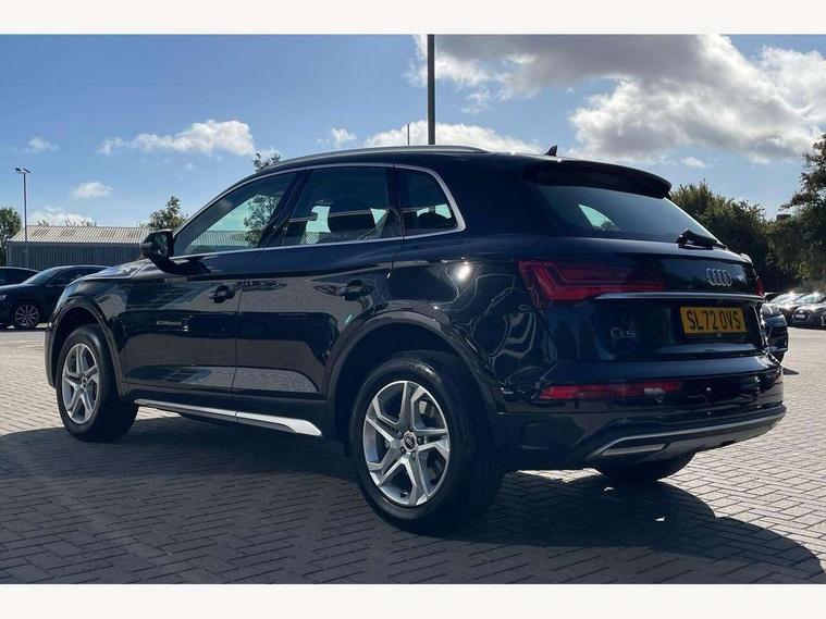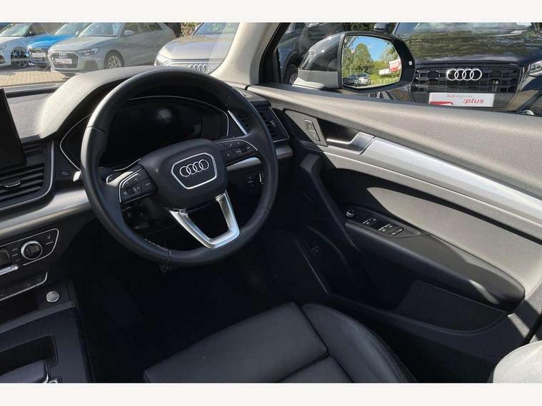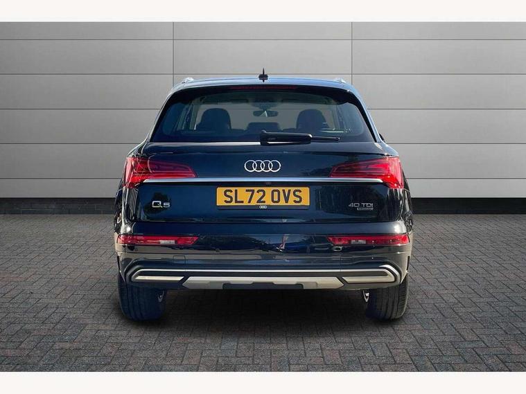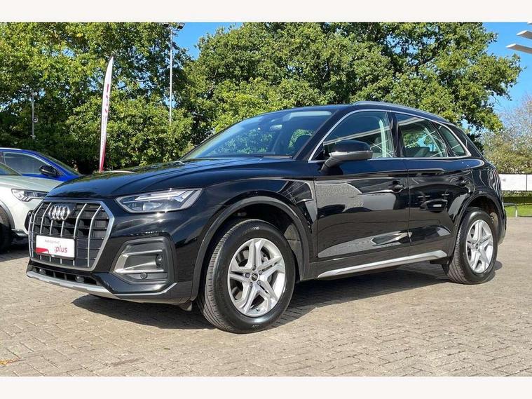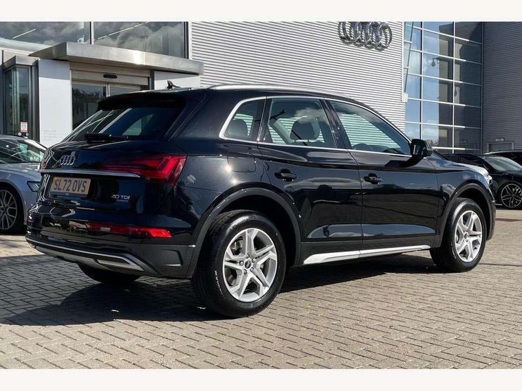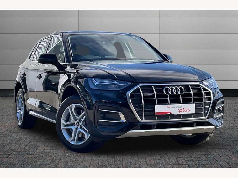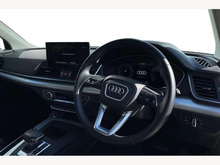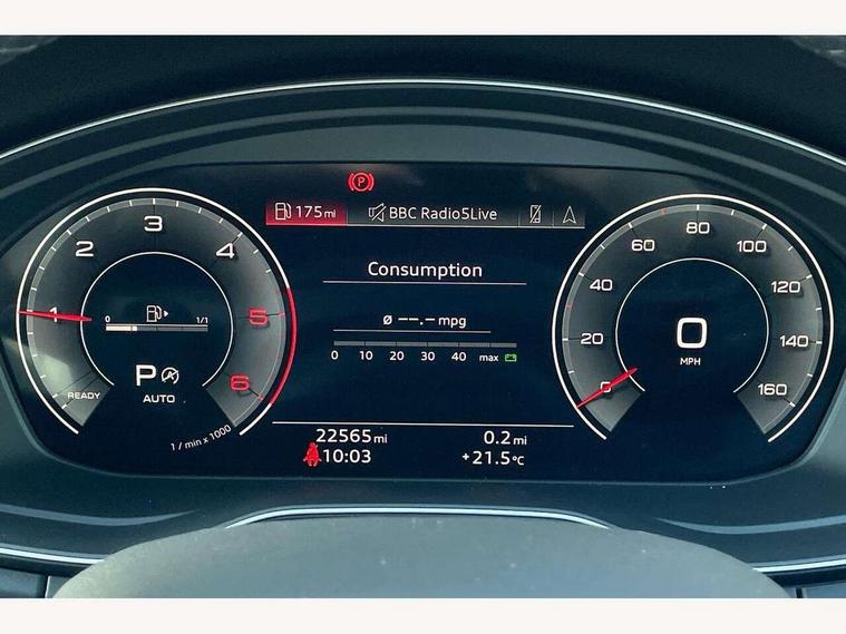 Audi connect safety and service (e-call), Audi connect with Amazon Alexa Integration, Audi drive select, Audi virtual cockpit plus with 12.3" screen and three different layout designs, Audi wireless smartphone interface, Automatic start-stop system with coasting functionality and efficiency programme, Bluetooth interface, Cruise control + speed limiter, Electro - mechanical power assisted steering, MMI navigation plus with 10.1" touch screen, Power tailgate, Reversing camera, Service interval indicator, Voice control system with Audi hotword activation "Hey Audi", Diesel particulate filter, Dynamic suspension, Quattro on demand, 2 x USB charging port with aux input socket, DAB Digital radio, Acoustic windscreen, Air inlets in matt titanium black with blades in matt aluminium silver, Aluminium roof rails, Auto dimming door mirrors, Auto dimming rear view mirror, Automatic headlight adjustment, Automatic headlights and windscreen wipers, Body colour bumpers, Body colour door mirrors, Chrome plated exhaust trims, Daytime running lights, Door sills in Selenite silver, Electric adjustable/heated/folding door mirrors, Front and rear electric windows, High level LED brake light, LED headlights and LED tail lights, Lower bumpers painted in contrast Manhattan grey, Matt selenite silver underbody protection, Matt twilight grey radiator grille with chrome vertical struts, Rear chrome trim strip below lights, Rear diffuser strip in selenite silver, Rear side wing doors, Rear spoiler, Rear wiper, Roof bars, 3 rear headrests, 3 spoke multifunction leather steering wheel with shift paddles, 40:20:40 split folding 3 rear bench seat in 2nd row with rear centre armrest, Comfort front centre armrest, Deluxe 3 zone electronic climate control, Door sills trims with aluminium inlays, Front/rear floor mats, Heated front seats, Height adjustable front head restraints, Height/reach adjustable steering column, ISOFIX child seat mounting and top tether, Luggage compartment cover, Manual seat adjustment with 4-way electric lumbar support, Removable luggage compartment floor, Silver cloth headlining, Single front passenger seat, Sunvisors with vanity mirrors, Twin leather upholstery + front sports seats, High gloss pack - Q5, LED interior light pack - Q5, 3 point seatbelts on all seats, 6 airbags - Driver, front passenger, curtain and side airbags, Electrically operated child locks on rear doors, Electromechanical parking brake, Electronic stabilisation control including ABS, ASR and EDL, Front passenger airbag deactivation, Hill descent control, Hill hold assist, Multi collision brake assist, Pop-up bonnet for pedestrian protection, Pre sense city, Seat belt force limiter, Seatbelt monitoring, Tyre pressure warning, Warning triangle and first aid kit, Anti theft alarm, Anti-theft wheel bolts, Keyless Go access/ignition system, Remote central locking, Aluminium rhombus inlay,