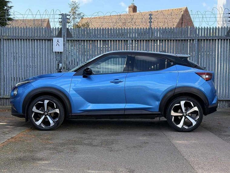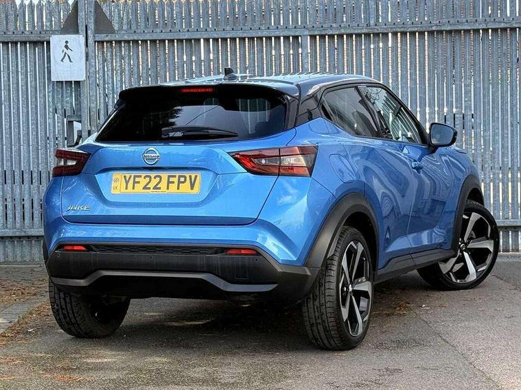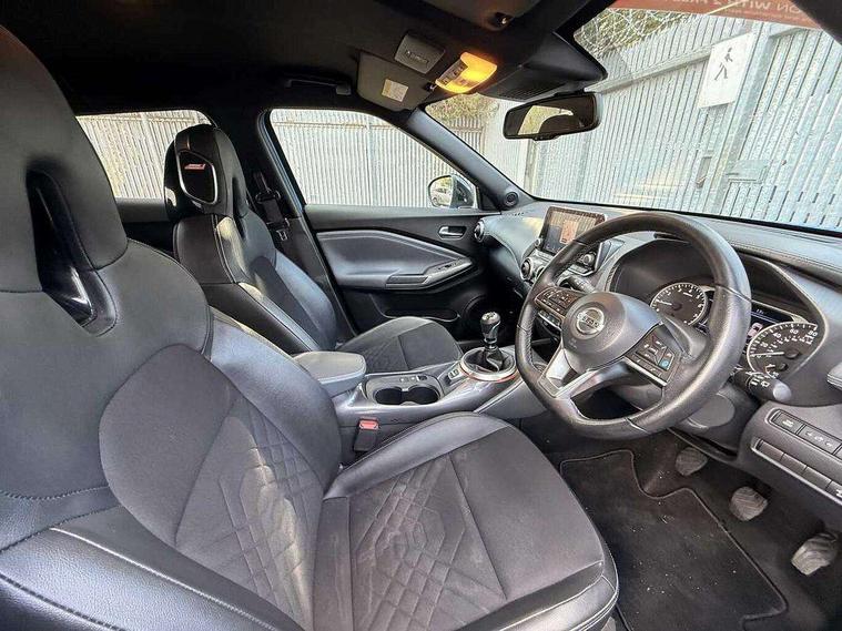 7" full colour TFT screen combimeter, Apple CarPlay and Google Android auto, Drive modes select (Eco, normal and sport), Emergency and breakdown call, Front parking sensor, Idle start/stop system, Intelligent lane intervention, Lane departure warning system, Nissan connect 8" touch screen entertainment system, Nissan connect nav with TomTom traffic, Nissan connect services and Wifi connection, Outside temperature sensor, Power Steering, Rear parking sensor, Traffic sign recognition, Trip computer, Voice recognition, Gasoline particulate filter, 10 Bose speakers 6 speakers and 2 headrest speakers for driver/passenger seats, Bluetooth system, USB, Aux-in and 12V socket, Bose personal sound stage control, DAB Digital radio, Rear console USB port, Auto dimming interior rear view mirror, Auto headlights, Automatic hazard signal with emergency stop signal, Body colour bumpers, Body colour door handles, Electrically adjustable door mirrors with integrated indicators, Follow me home headlights, Front and rear electric window with one touch driver window, Heated and auto folding door mirrors, High beam assist, LED daytime running lights, LED front fog lights, LED headlamps, LED rear fog lamp, LED rear lamps, Rain sensor windscreen wipers, Rear privacy glass, Rear side wing doors, Rear wiper, Thermaclear heated windscreen, Three blink turn signal, 3 height adjustable rear headrests, 3 seat bench in 2nd row, 60/40 split folding rear seat, Automatic climate control, Card holder on driver sunvisor, Door ambient lighting, Driver and passenger sliding and reclining seats, Driver seat back pocket, Driver side rear coat hanger, Driver/passenger sunvisors and vanity mirrors, Front and rear cabin lights, Front armrest, Front door pockets with bottle holders, Front head restraints, Front passenger isofix child seat anchorage point, Front/rear passenger grab handles, Gear console ambient circle lighting, Grey synthetic leather kneepad, Heated front seats, Height adjustable driver's seat, Height adjustable passenger seat, Internal chrome door handles, Leather gearshift knob, Leather steering wheel, Luggage board, Luggage space lighting, Monoform sporty seats, Multifunction steering wheel, Passenger seat back pocket, Rear door bottle holders, Single front passenger seat, Synthetic leather upholstery, Telescopic steering wheel adjustment, Two cupholders in front centre console, Two rear isofix child seat anchorage points with top tether, Welcome light and console tray ambient lighting, Advanced safety shield pack - Juke, ABS with EBD and brake assist, Active ride control, Active Trace Control, Driver and passenger airbags, Driver and passenger side airbags, Electric handbrake with auto hold function, Electronic Stability Programme (ESP), Front and rear curtain airbags, Height adjustable seatbelts, Hill start assist, Intelligent emergency braking with pedestrian and cyclist recognition, Rear door child safety locks, Seatbelt reminder for driver/front passenger and rear seats, Single tone horn, Three 3 point rear seatbelts, Traction control, Tyre pressure monitoring system, VDC Dynamic Vehicle Control, Ventilated rear brake discs, Alarm, Immobiliser, Intelligent key and start push button with walk away lock and approach unlock functions, Remote central locking,