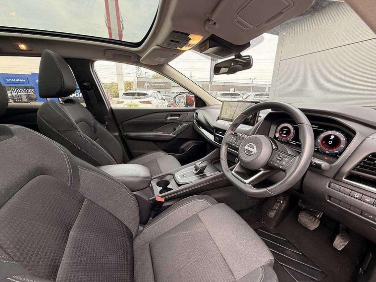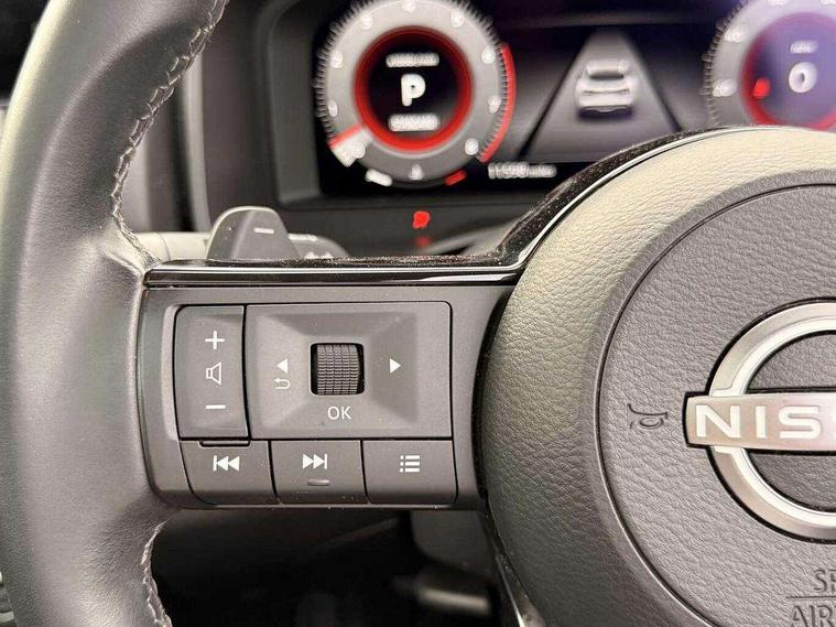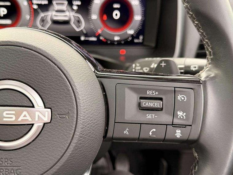 Android auto/Apple CarPlay (Wired), Blind spot warning, Drive modes (sport, normal, eco), Electric speed sensitive power steering, Emergency and breakdown call, Full Digital 12.3" TFT Digital Combimeter, Google maps services - search, weather, 3D maps and Google street view, Idle stop/start system, Intelligent around view monitor, Intelligent Cruise control (ICC), Intelligent driver alert system, Intelligent forward collision warning, Intelligent lane intervention, Lane departure prevention, Lane departure warning system, Maximum speed limiter, Moving object detection, Nissan connect 12.3 inch touchscreen infotainment system, Nissan connect navigation, Push button starter, Rear cross traffic alert, Rear parking sensors, Rear view camera, Remote control services - door locks, lights, horn and car locator, Telematics - notifications and connectivity services, TomTom live traffic services, Traffic sign recognition with legal speed adjustment, Trip computer, Virtual personal assistant and firmware over the air capability, Wireless apple carplay, 6 speakers, AM/FM audio system with DAB, Bluetooth audio streaming, Front USB connections (Type-A and Type-C), Rear USB charging only ports (Type-A and Type-C), Auto dimming rear view mirror, Auto rear wiper when reversing, Automatic hazard signal with emergency stop signal, Body colour mirror caps, Body coloured door handles, Bodyside mouldings, Chrome side window finisher, Door handle with button, Electric auto folding door mirrors, Electrically adjustable and heated door mirrors with LED turn indicator, Follow me home headlights, High beam assist, Intelligent auto headlights, LED daytime running lights, LED Headlights, LED rear lights, One touch front and rear electric windows with remote opening and closing, Partially body coloured bumpers, Privacy glass, Rear bumper with graphite insert, Rear reversing light (bulb lighting), Rear roof spoiler, Rear side wing doors, Rear styling plate, Shark fin antenna, Splash free rain sensing wipers, Super UV and infrared cut glass, Three blink turn signal, 12v power socket in dashboard and luggage, 2x Rear coat hooks, 3 bench rear seats in 2nd row, 3 rear headrests, 4 folding assist grip, 6 Luggage hooks - 4 on floor, 2 on side, 6-way manually adjustable driver's seat, 60/40 split folding rear seat bench, Ambient lighting around centre console, Centre console storage tray, Chrome interior door handles, Cloth monoform upholstery, Driver and front passenger sunvisors with illuminated vanity mirrors, Driver seat back pocket, Dual zone automatic climate control with pollen filter, Electrically adjustable lumbar support for driver, Front and rear door storage, Front centre console and armrest, Front cupholders x 2, Front door with bottle holders, Glovebox with light, Hard trunk cover, Height adjustable driver's seat, Height adjustable front headrests, Height adjustable passenger seat, Leather steering wheel, Luggage board system, Luggage space lighting, Manually adjustable passenger (slide recline + lifter), Multifunction steering wheel, Passenger seat back pocket, Rear armrest with 2 cupholders, Rear door bottle holders, Single front passenger seat, Soft PVC kneepad, Steering wheel gearshift paddles, Steering wheel switches, Sunglasses holder, Tilt/telescopic adjustable steering wheel, Two rear isofix child seat anchorage points with top tether, Welcome light and console tray ambient lighting, 3x3 point rear seatbelt pretensioners + load limiters, ABS with EBD and brake assist, Active brake limited slip, Auto hold function, Child locks on rear doors, Curtain and front side, far side airbags, Driver and passenger airbags, Driver, passenger and 2nd row rear seat belt reminder, Electronic parking brake, Front seatbelt pretensioners + load limiters, Height adjustable front seatbelts, Hill start assist, Intelligent blind spot intervention, Intelligent front emergency braking with pedestrian, cyclist recognition and junction assist, Intelligent rear automatic braking, Tyre pressure monitoring system, Vehicle dynamic control, Capless fuel filler, Engine immobiliser, Intelligent Key, Remote central door locking with deadlocking, Thatcham Cat.1 alarm, Interior instrumental panel B finisher, 18" Diamond cut alloy wheels, Tyre puncture repair kit,