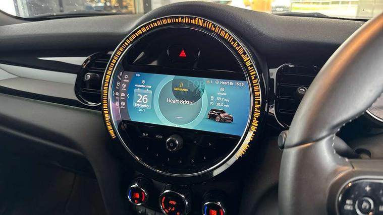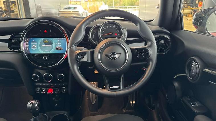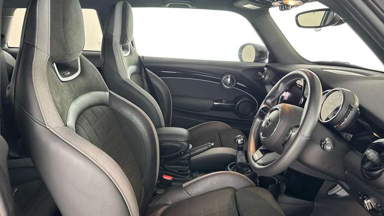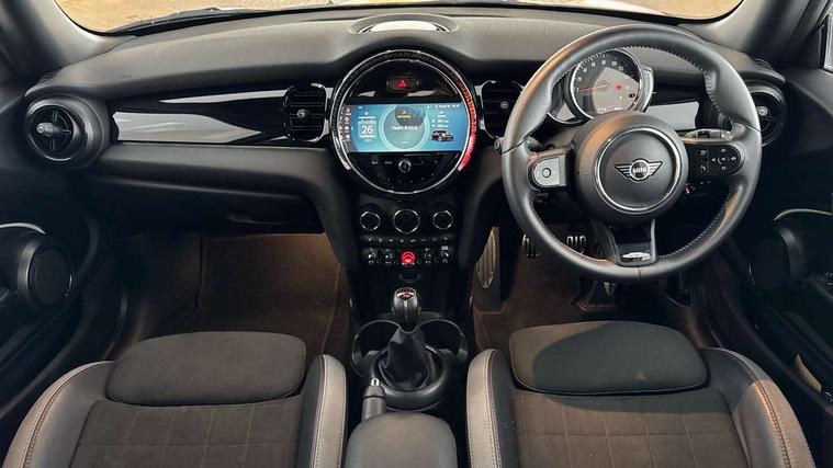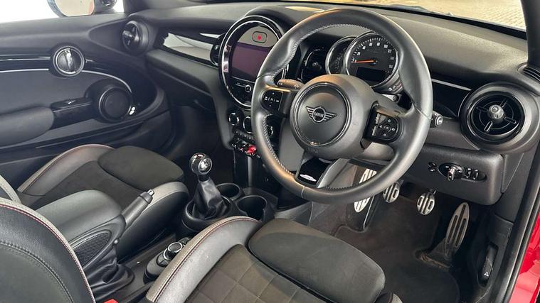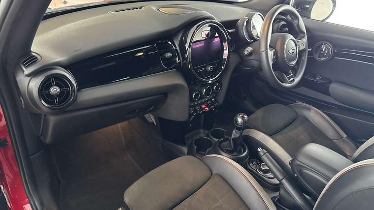 Apple CarPlay, Automatic start/stop function with brake energy recuperation, Compatible mobile phone bluetooth with audio streaming, Cruise control with brake assist, Electro-mechanical speed dependant steering assistance, Flexible car sharing preparation, Instrument cluster, MINI Driving Modes - centre toggle switch to control driving setting (sport, mid and green), Mini E-call, MINI TeleServices, On board computer, Rear park distance control, Service interval indicator, 6 Speed manual transmission including gear change indicator display, Double Vanos system, Fully variable valve control, High precision injection, Intelligent adaptive suspension, Performance Control, 8.8" touchscreen with LED ring, FM tuner and DAB digital radio, 3rd brake light, Automatic headlight activation switch, Bonnet scoop, Dynamic brake lights, Electric front windows, Heated rear window, Heated windscreen washer jets, JCW Aerodynamic kit - Front and rear bumpers with sporty JCW styling and part-painted side sills with MINI John Cooper Works door sill finishers, John Cooper Works rear spoiler, LED headlight with closed ring and daytime driving lights, Metal door sill strips with Cooper S, Model logo Cooper S on right of tailgate, Radiator grille chrome border with honeycomb structure including S Badge, Rain sensor window wipers, Rear fog lights, Rear LED lights with union jack design, Rear window wiper, Side scuttle panel with integrated indicator, Sun/heat protection glass, Two central exhaust tailpipes with chrome finisher, White indicator lenses, 12V Accessory socket in centre console, 2 seat bench in 2nd row, 4 lashing eyes in luggage compartment, 60/40 split folding rear seat, Anthracite headliner including grab handles and clothes hooks, Carbon black colour line - Knee roll and door armrest, Chrome interior highlights, Cupholders, Front and rear isofix with front passenger airbag deactivation, Front floor mats in velour, Glove compartment, Height and length steering column adjustment, Interior lighting with 12 different colours across the dashboard, underneath door bezel with illuminated laser-engraved design on central display, JCW Sport seats with integrated headrests, adjustable thigh support and John Cooper Works logo, Leatherette gearshift lever and handbrake gaiters, LED reading lights, vanity mirror lights, front foot well light and spotlight on front seats, Manual air conditioning, Mechanical seat adjustment - forward/back & backrest for front seats and driver seat height adjust, Multifunction steering wheel, Passenger seat height adjuster, Single front passenger seat, Storage compartments in doors, Storage pocket on back of front seats, Sunvisors with vanity mirrors, Walknappa leather steering wheel with grey seam and John Cooper Works badge on Piano Black lower steering wheel spoke, Piano black exterior pack - Mini Hatchback Cooper S, 3 point seatbelts on all four seats, 6 Airbags - front, side, head and seat belt tensioners, Anti-lock braking system (ABS), DSC - Dynamic Stability Control, Front and rear disc brakes, Two tone horn, Tyre pressure monitoring system, Alarm system with tilt sensor, monitoring doors, bonnet interior and tailgate, Electronic vehicle immobiliser, Start/stop toggle with keyless go, Piano black interior trim, Tool kit,