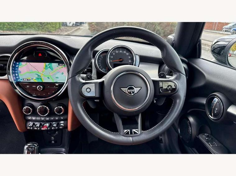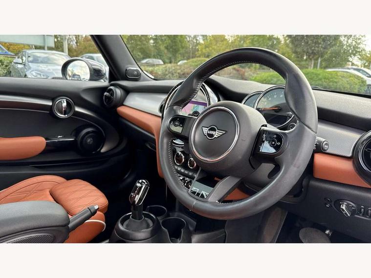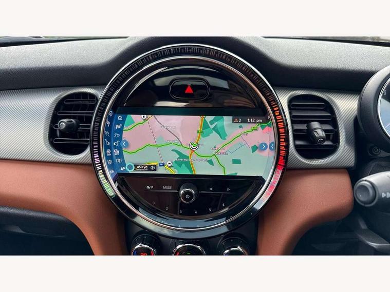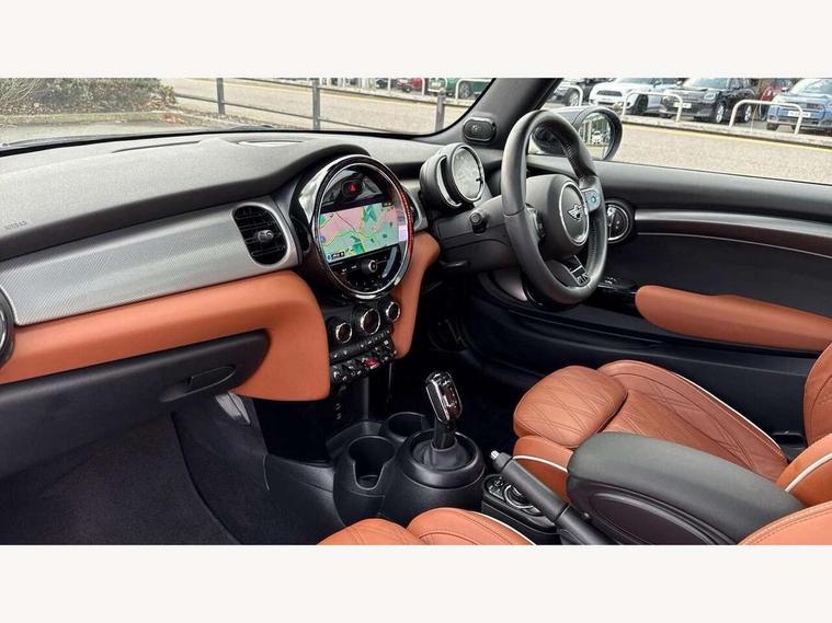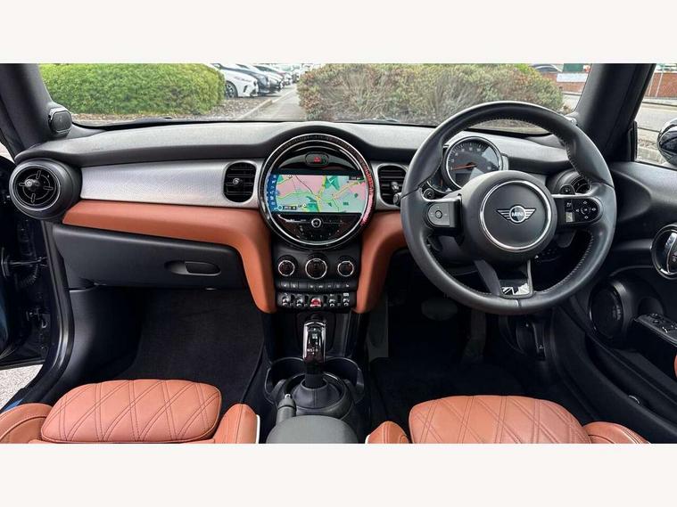Apple CarPlay, Automatic start/stop function with brake energy recuperation, Compatible mobile phone bluetooth with audio streaming, Cruise control with brake assist, Electro-mechanical speed dependant steering assistance, Flexible car sharing preparation, Instrument cluster, MINI Driving Modes - centre toggle switch to control driving setting (sport, mid and green), Mini E-call, MINI TeleServices, On board computer, Rear park distance control, Service interval indicator, Double Vanos system, Fully variable valve control, High precision injection, Performance Control, Steptronic sport transmission with double clutch and steering wheel paddles, 8.8" touchscreen with LED ring, FM tuner and DAB digital radio, 3rd brake light, Automatic headlight activation switch, Bonnet scoop, Chrome line exterior - radiator grille bars, tailgate handle, lower front grille grating and rear central fog-light, Dynamic brake lights, Electric front windows, Heated rear window, Heated windscreen washer jets, LED headlight with closed ring and daytime driving lights, Metal door sill strips with Cooper S, Model logo Cooper S on right of tailgate, Rain sensor window wipers, Rear fog lights, Rear LED lights with union jack design, Rear window wiper, Side scuttle panel with integrated indicator, Sun/heat protection glass, White indicator lenses, 12V Accessory socket in centre console, 2 seat bench in 2nd row, 4 lashing eyes in luggage compartment, 60/40 split folding rear seat, Carbon black colour line - Knee roll and door armrest, Chrome interior highlights, Chrome line interior - air vents, gear lever base, door handles and speakers in doors, Cupholders, Front and rear head restraints, Front and rear isofix with front passenger airbag deactivation, Front floor mats in velour, Glove compartment, Height and length steering column adjustment, Interior lighting with 12 different colours across the dashboard, underneath door bezel with illuminated laser-engraved design on central display, Leatherette gearshift lever and handbrake gaiters, LED reading lights, vanity mirror lights, front foot well light and spotlight on front seats, Manual air conditioning, Mechanical seat adjustment - forward/back & backrest for front seats and driver seat height adjust, MINI yours badge on exterior pillar, Multifunction steering wheel, Passenger seat height adjuster, Satellite grey headlining including grab handles and clothes hooks, Single front passenger seat, Storage compartments in doors, Storage pocket on back of front seats, Sunvisors with vanity mirrors, Walknappa leather steering wheel with grey seam and MINI Yours badge on Piano Black lower steering wheel spoke, 3 point seatbelts on all four seats, 6 Airbags - front, side, head and seat belt tensioners, Anti-lock braking system (ABS), DSC - Dynamic Stability Control, Front and rear disc brakes, Two tone horn, Tyre pressure monitoring system, Alarm system with tilt sensor, monitoring doors, bonnet interior and tailgate, Electronic vehicle immobiliser, Start/stop toggle with keyless go, Tool kit,